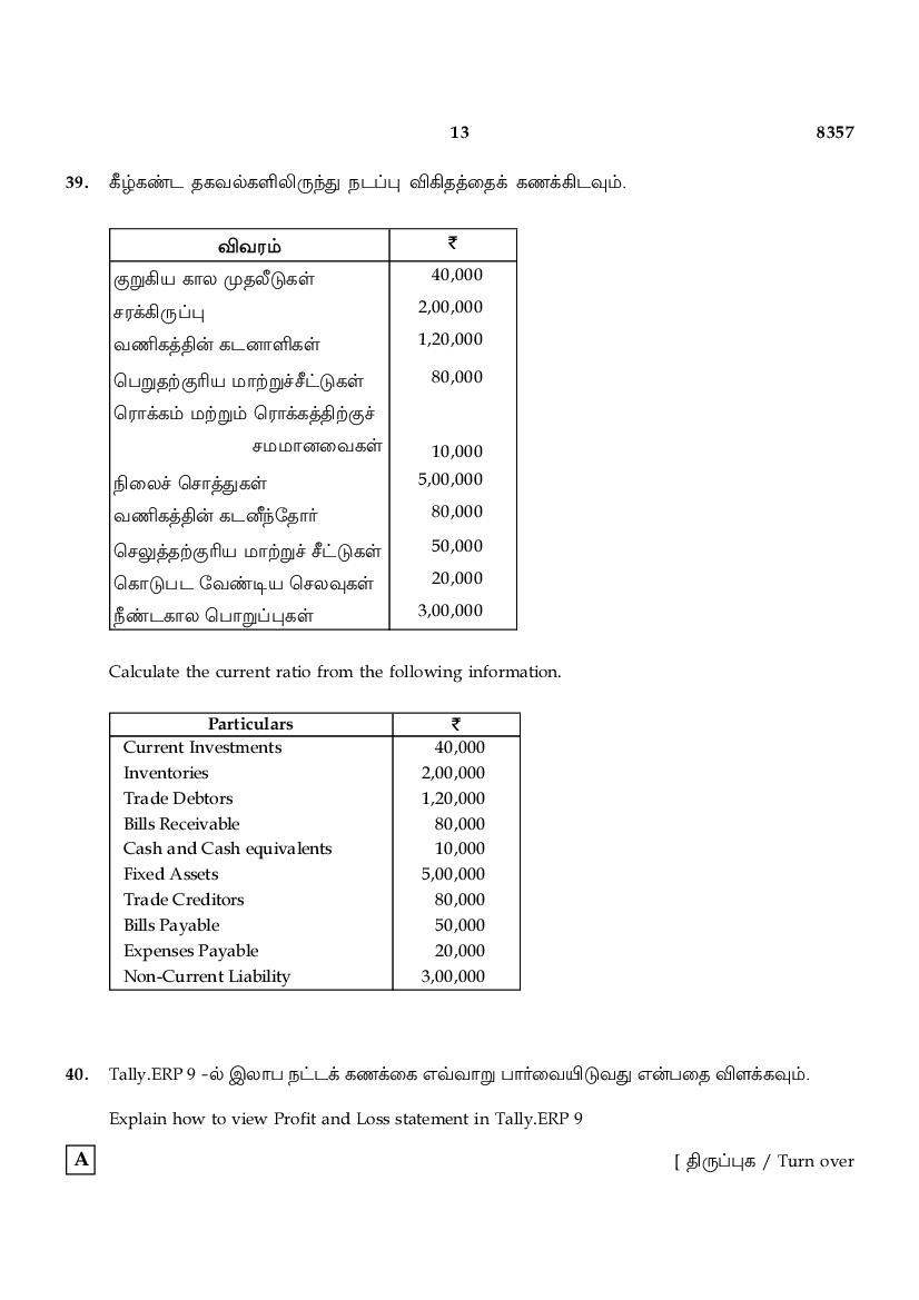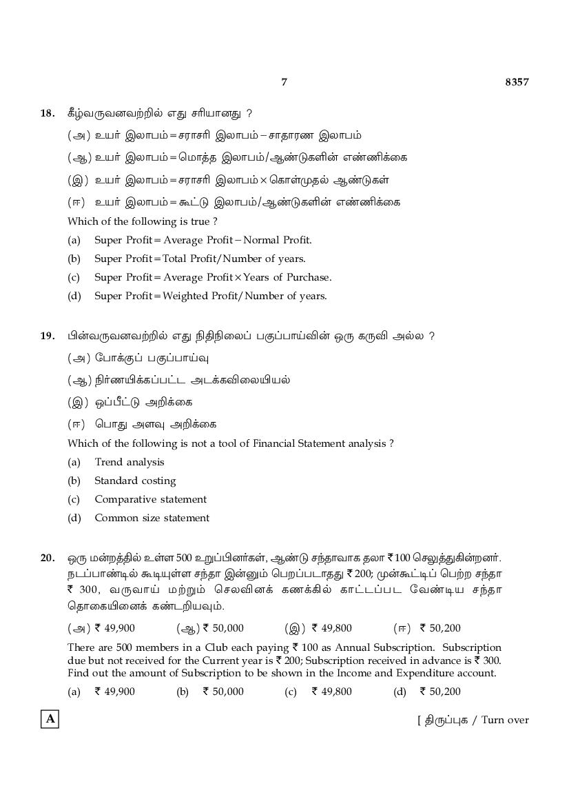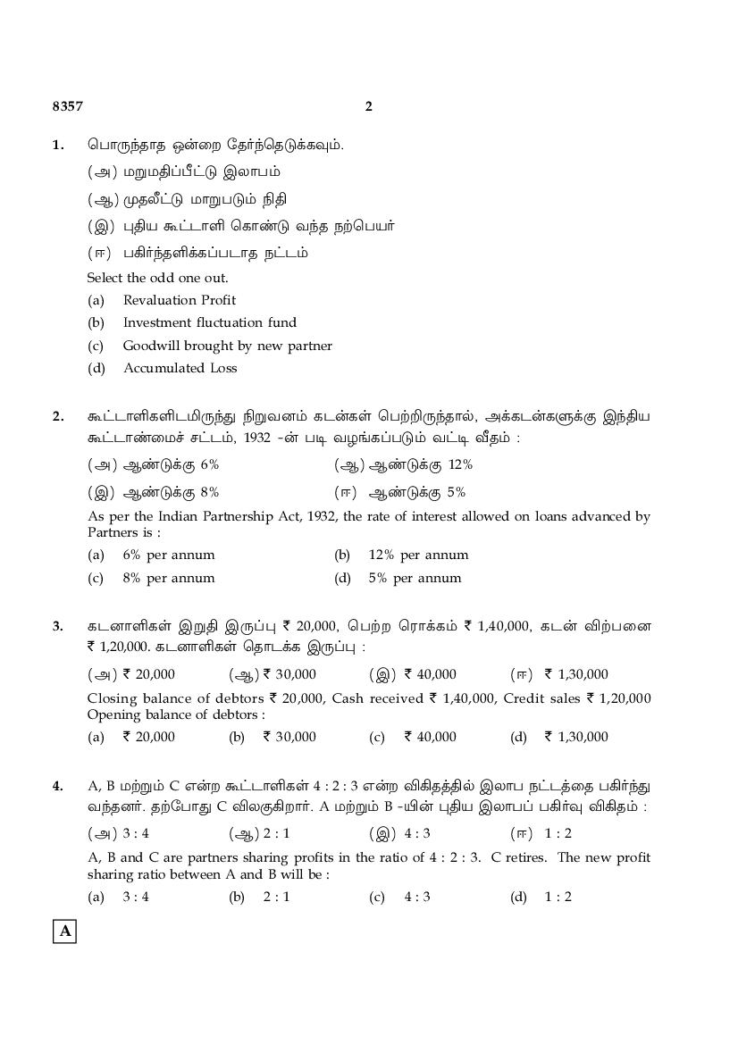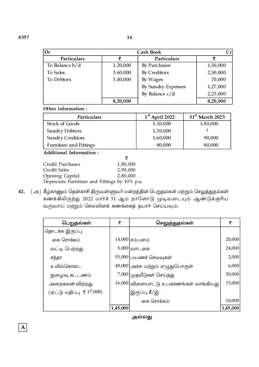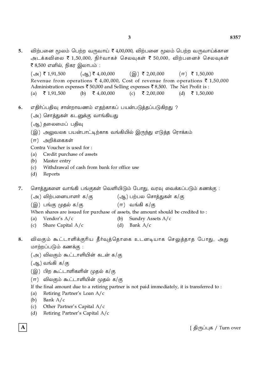 | Educational Resource Here | Tamil Nadu Board Previous Year Question Paper of Class 12 Accountancy |