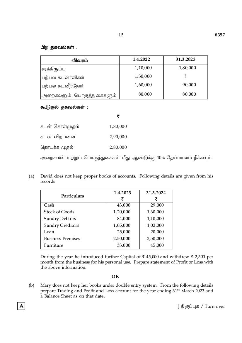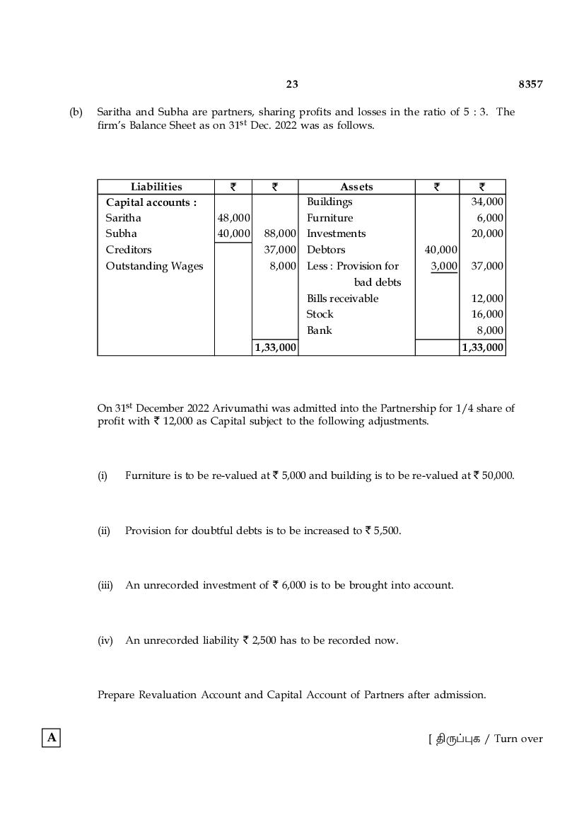 TN 12th Public Exam Accountancy Question Paper 2023 PDF Download Link – Click Here to Download 2023 Question Paper