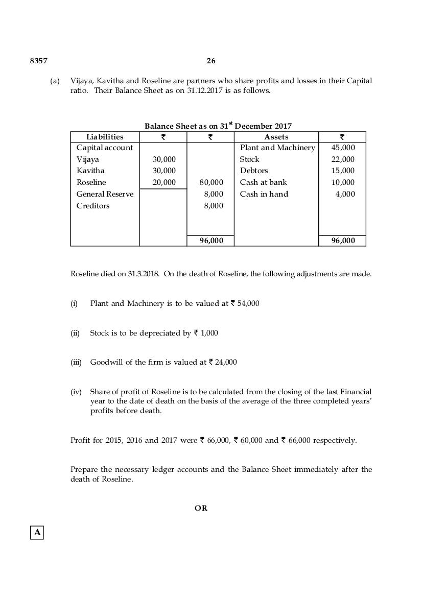While you can easily download the TN 12th Accountancy previous year question paper from link above. Similarly you can study the complete Accountancy question paper here also. The entire HSE (+2) question paper is as follows.