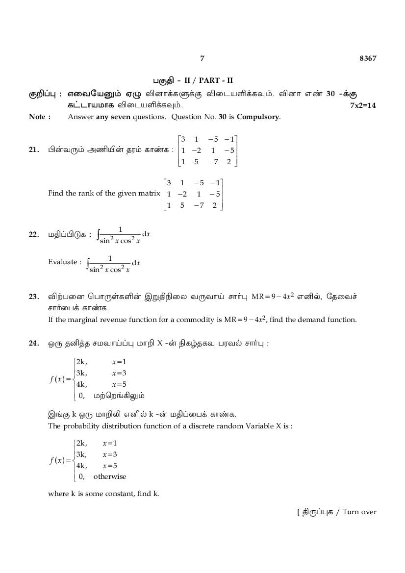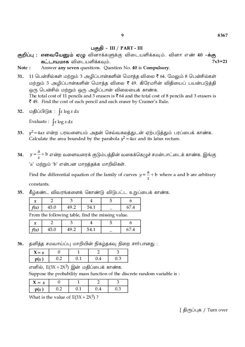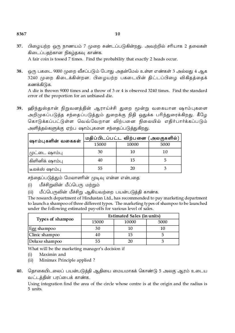 While you can easily download the TN 12th Business Mathematics & Statistics previous year question paper from link above. Similarly you can study the complete Business Mathematics & Statistics question paper here also. The entire HSE (+2) question paper is as follows.