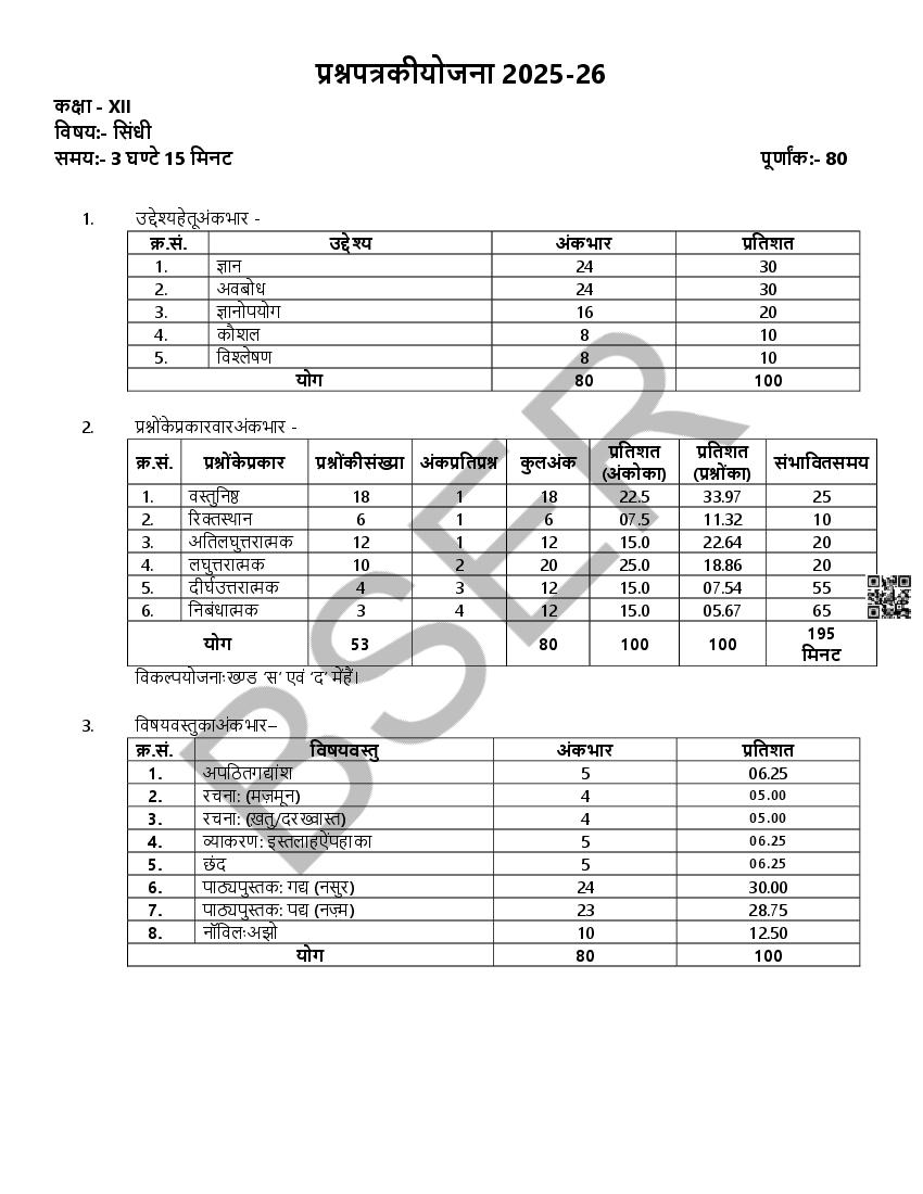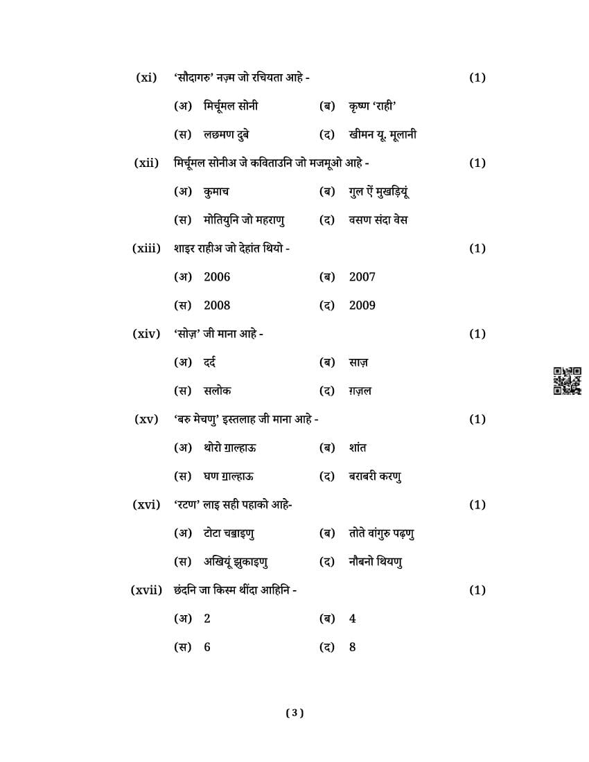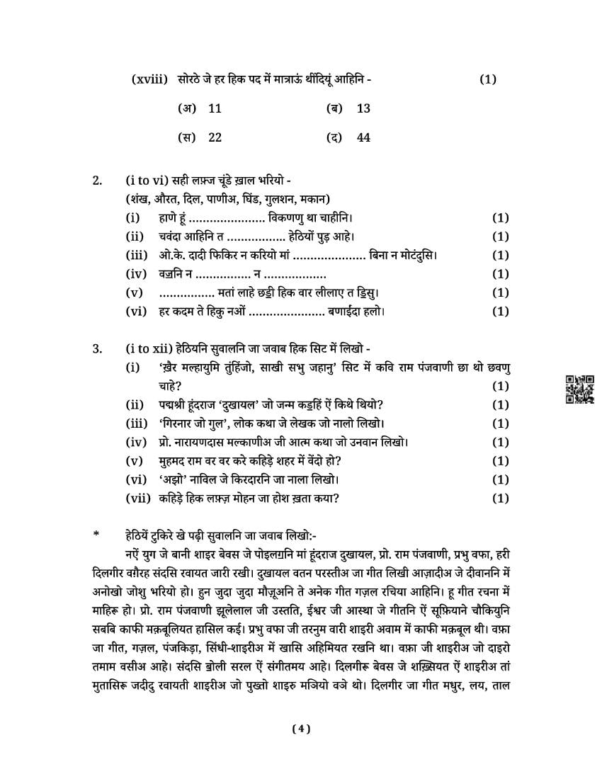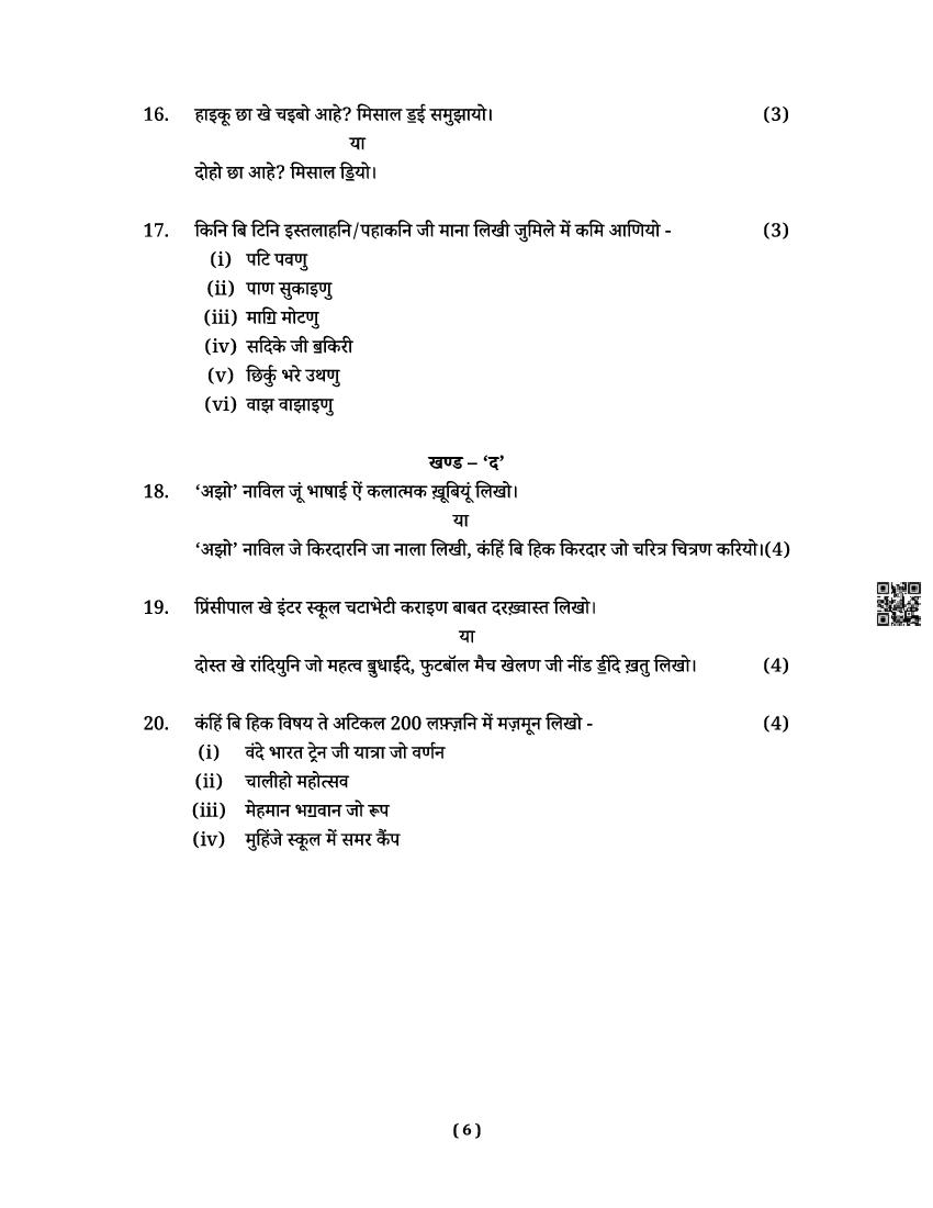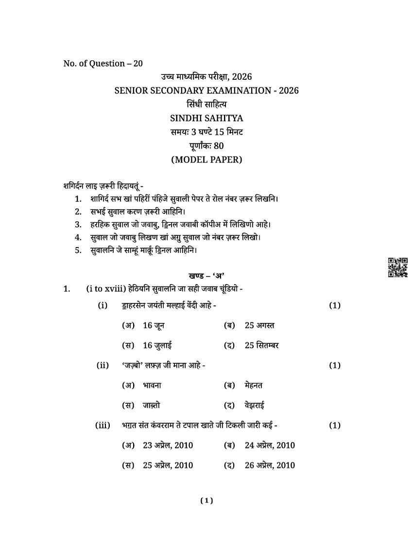 The Rajasthan Board model paper for class 12 Sindhi is as follows.