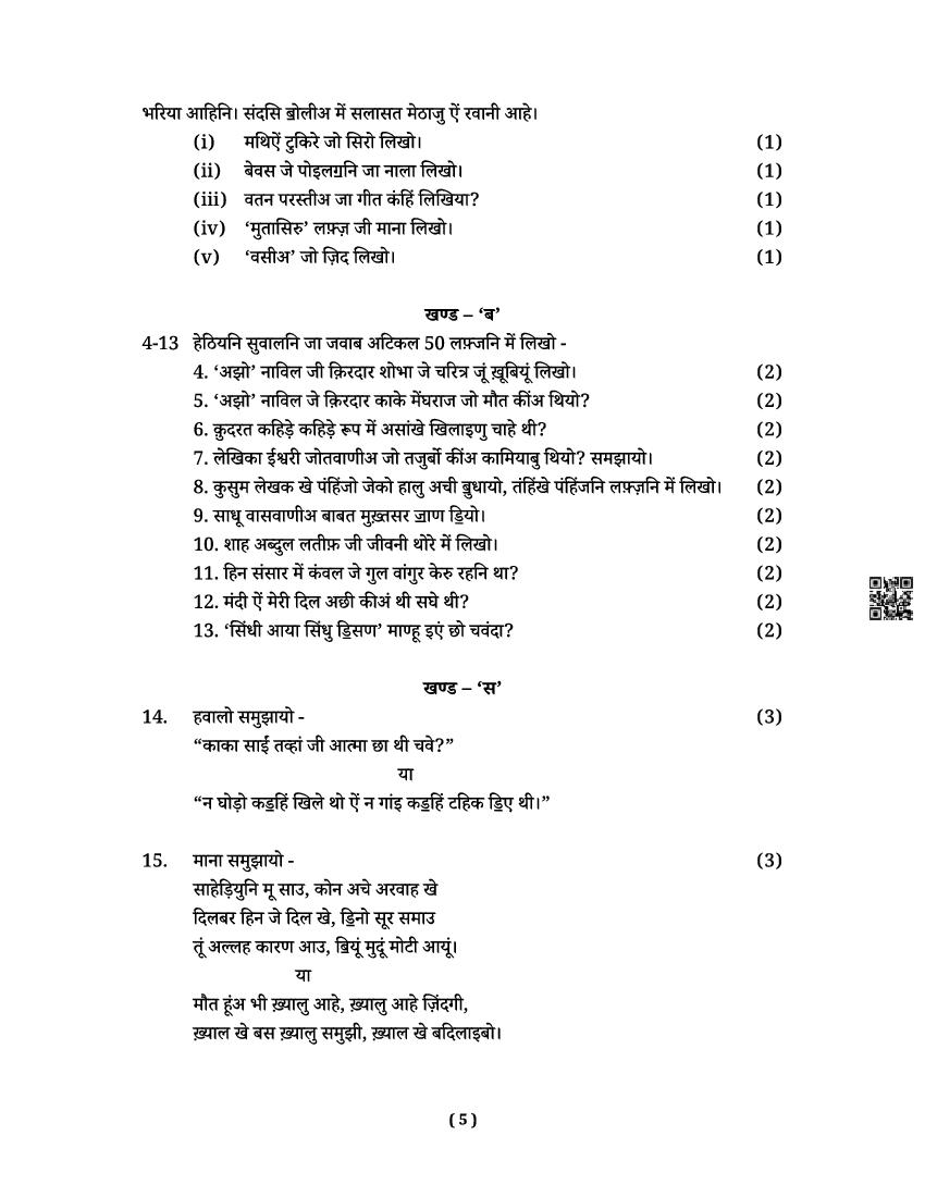 RBSE Class 12 Sindhi Model Paper 20245 PDF