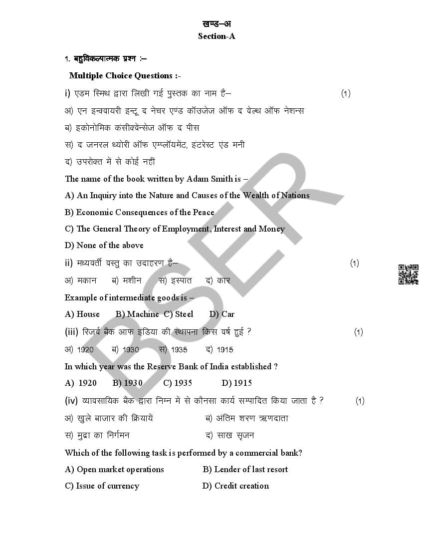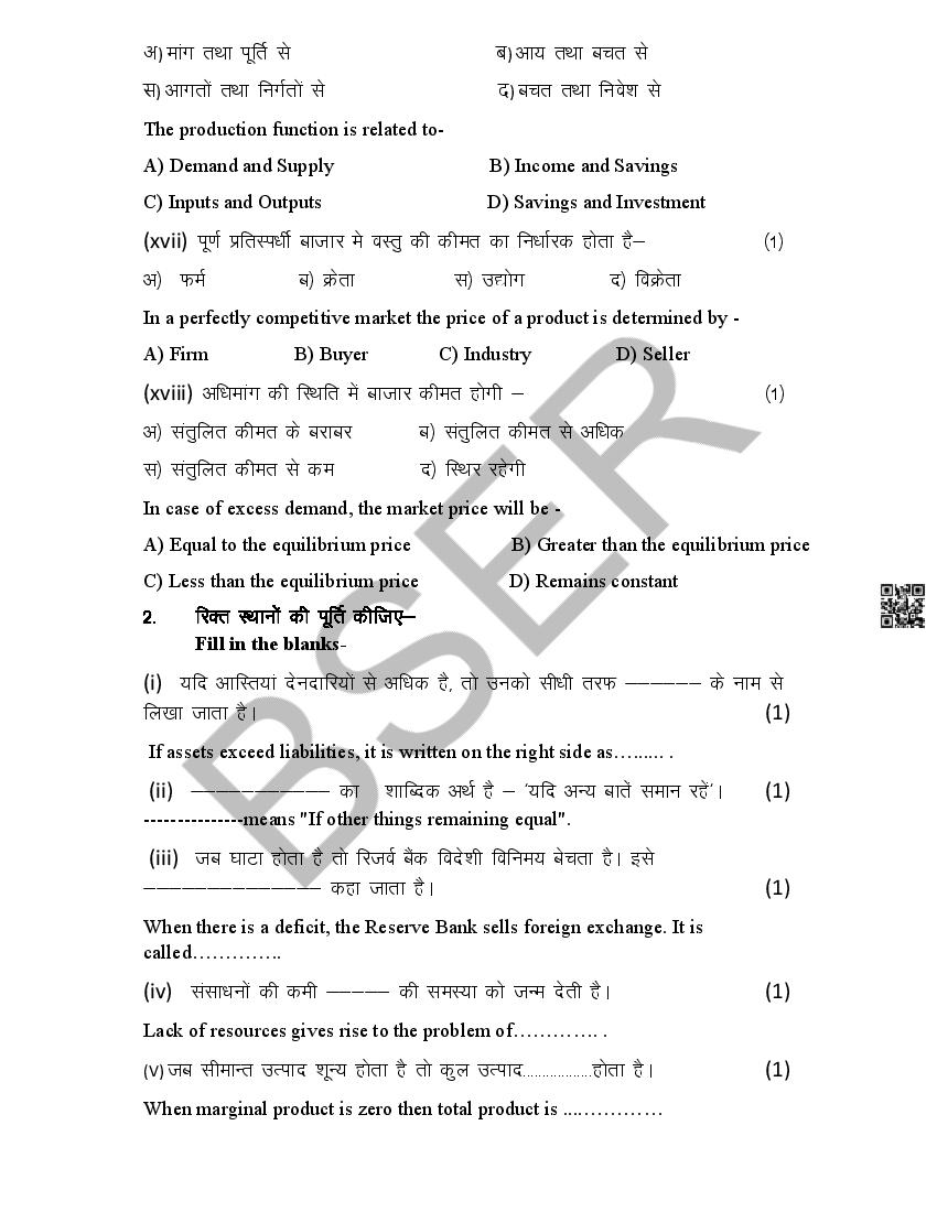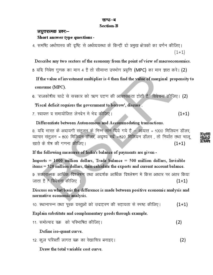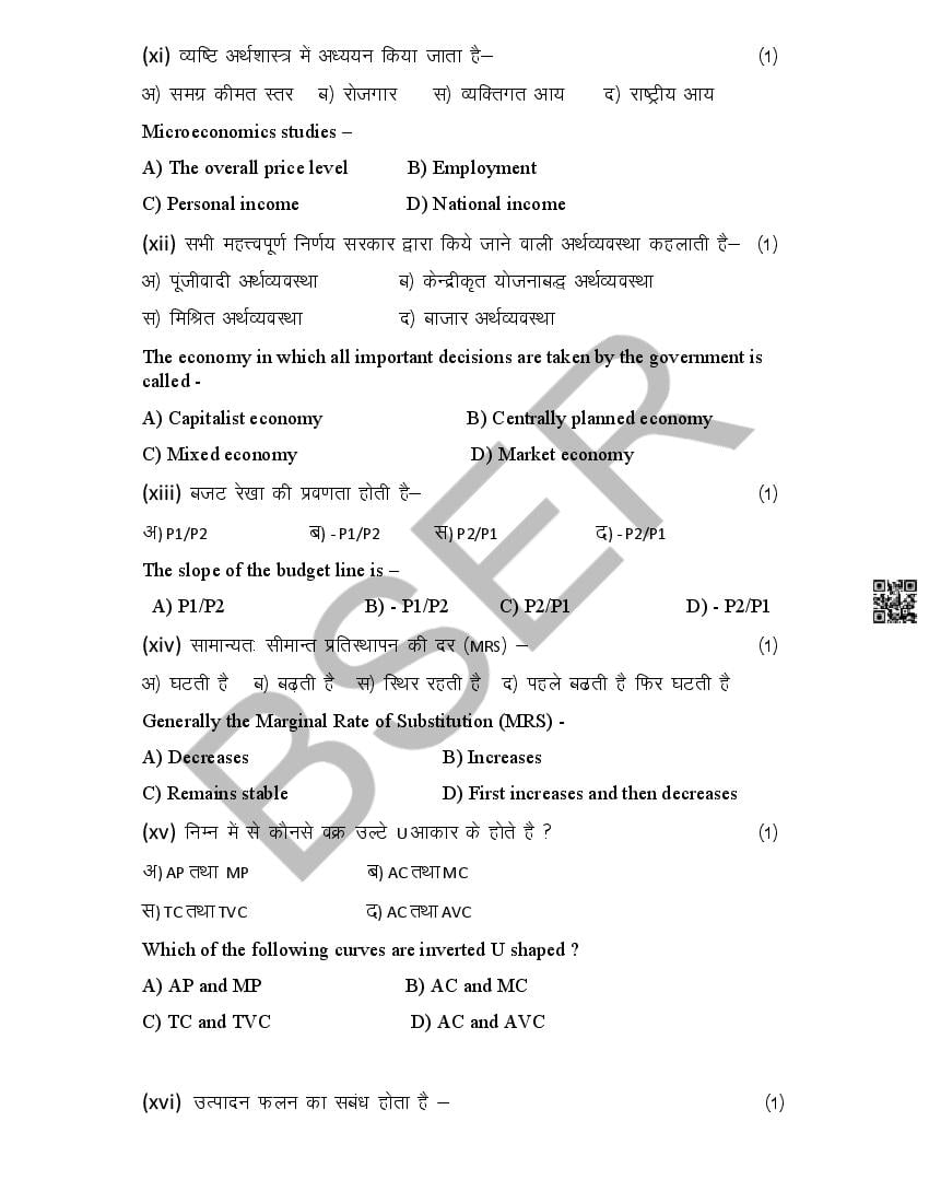 The Rajasthan Board model paper for class 12 Economics is as follows.