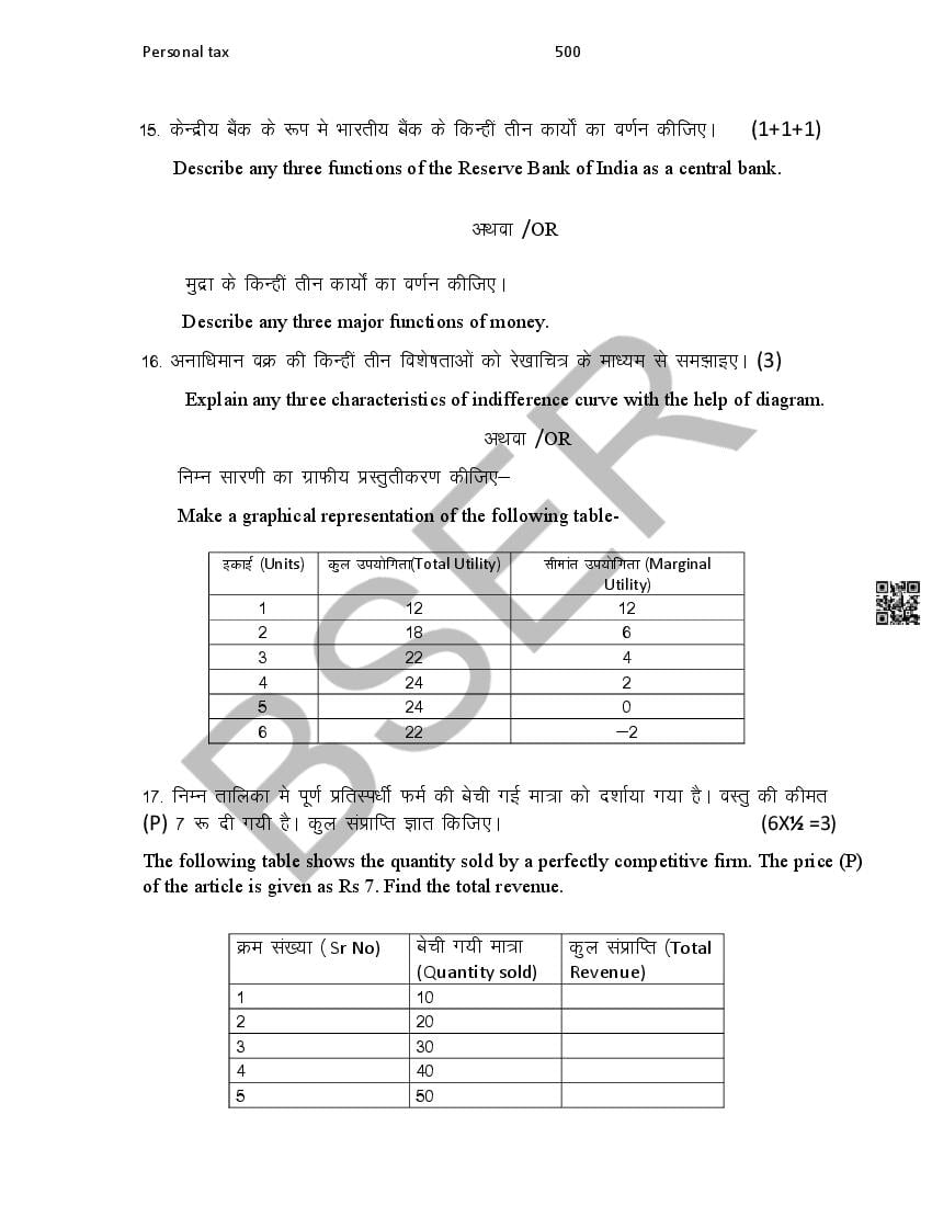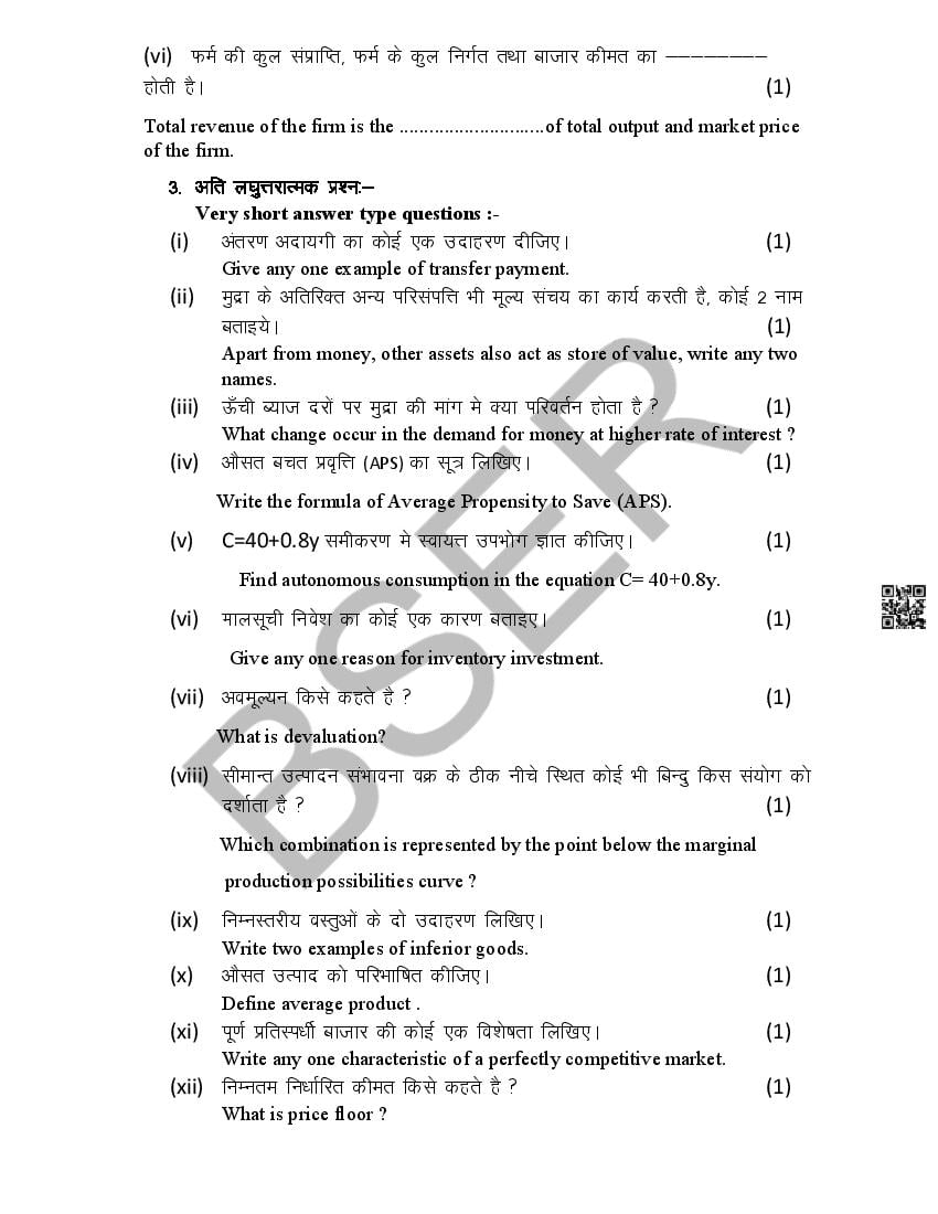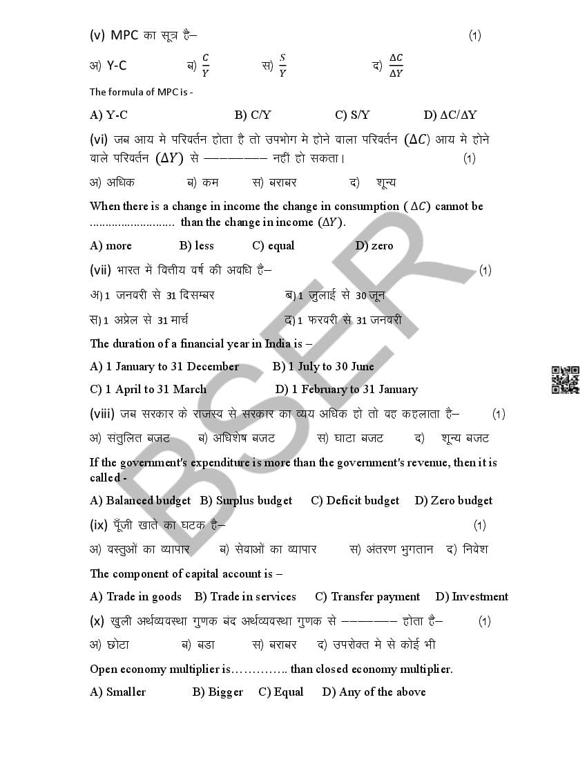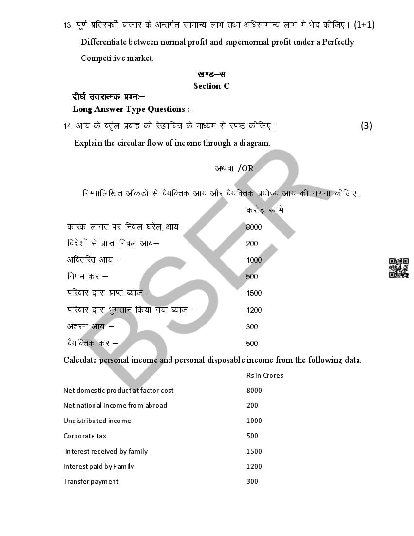 The Rajasthan Board model paper for class 12 Economics is as follows.
