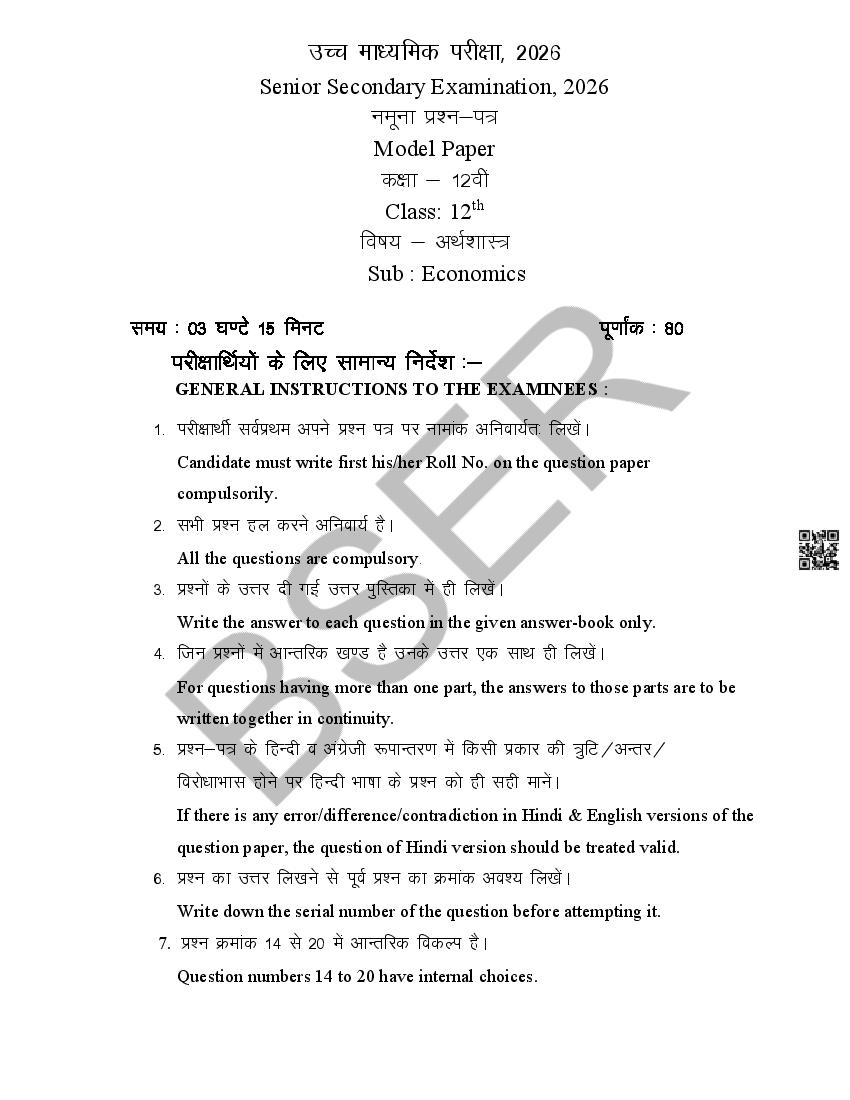If you have any queries on RBSE Class 12 Economics Model Paper 2026, then please ask in comments below.