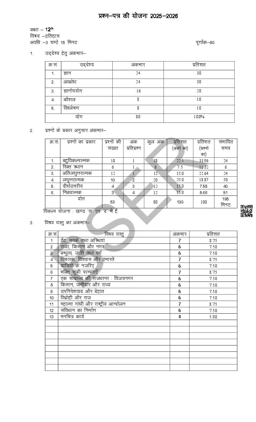 Rajasthan Board 12th History Model Paper 2026 – An Overview
