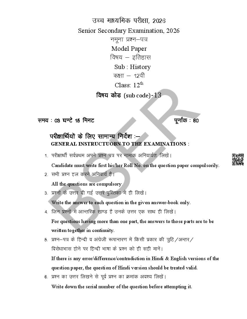 RBSE Class 12 History Model Paper 2026 Download Link – Click Here to Download PDF