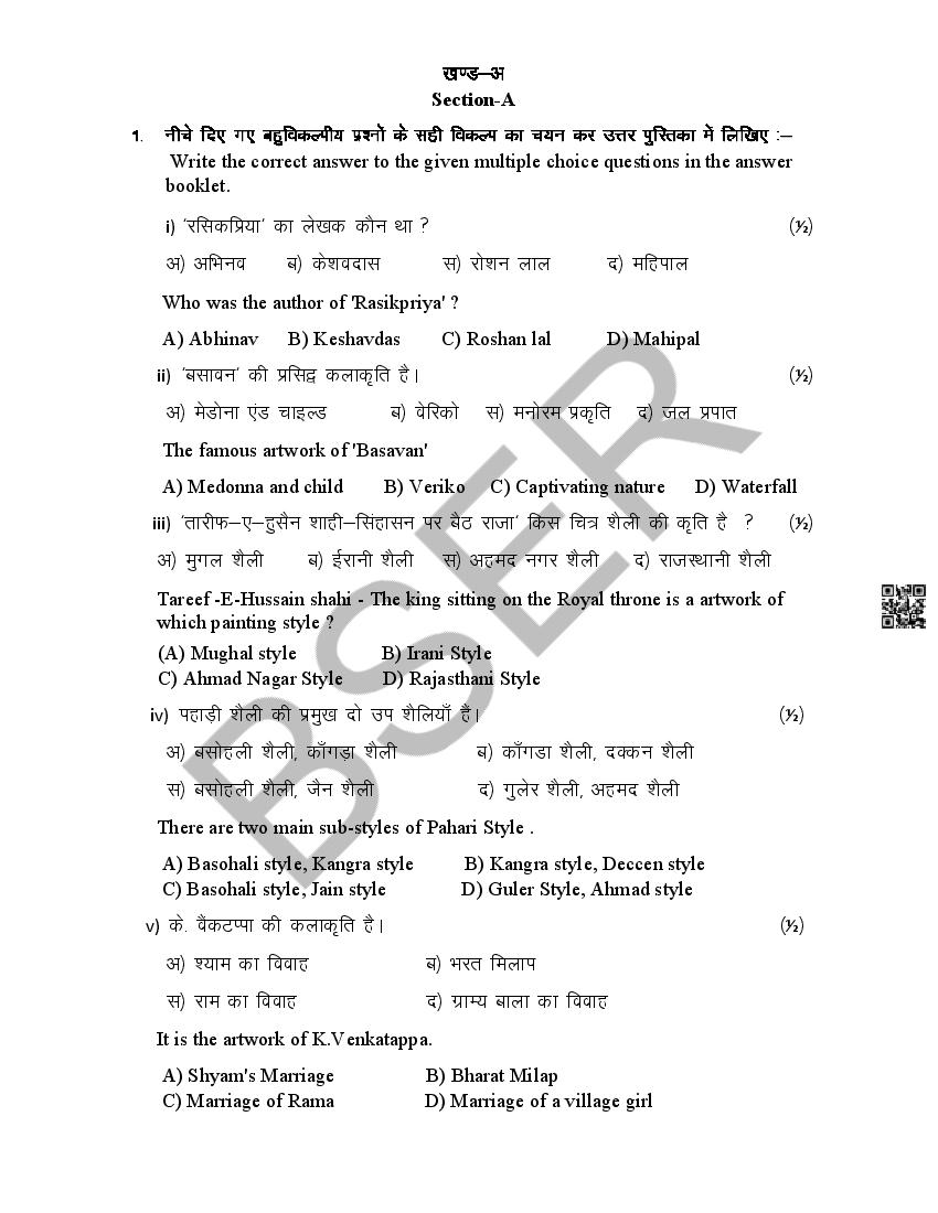 The Rajasthan Board model paper for class 12 Drawing is as follows.