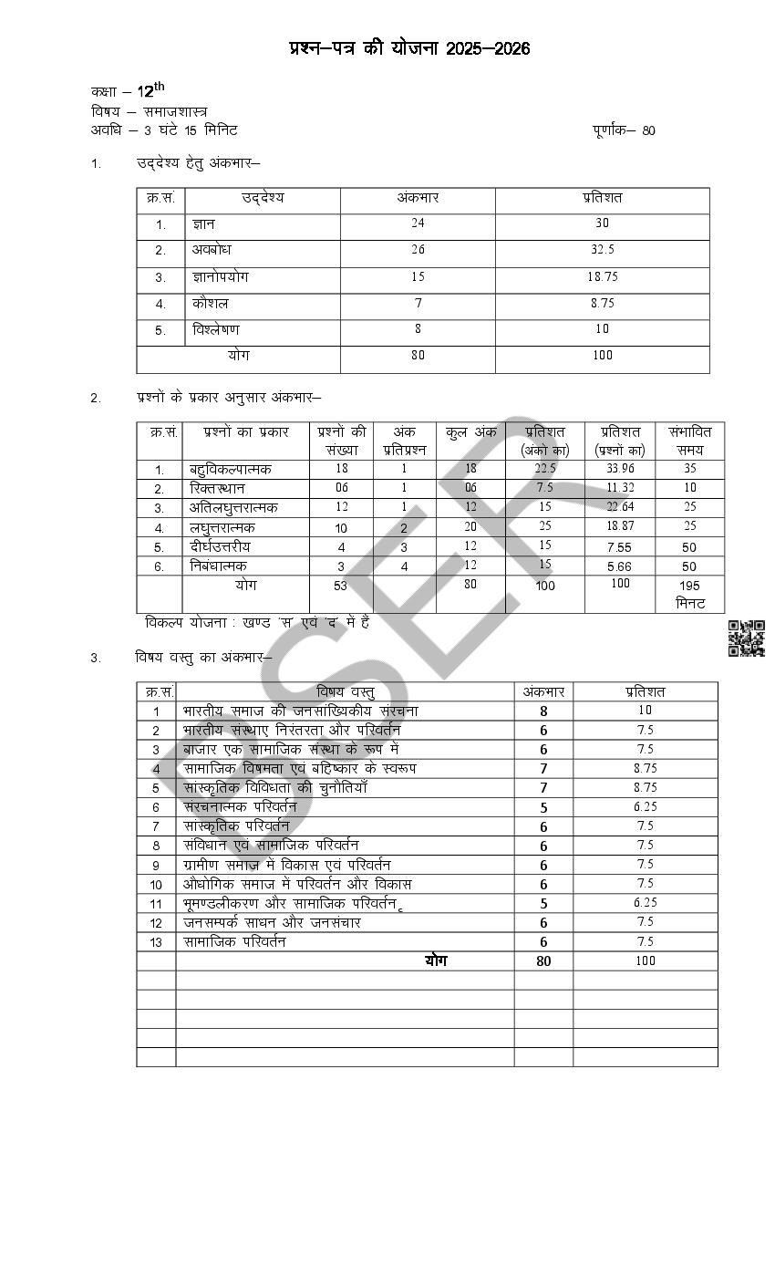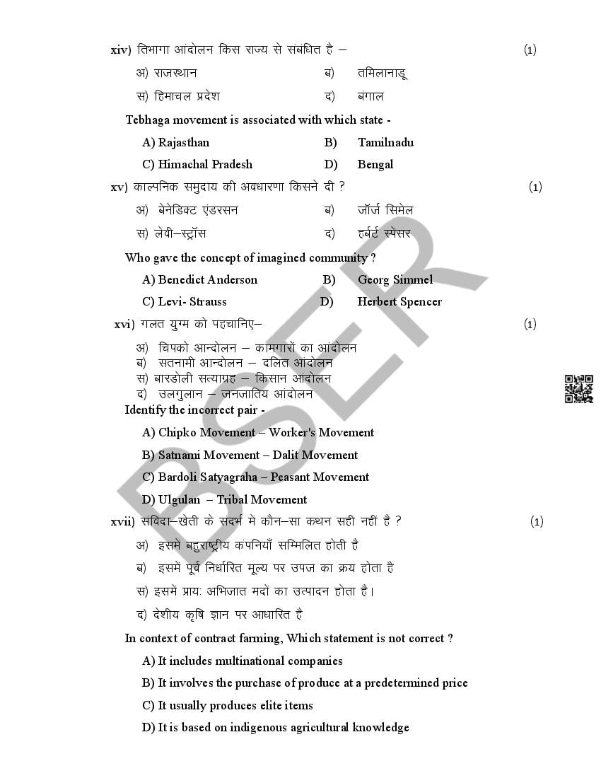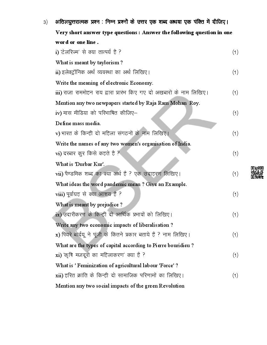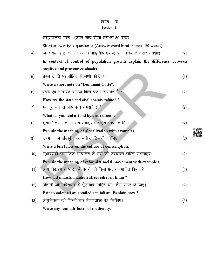 The Rajasthan Board model paper for class 12 Sociology is as follows.