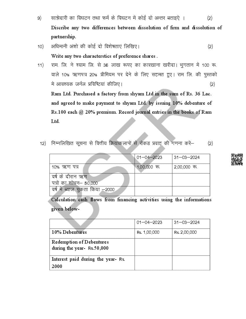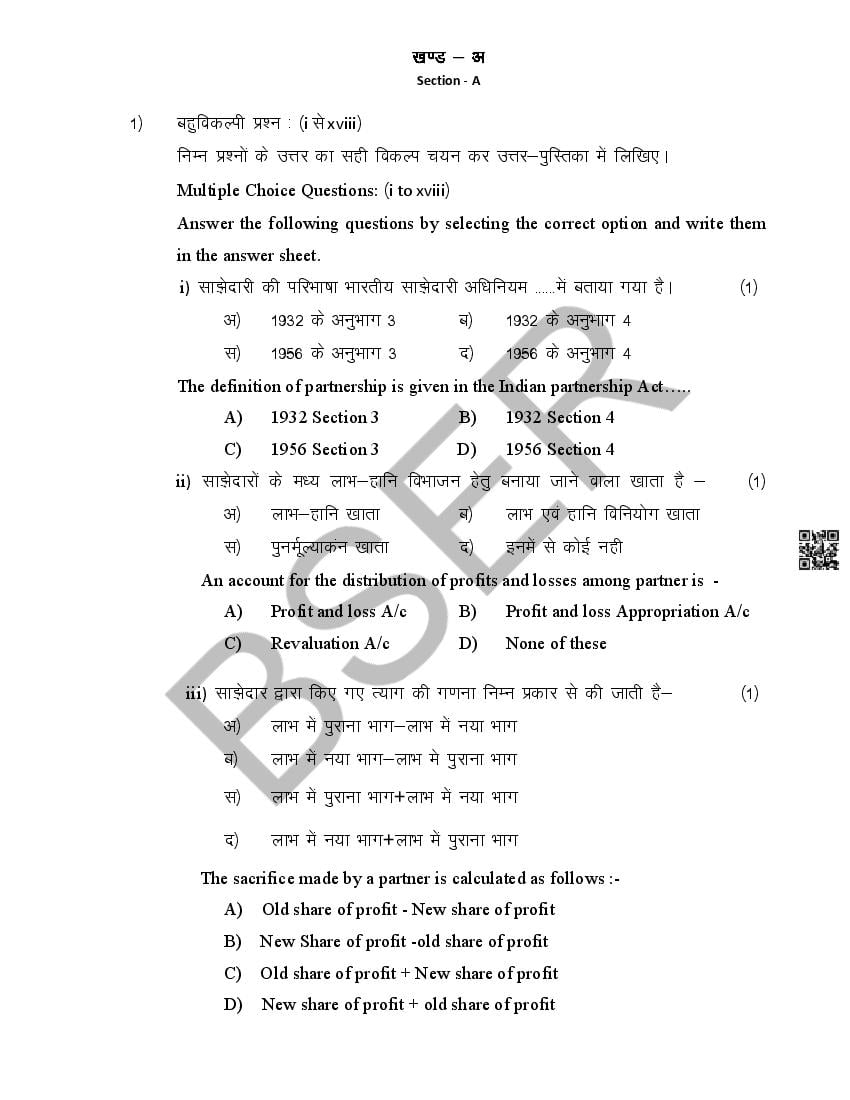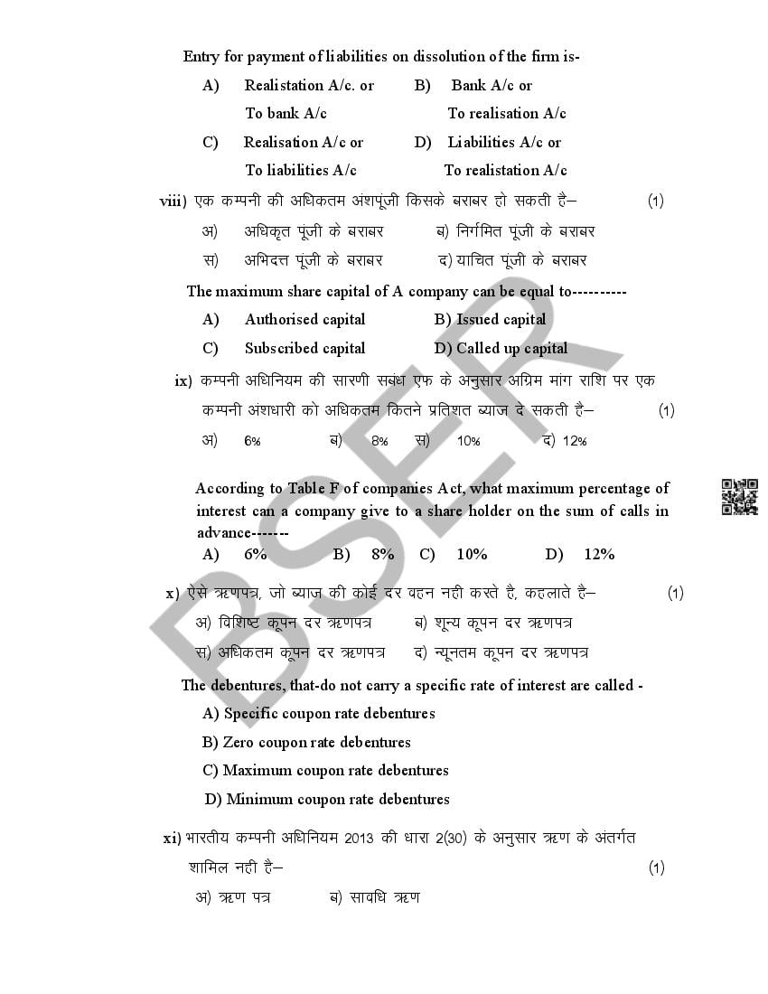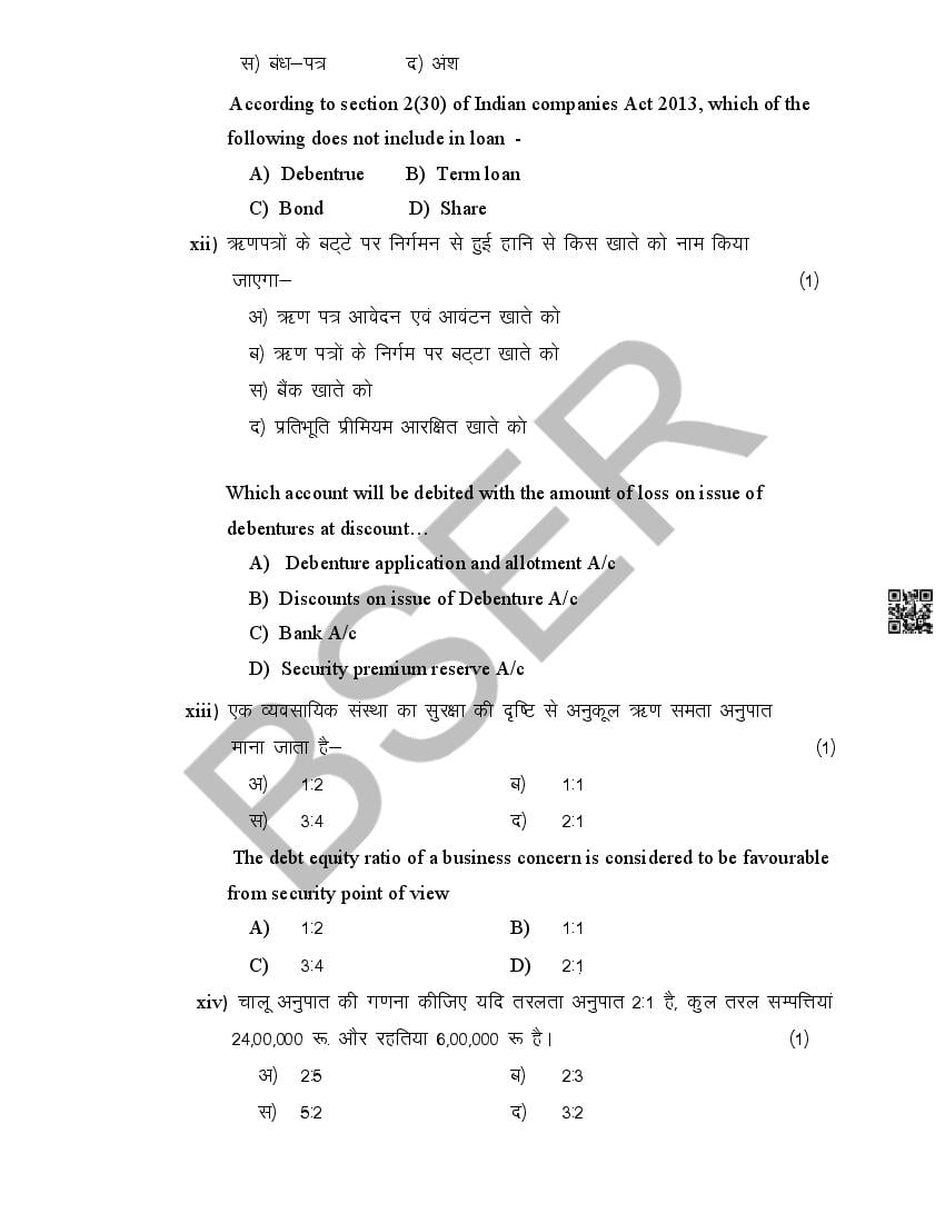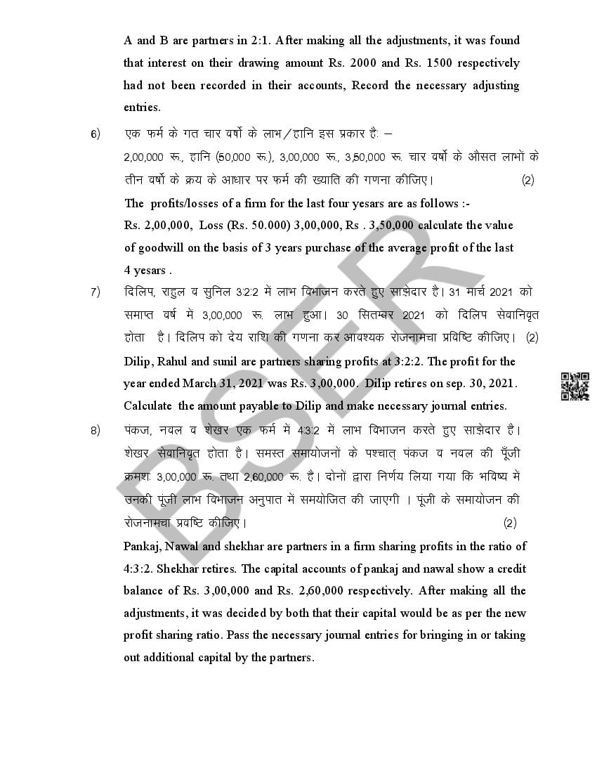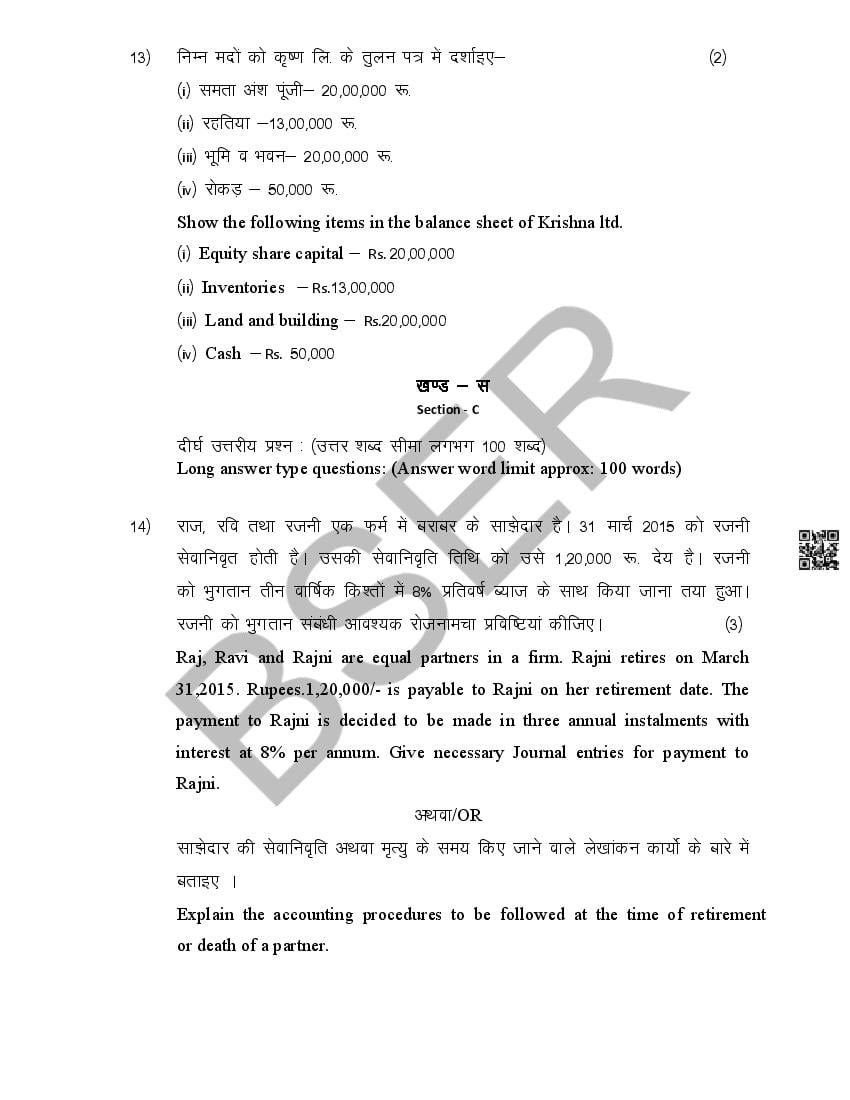 The Rajasthan Board model paper for class 12 Accountancy is as follows.