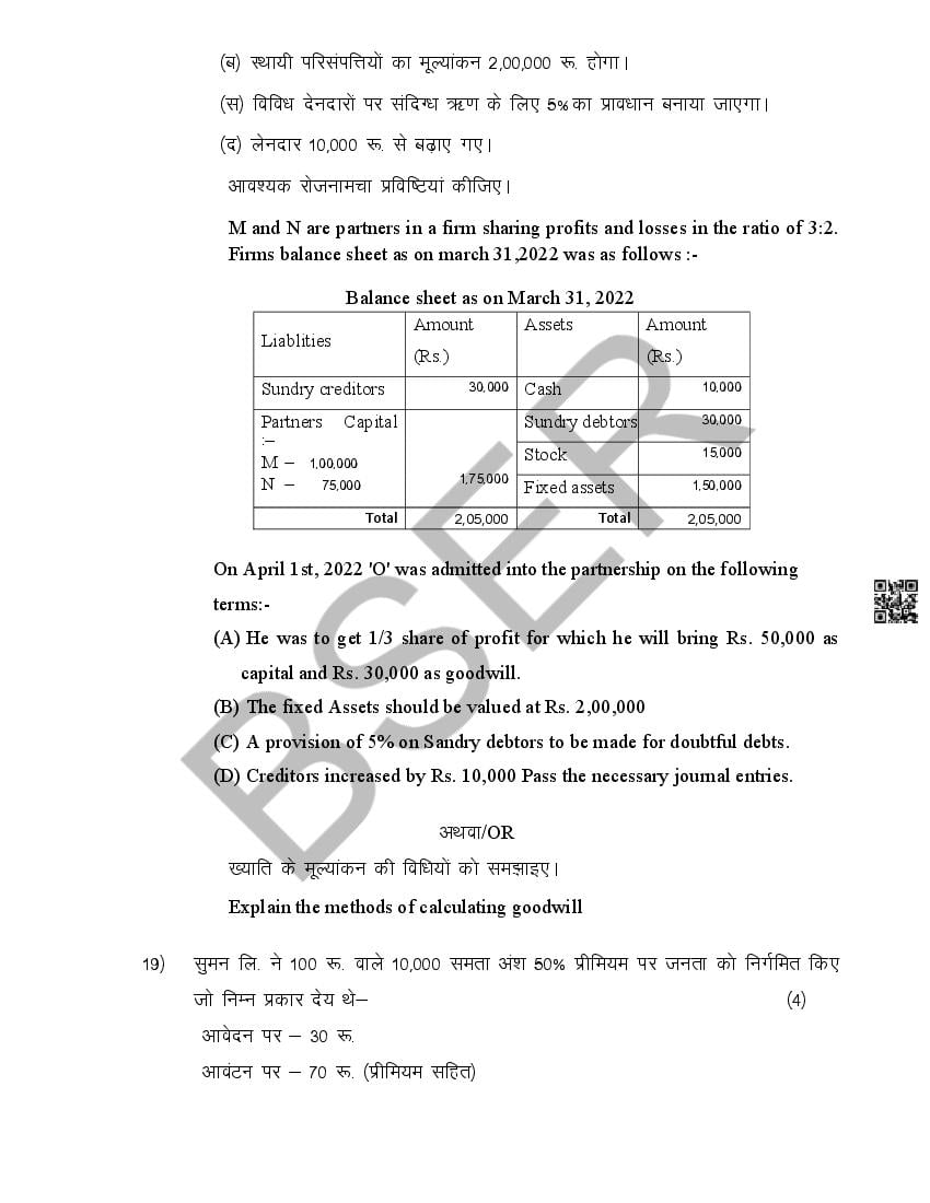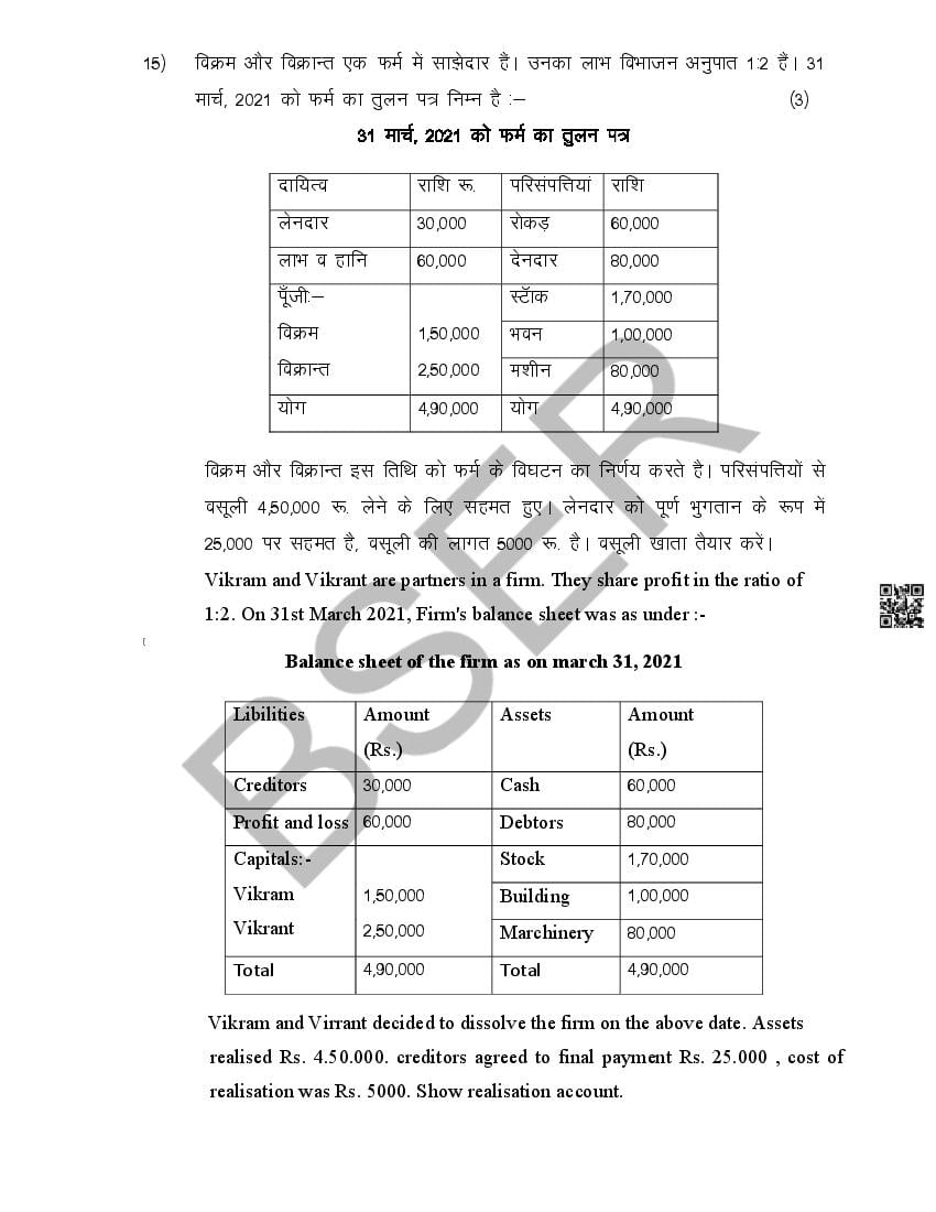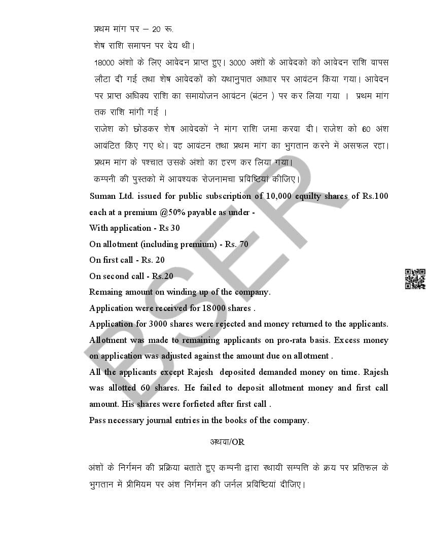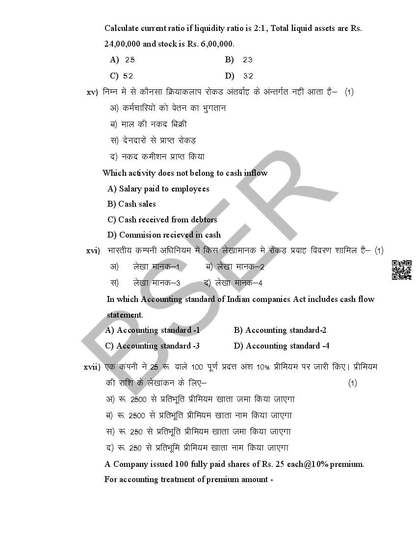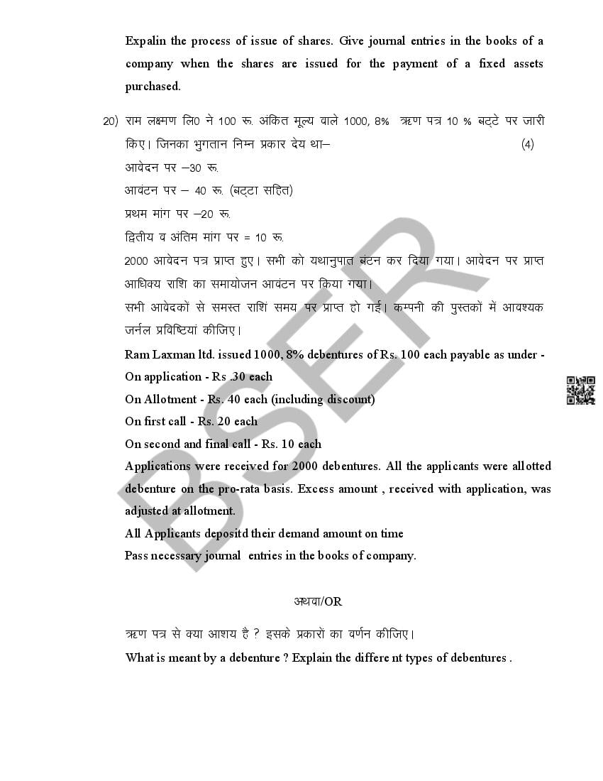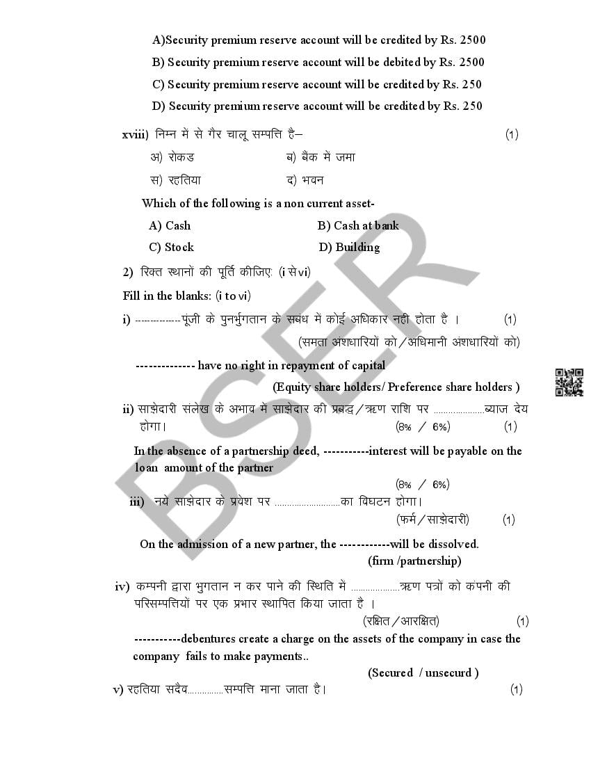 The Rajasthan Board model paper for class 12 Accountancy is as follows.