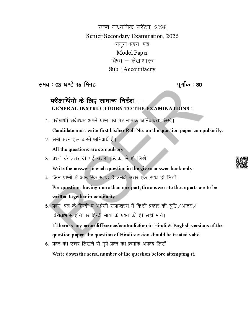 Rajasthan Board 12th Model Paper 2026 Accountancy View Download