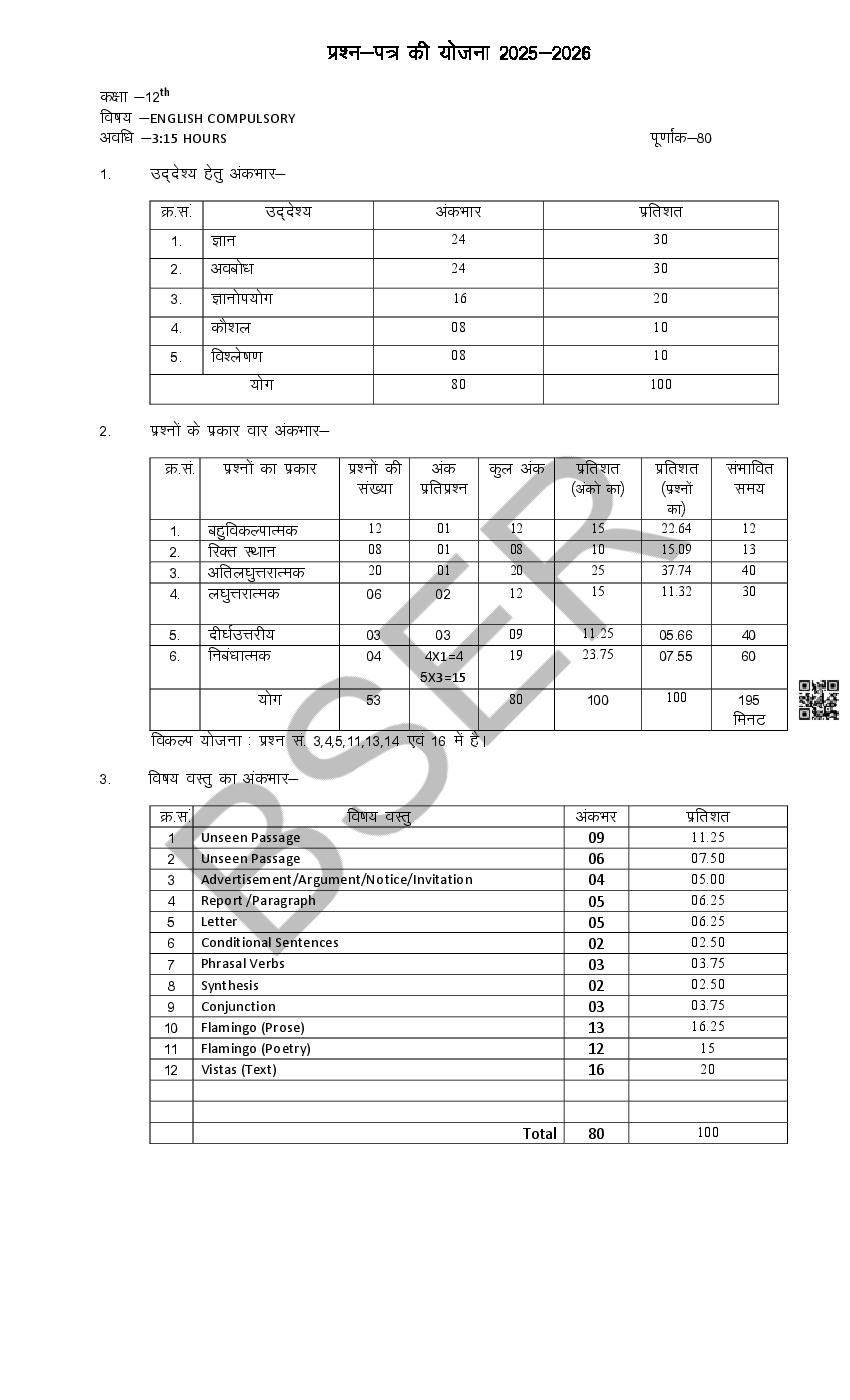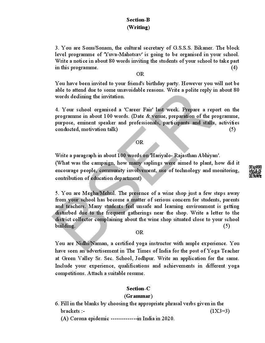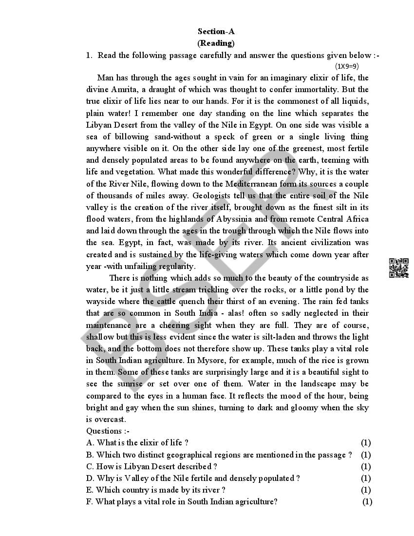 The Rajasthan Board model paper for class 12 English Compulsory is as follows.