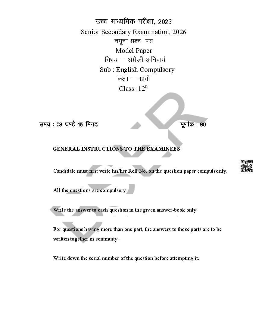 Rajasthan Board 12th Model Paper 2026 English Compulsory View Download