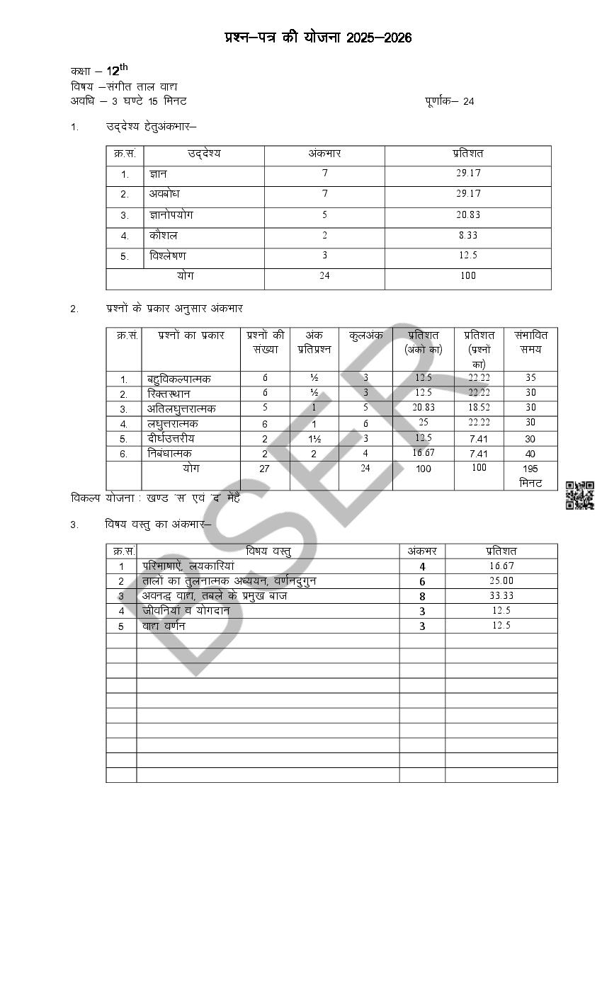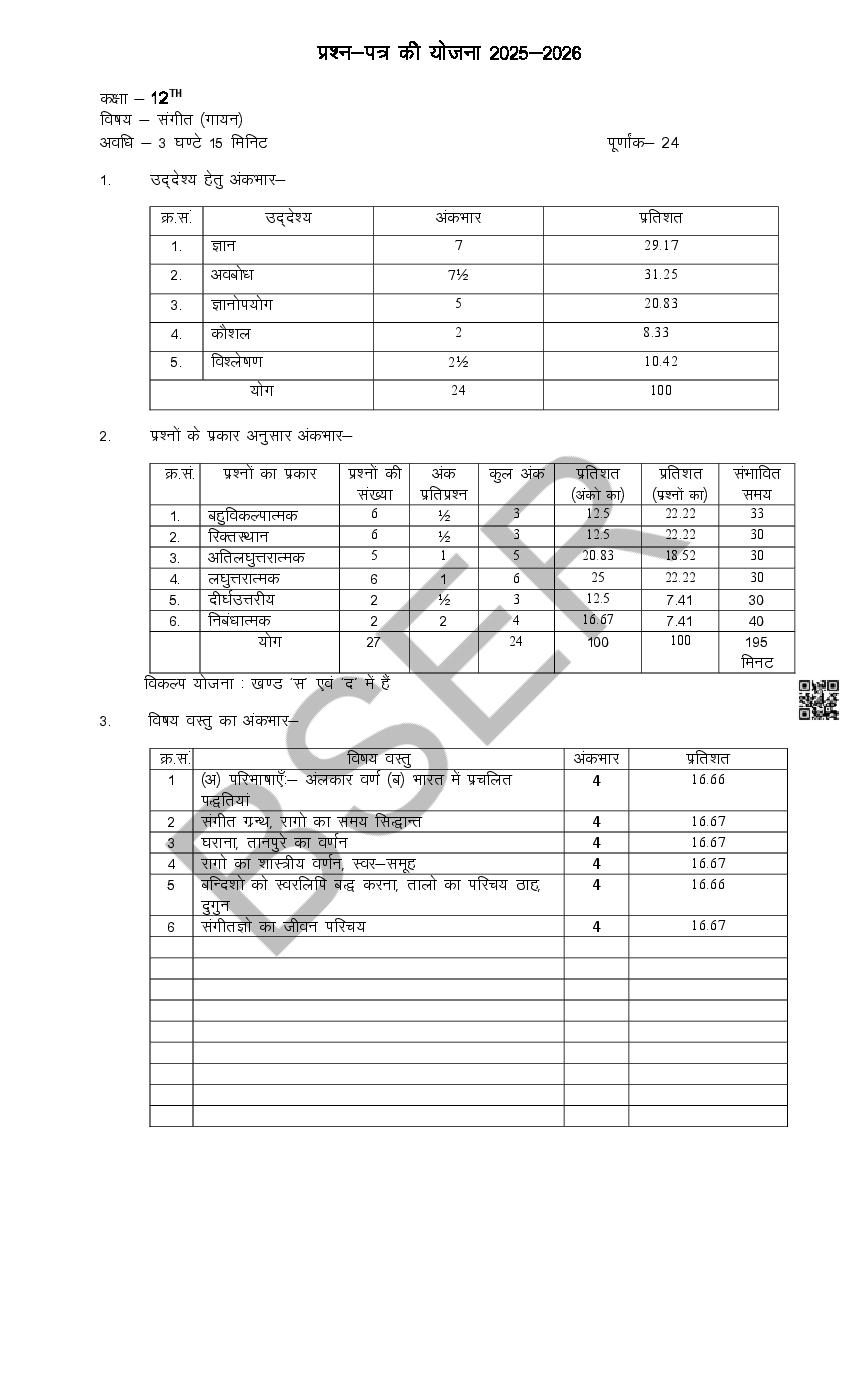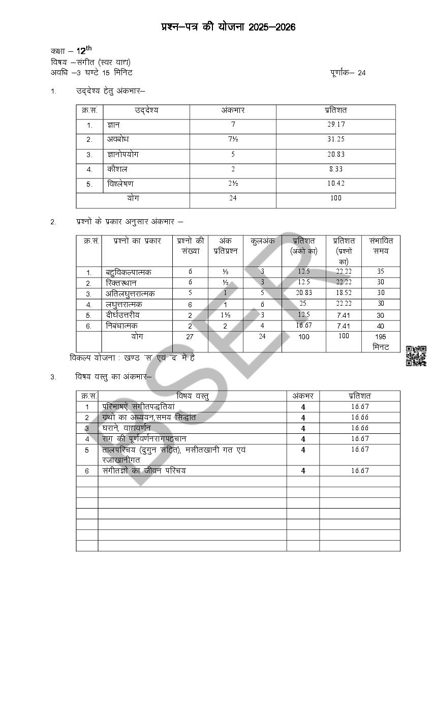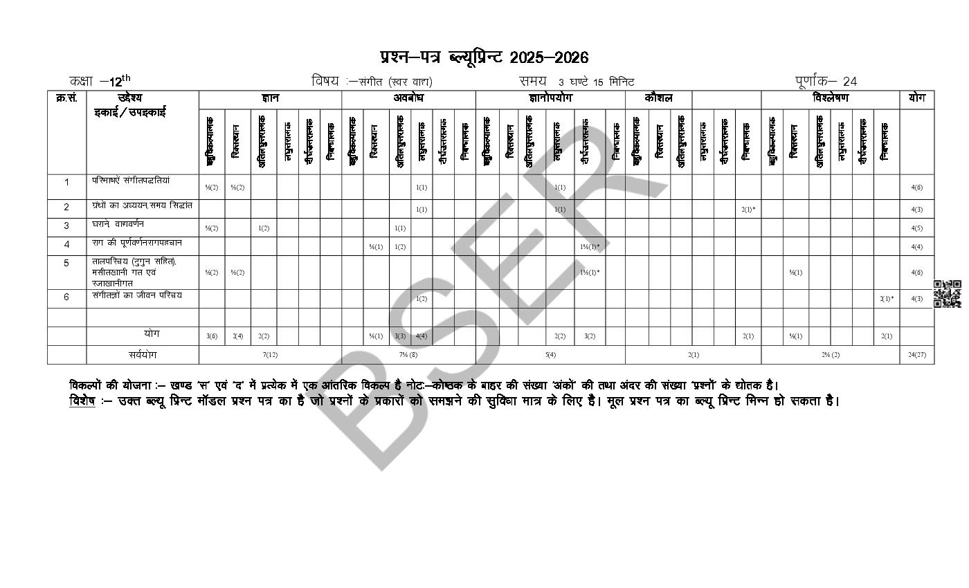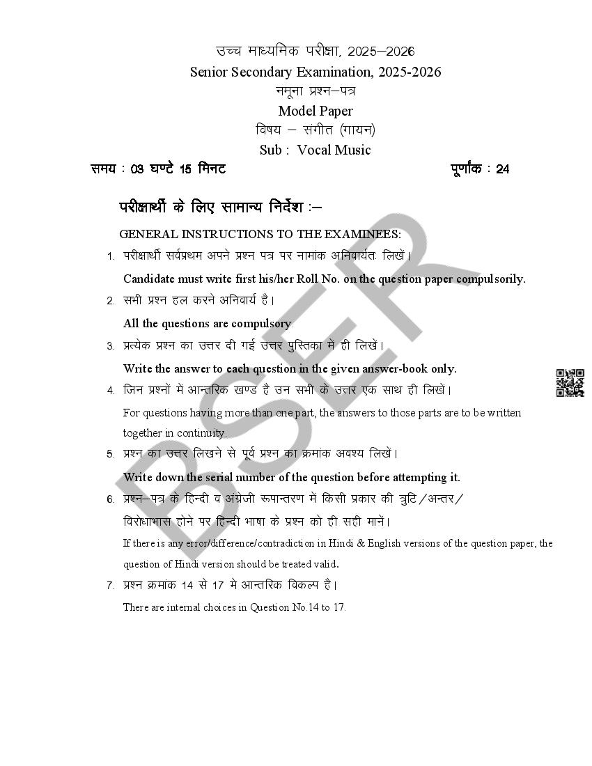 Rajasthan Board 12th Model Paper 2026 Music View Download