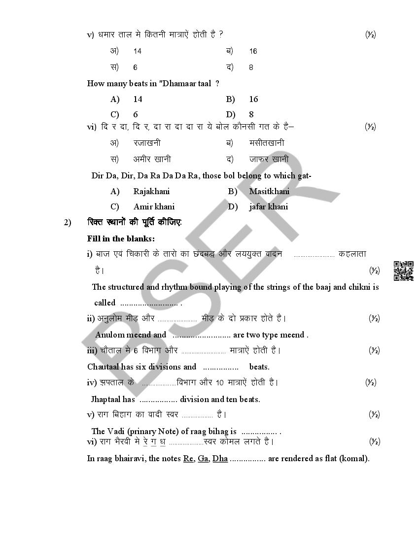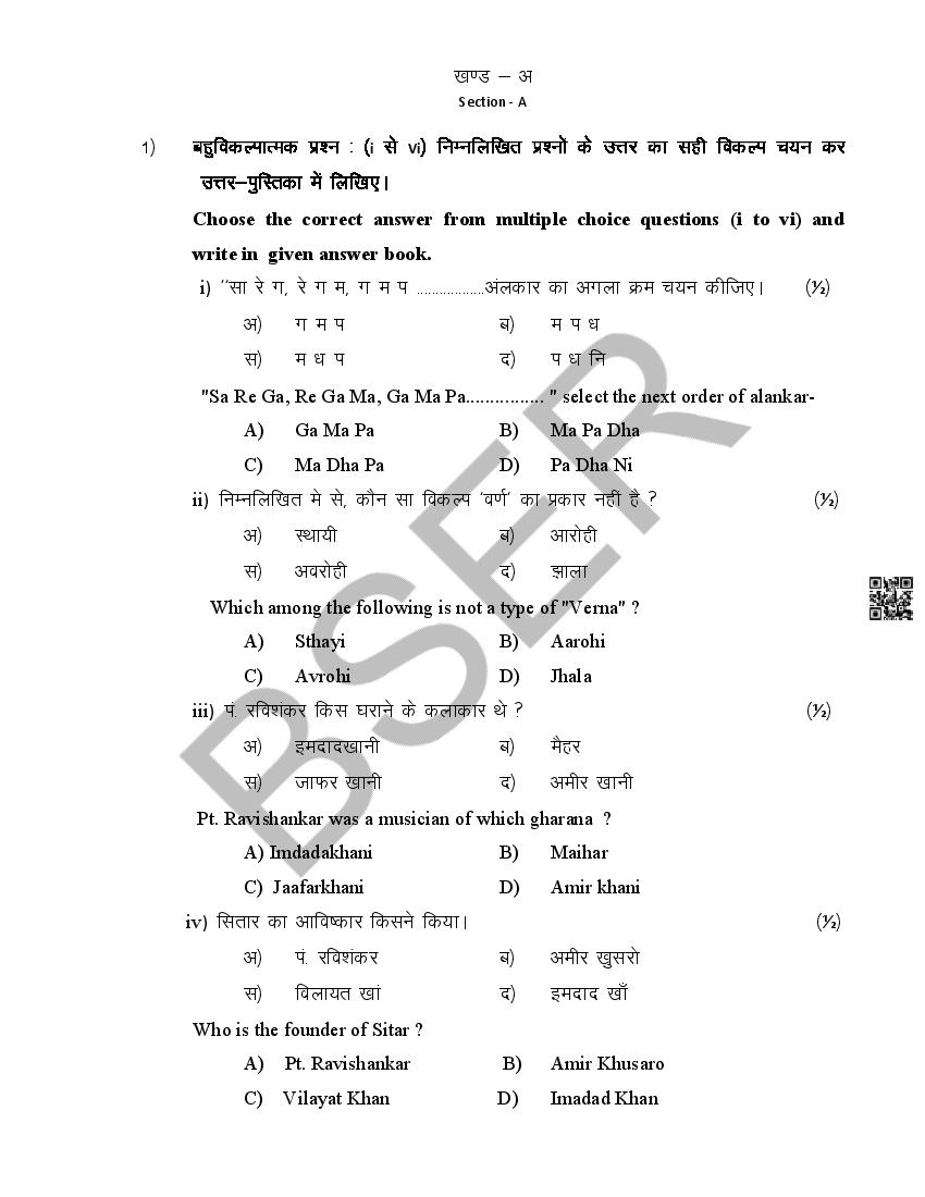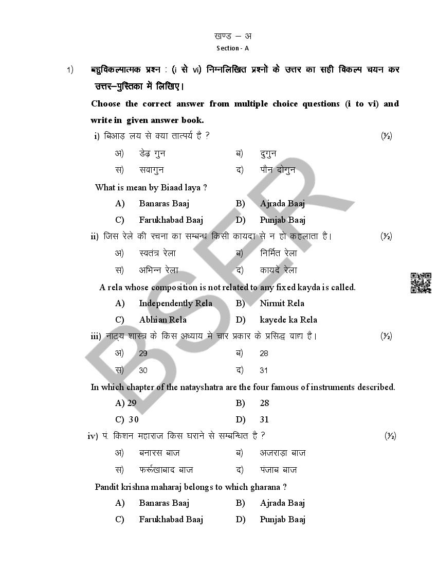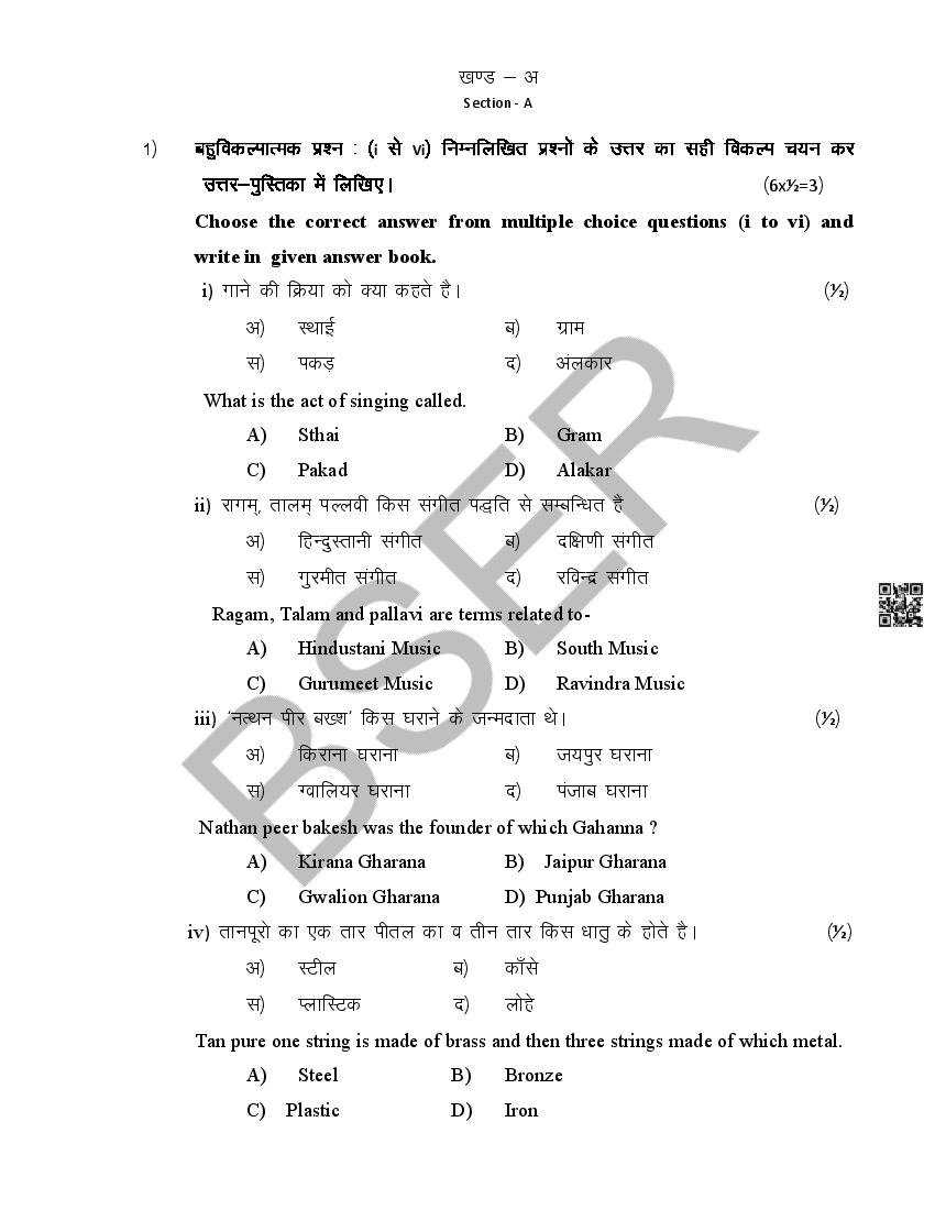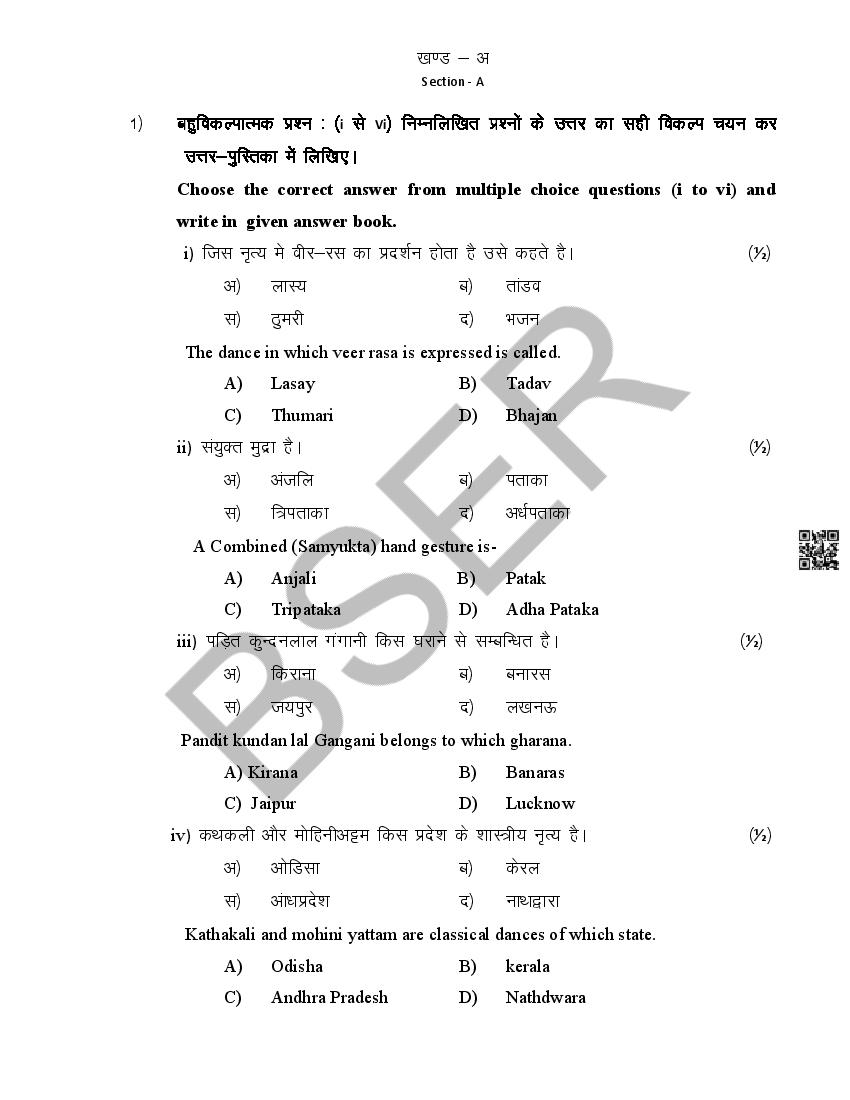 The Rajasthan Board model paper for class 12 Music Dance is as follows.