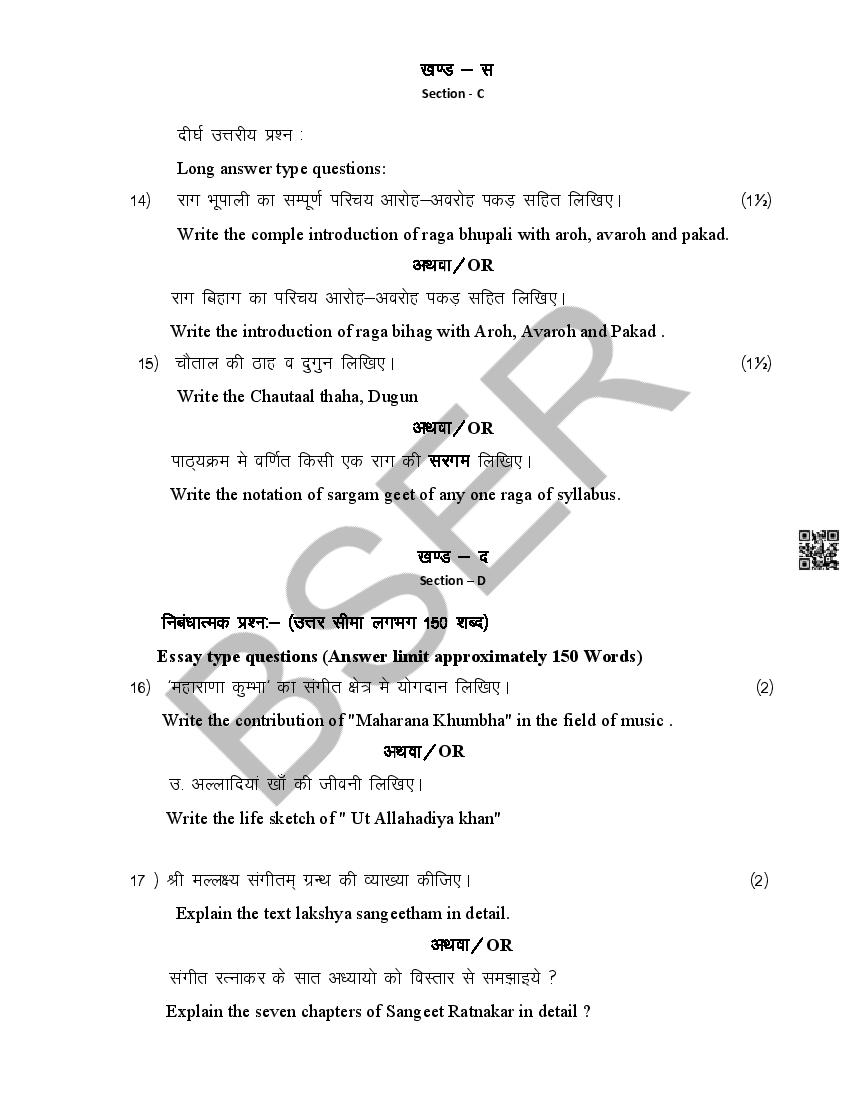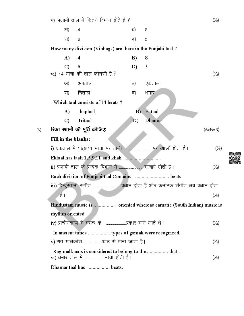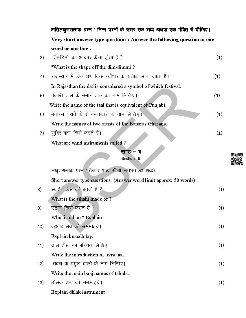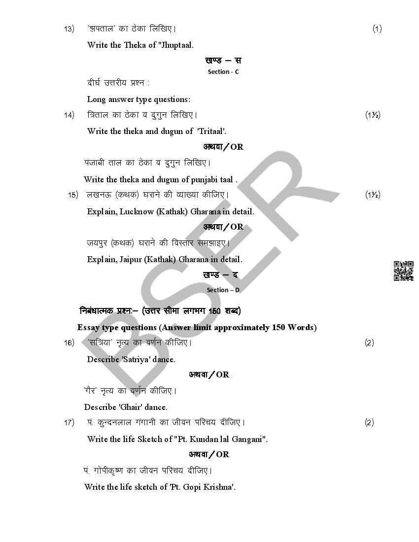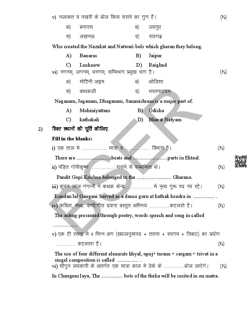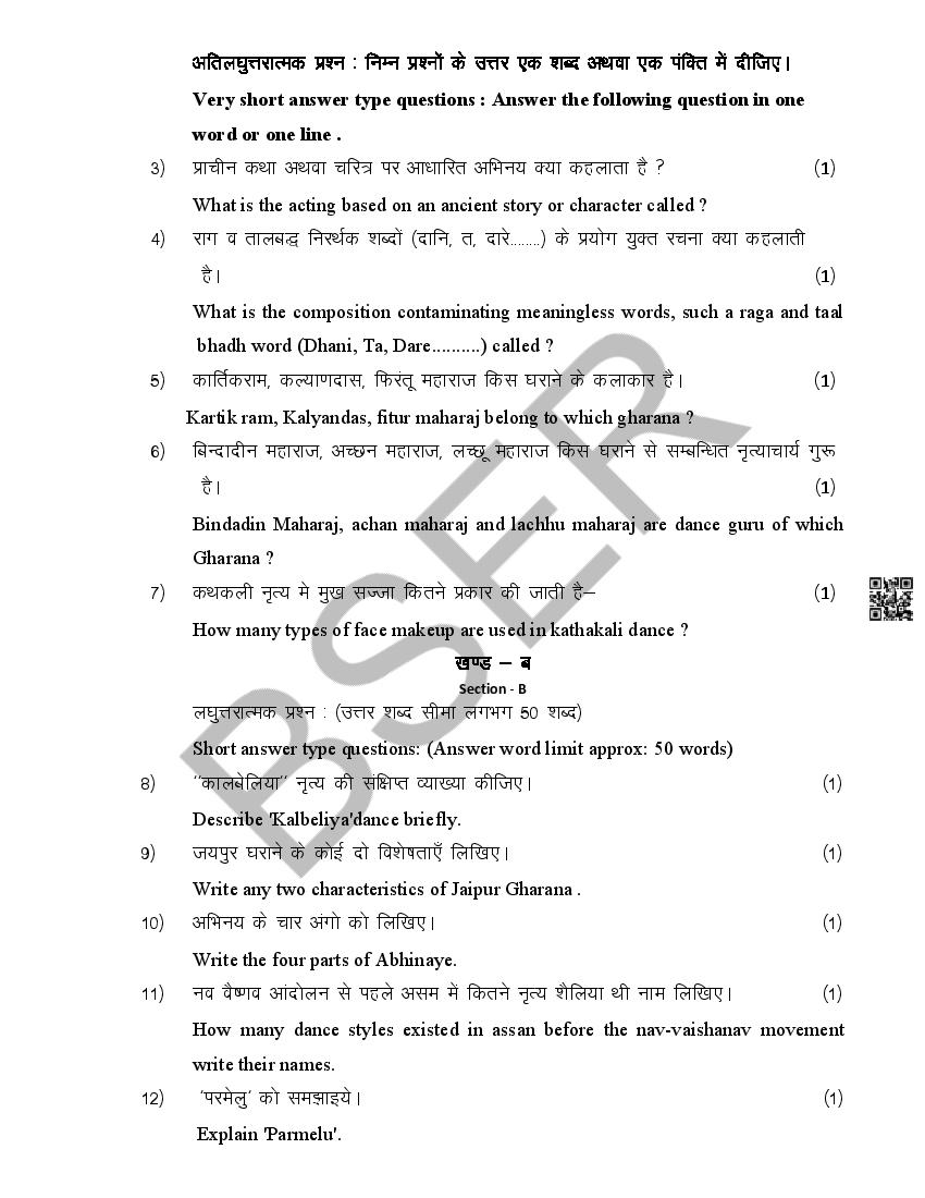 The Rajasthan Board model paper for class 12 Music Dance is as follows.