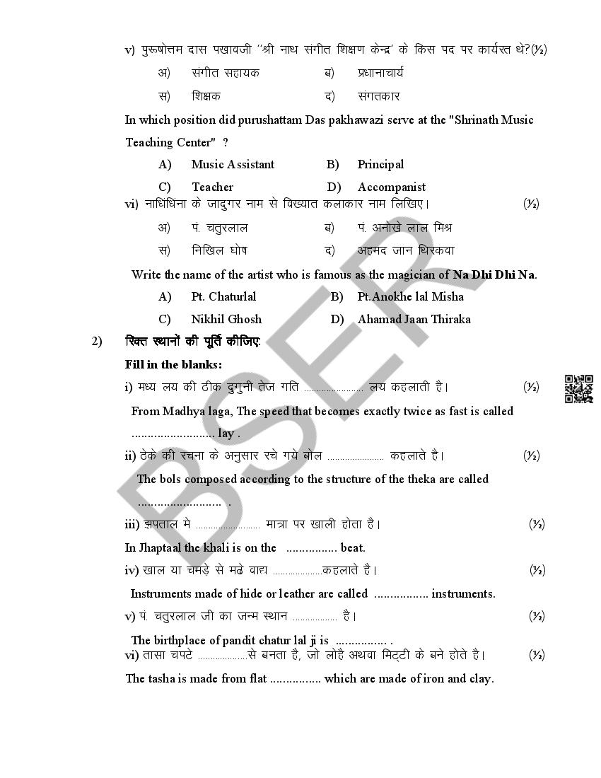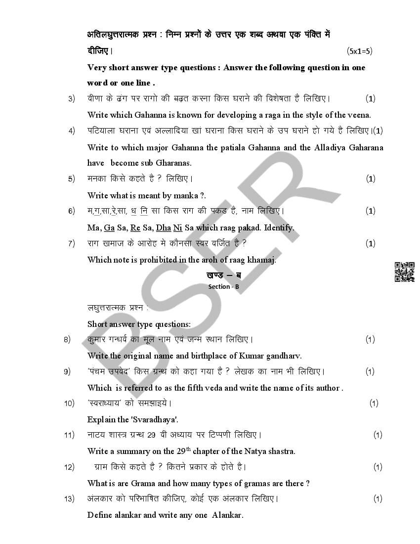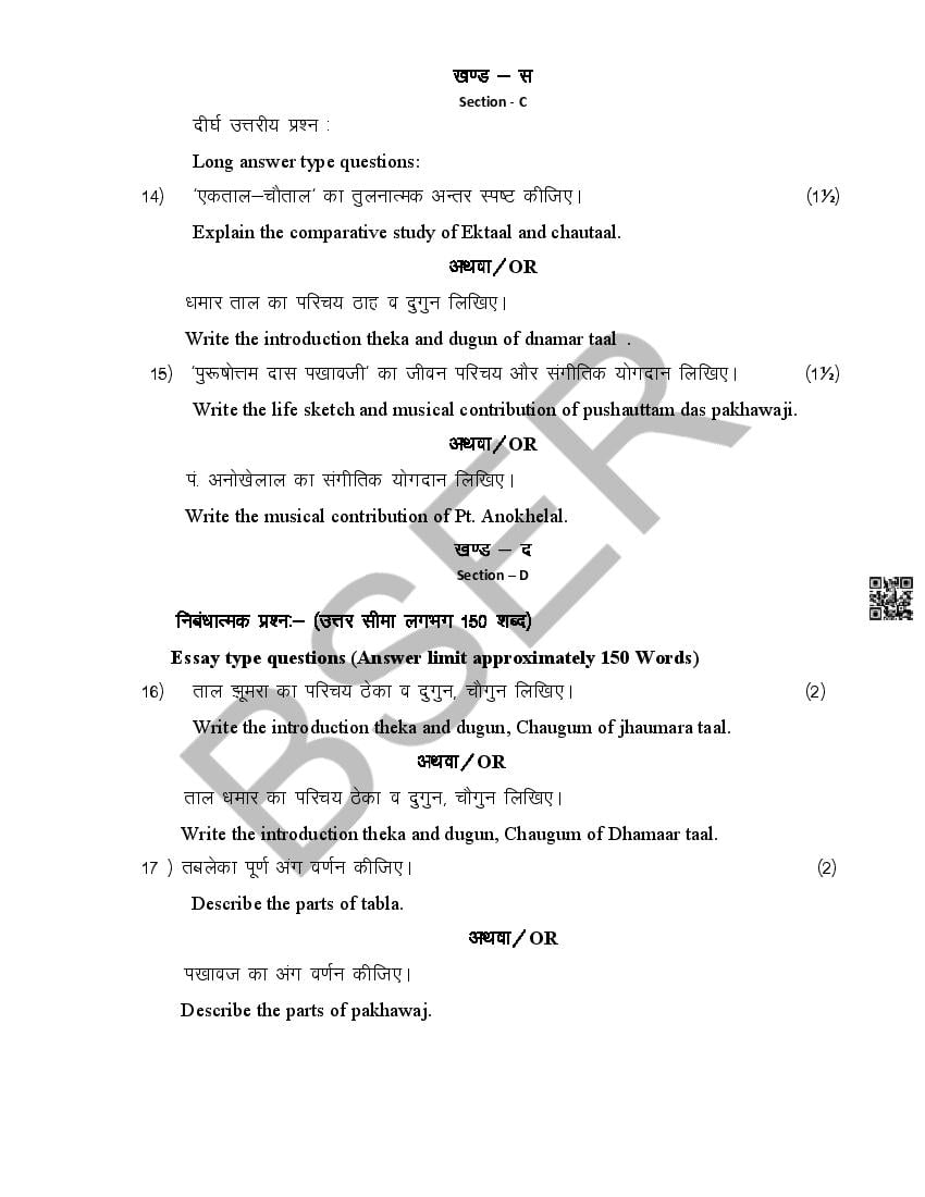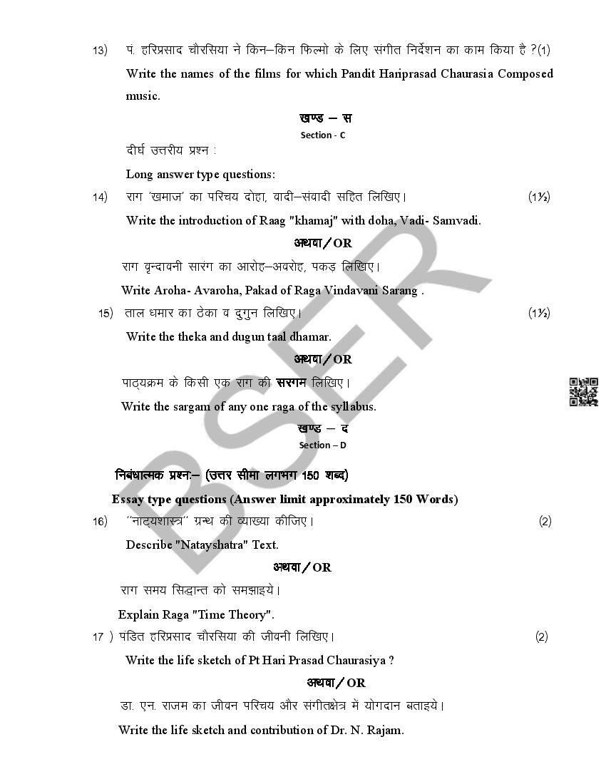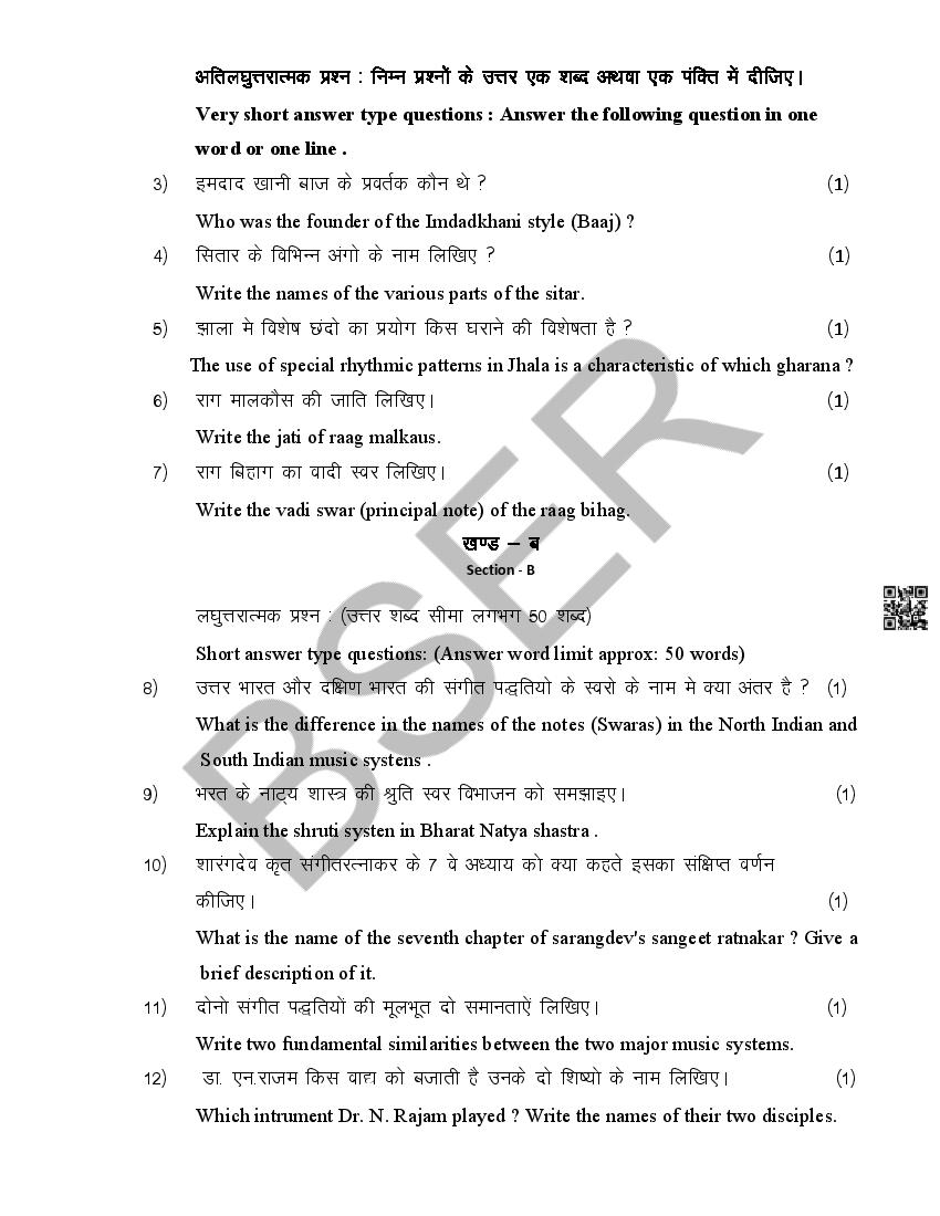 The Rajasthan Board model paper for class 12 Music Dance is as follows.