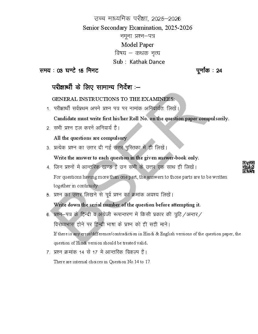 If you have any queries on RBSE Class 12 Music Dance Model Paper 2026, then please ask in comments below.