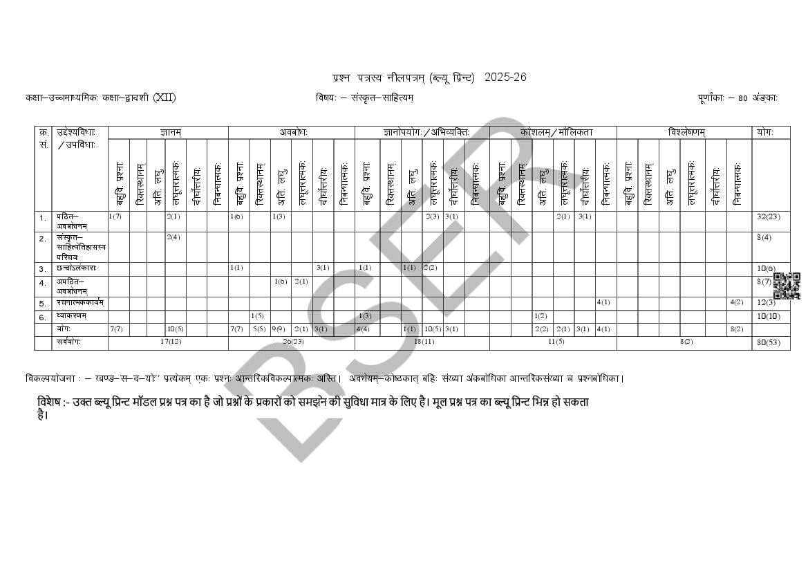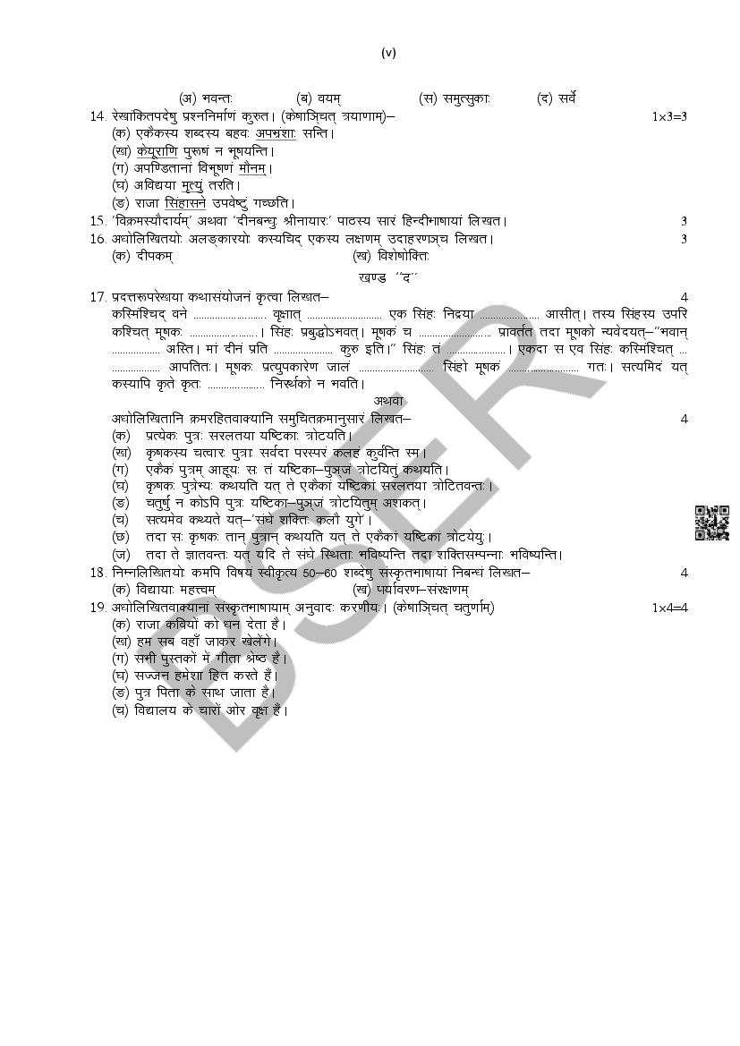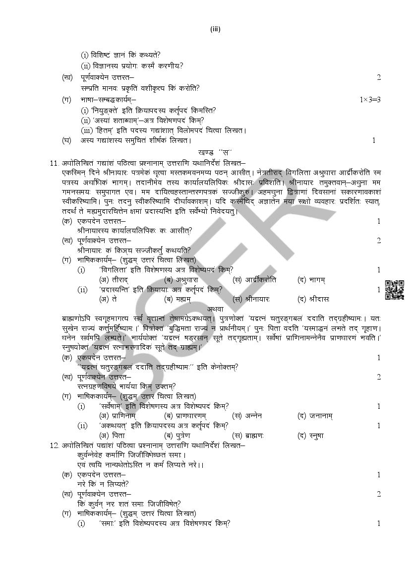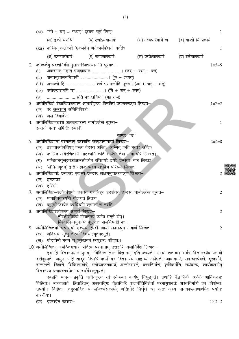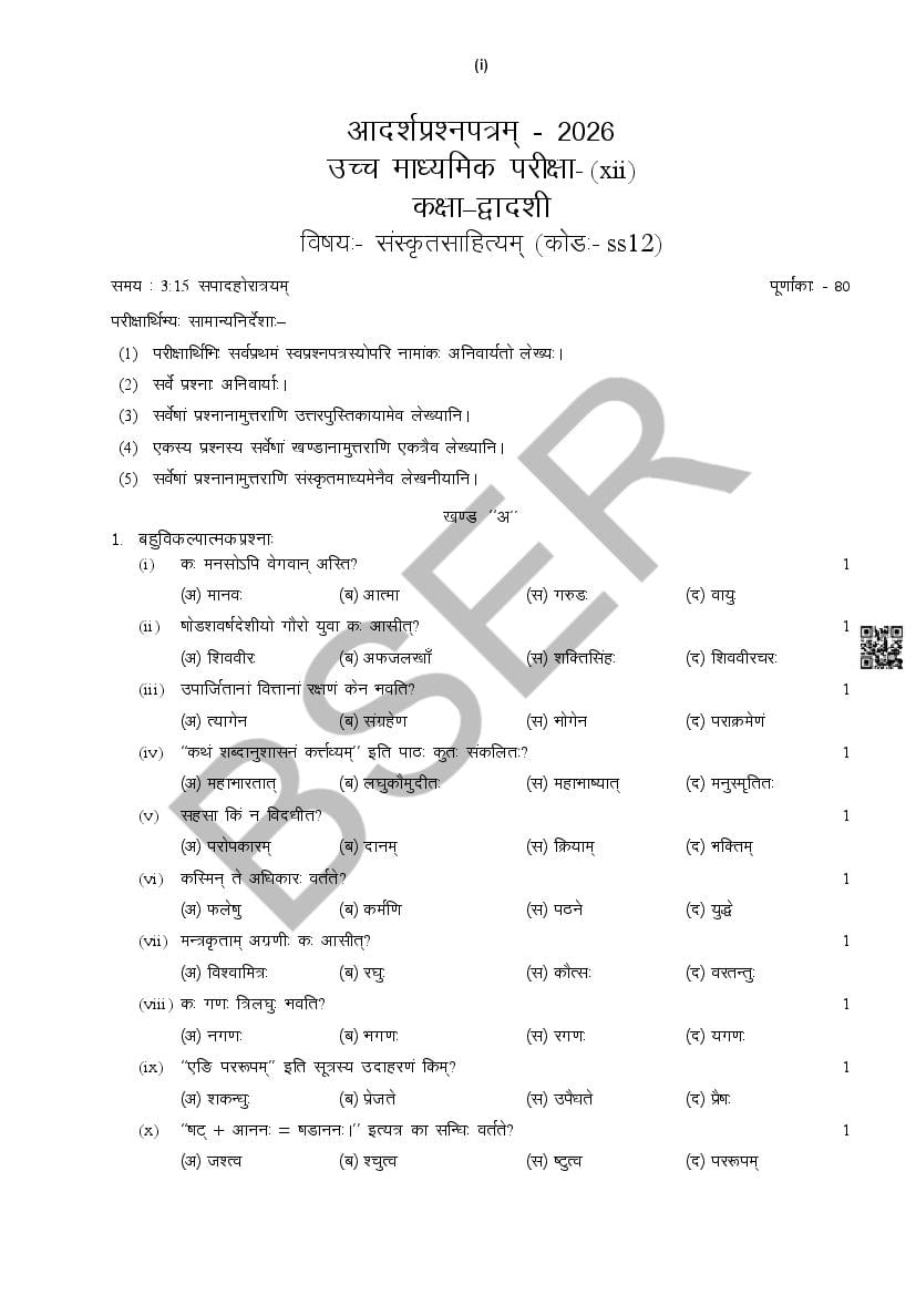 The Rajasthan Board model paper for class 12 Sanskrit is as follows.