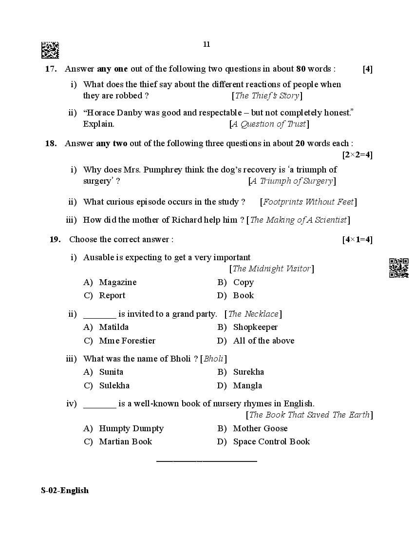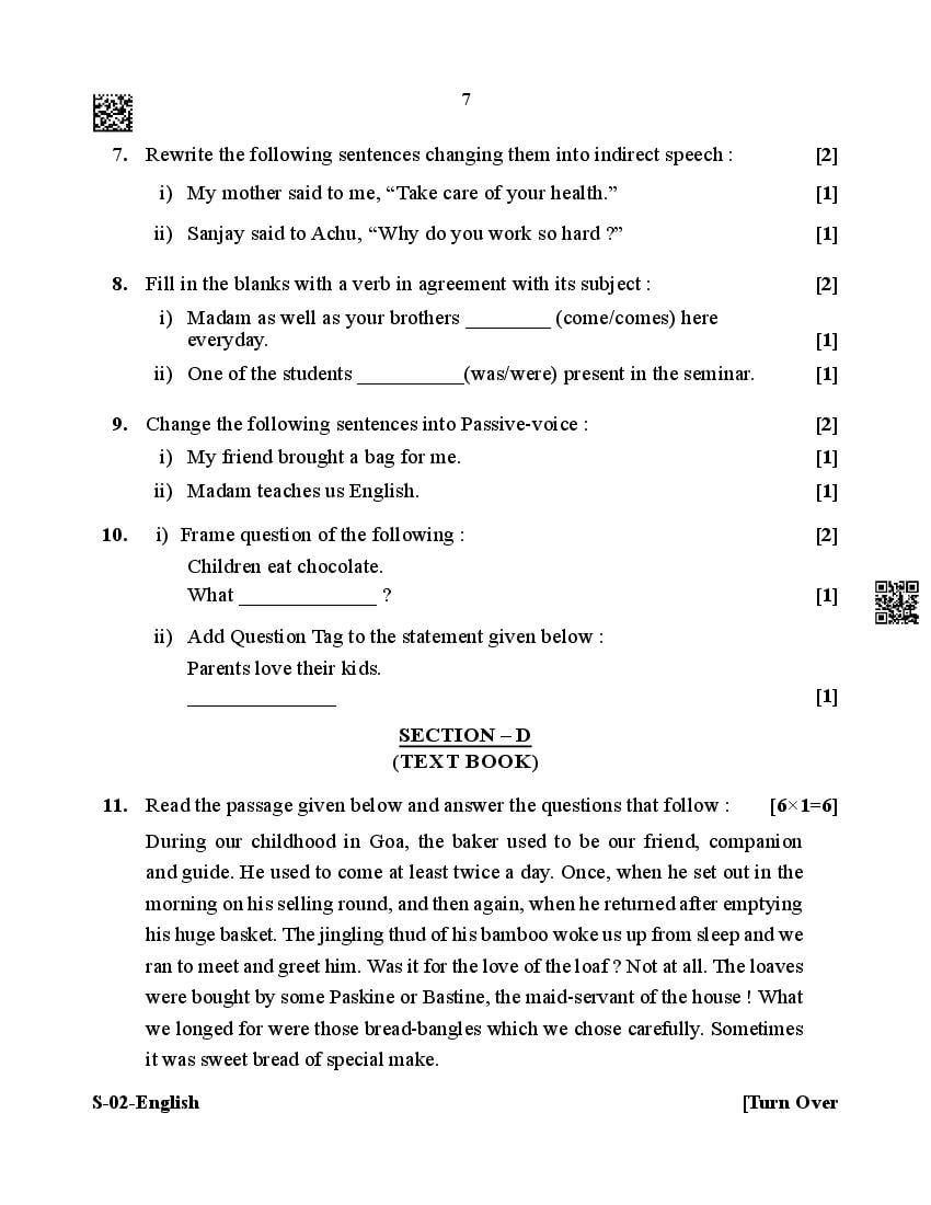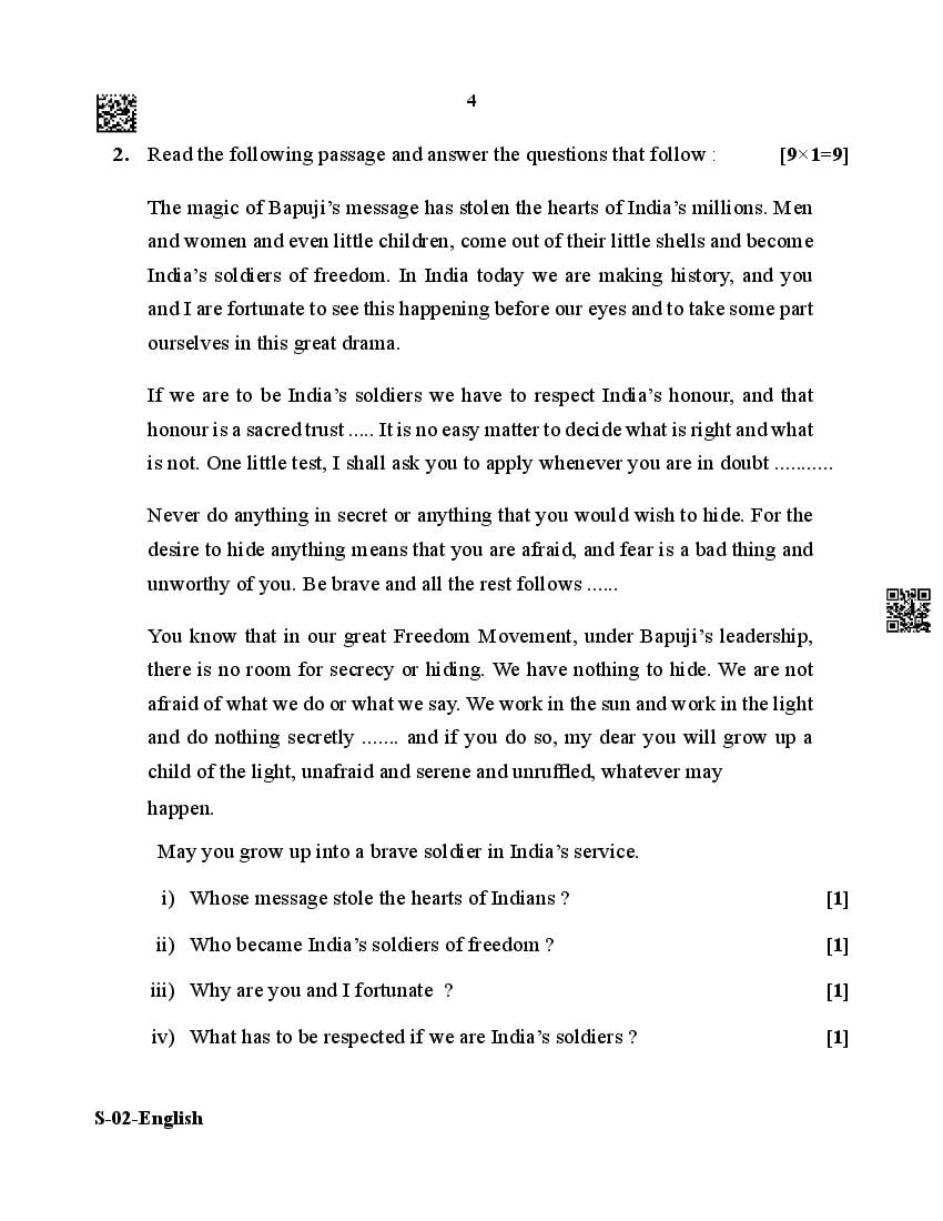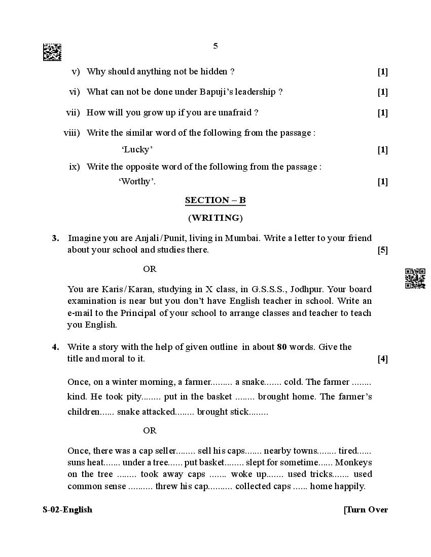 The Rajasthan Board previous year question paper for class 10 English is as follows.