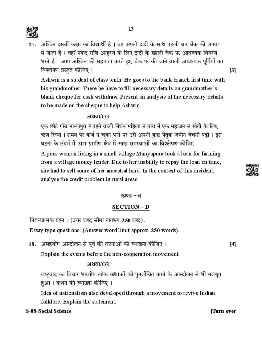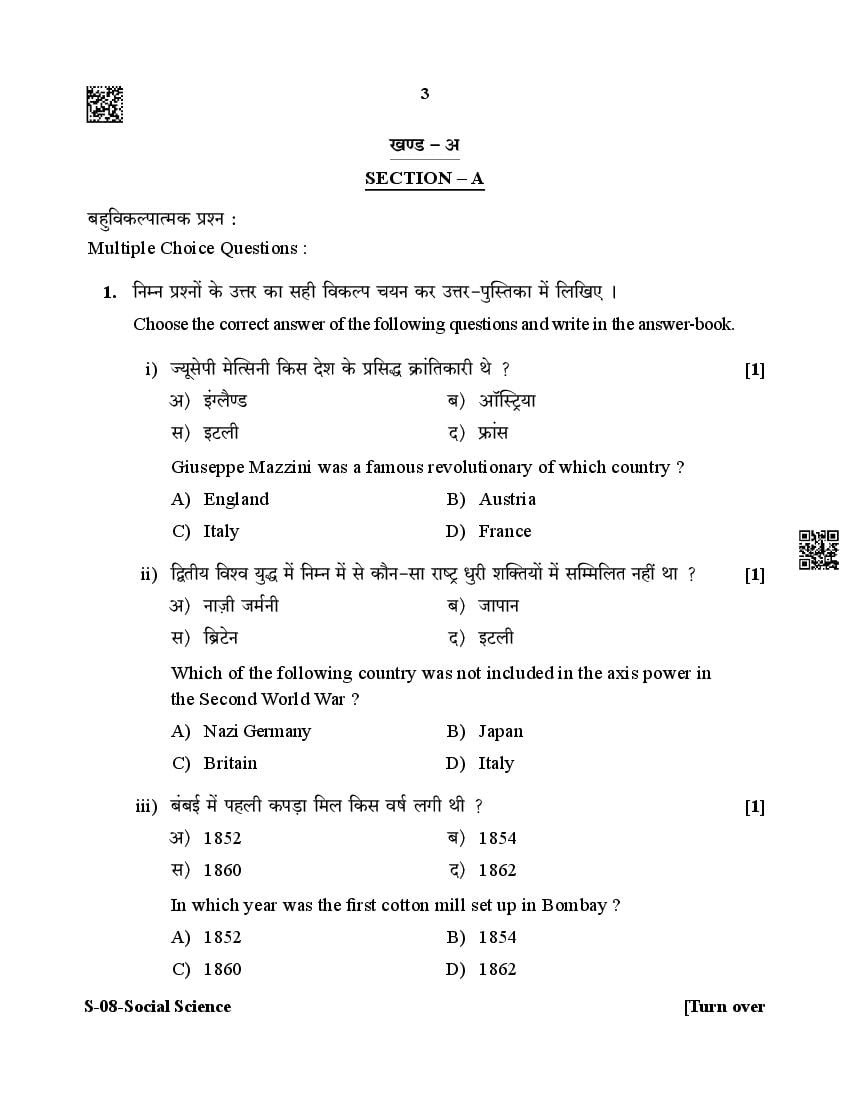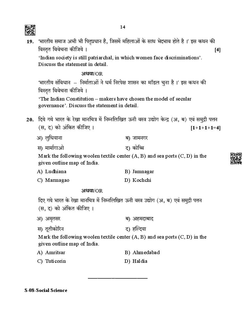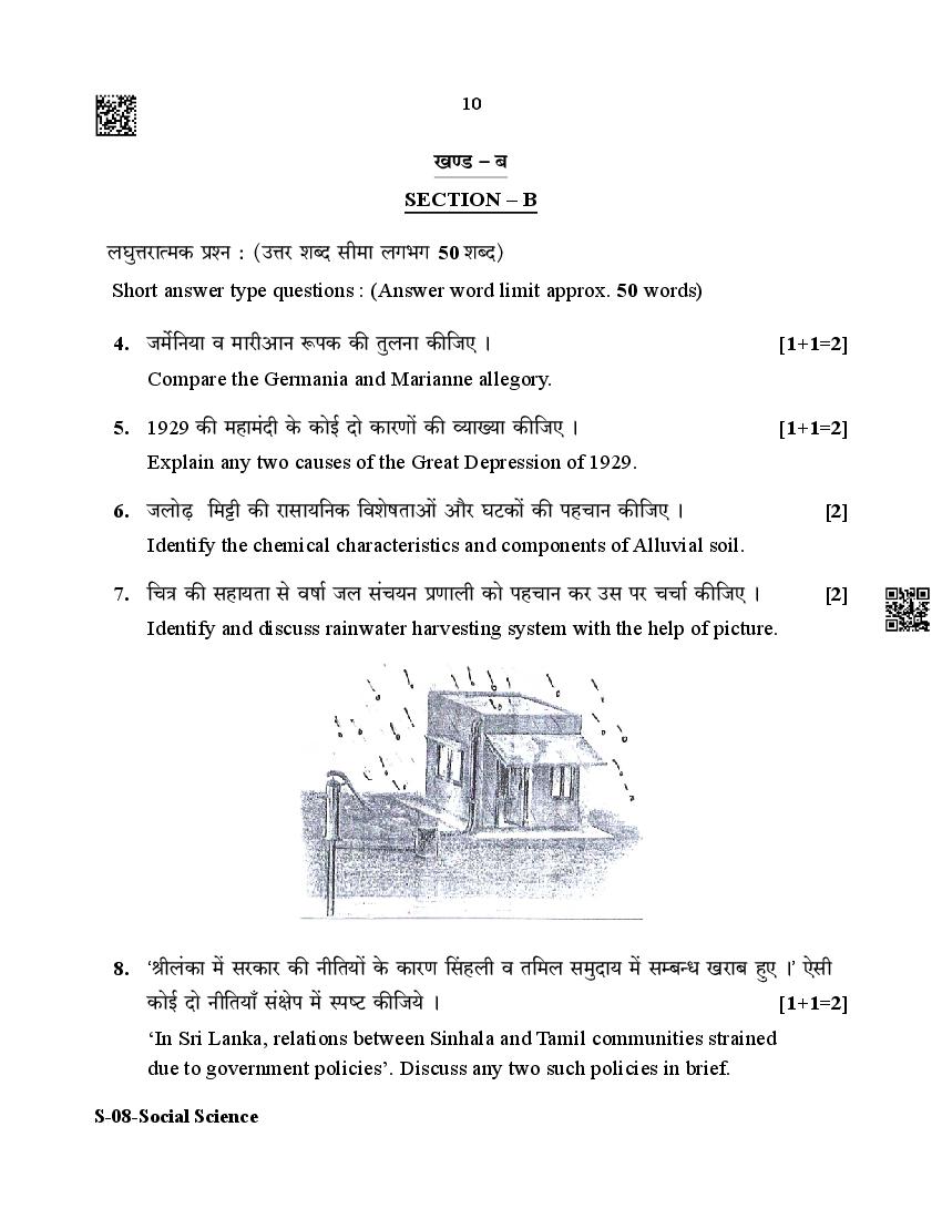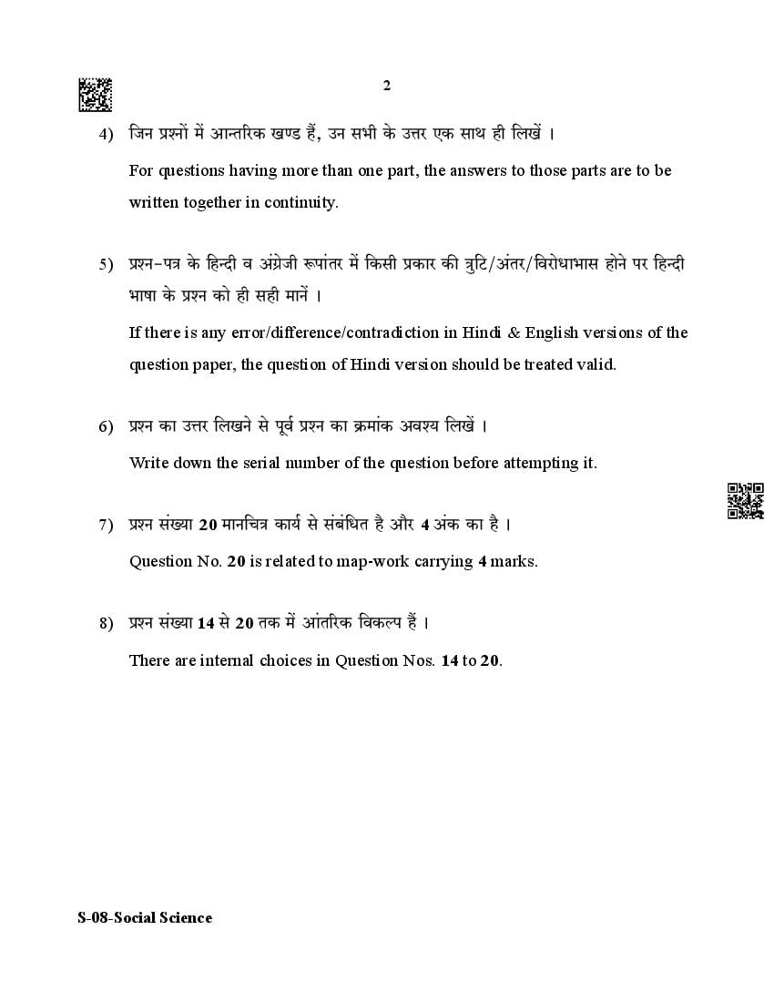 The Rajasthan Board previous year question paper for class 10 Social Science is as follows.