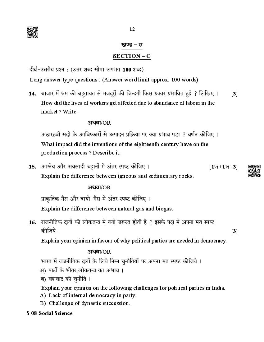 Rajasthan Board Social Science Question Paperis given below.