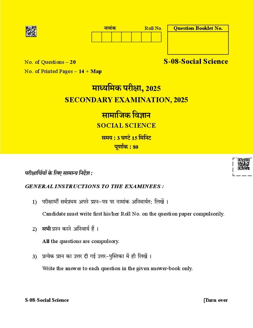 RBSE 10th Social Science Question Paper 2025 PDF is given below.