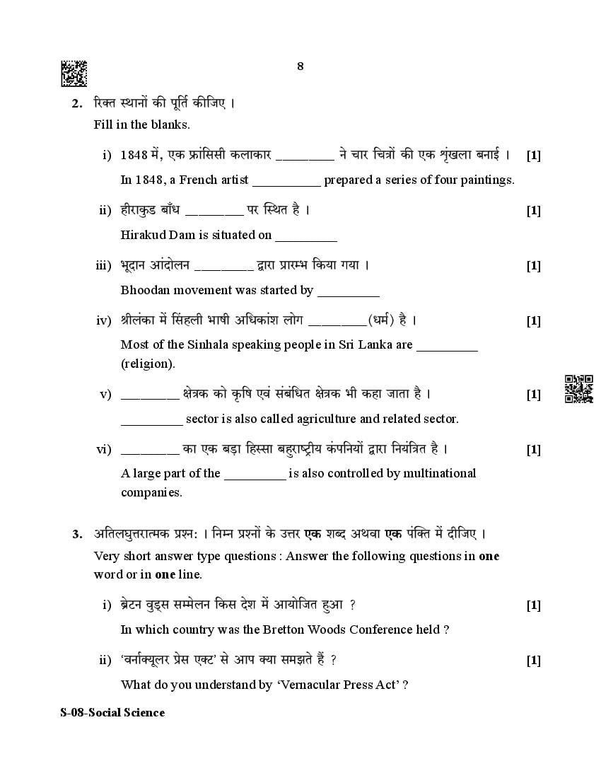 - RBSE Class 8 Question Papers