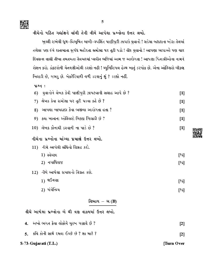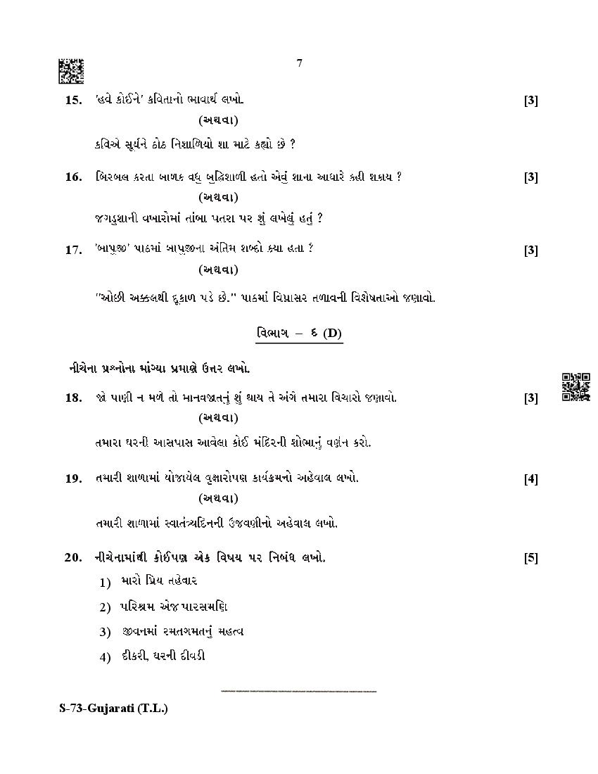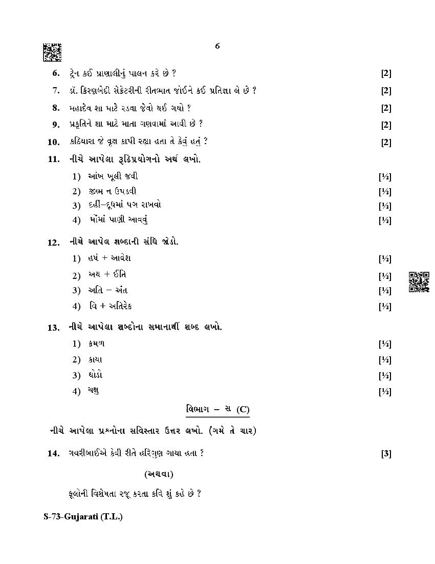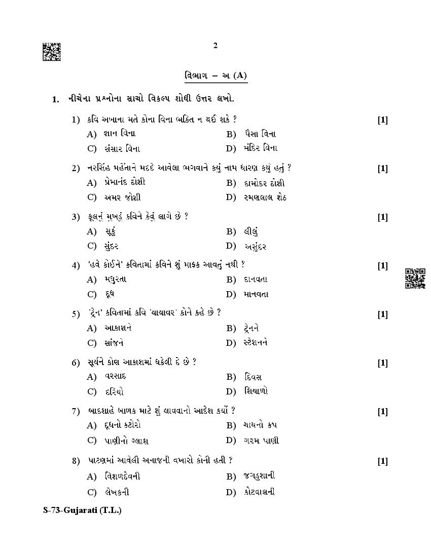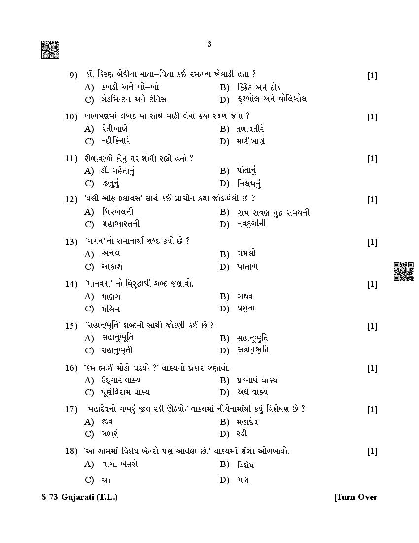 The Rajasthan Board previous year question paper for class 10 Gujarati is as follows.