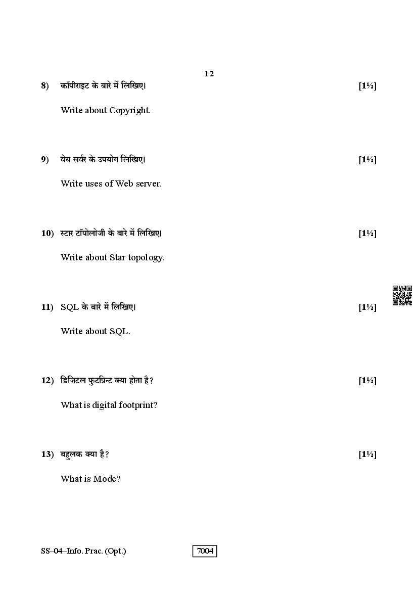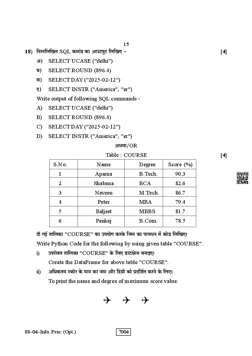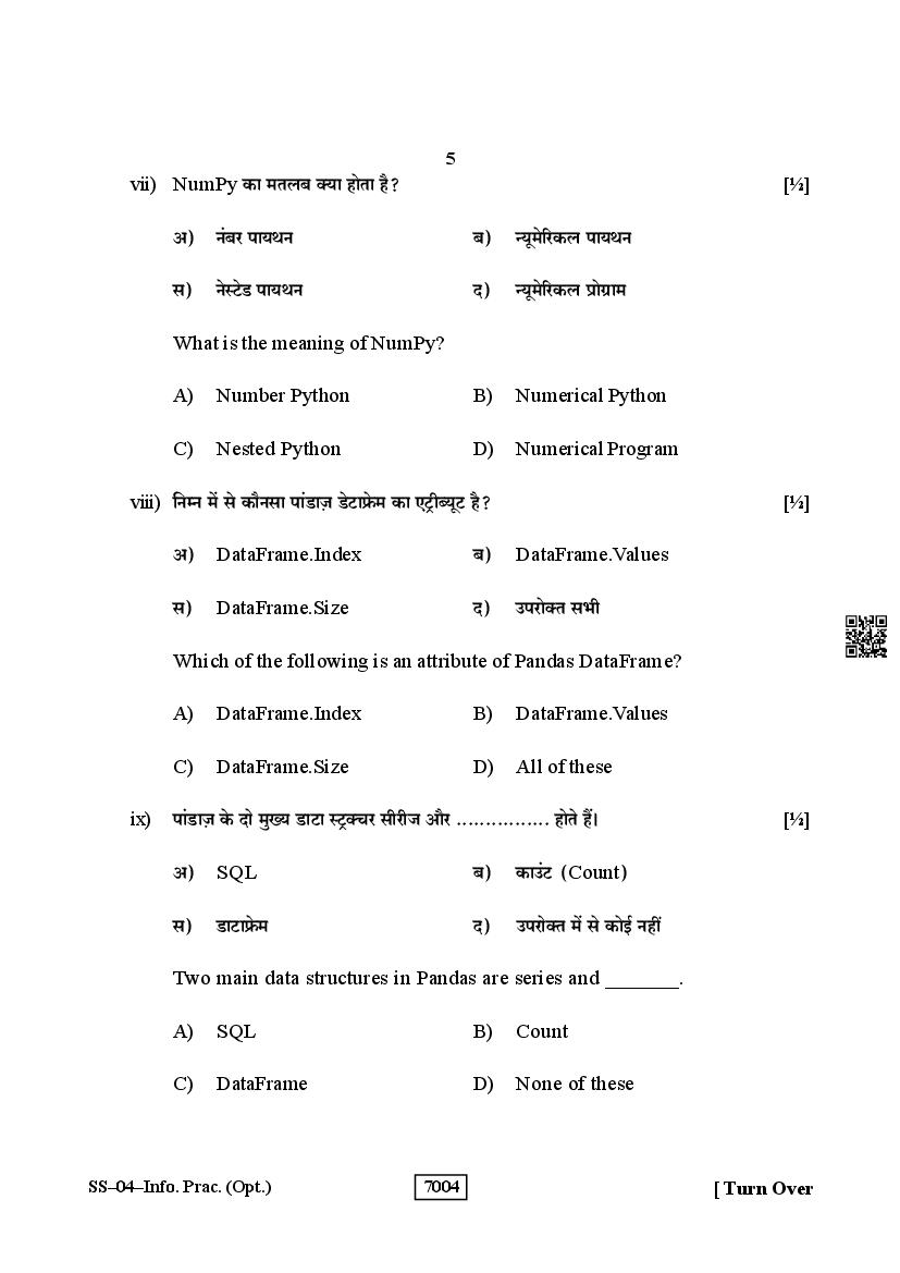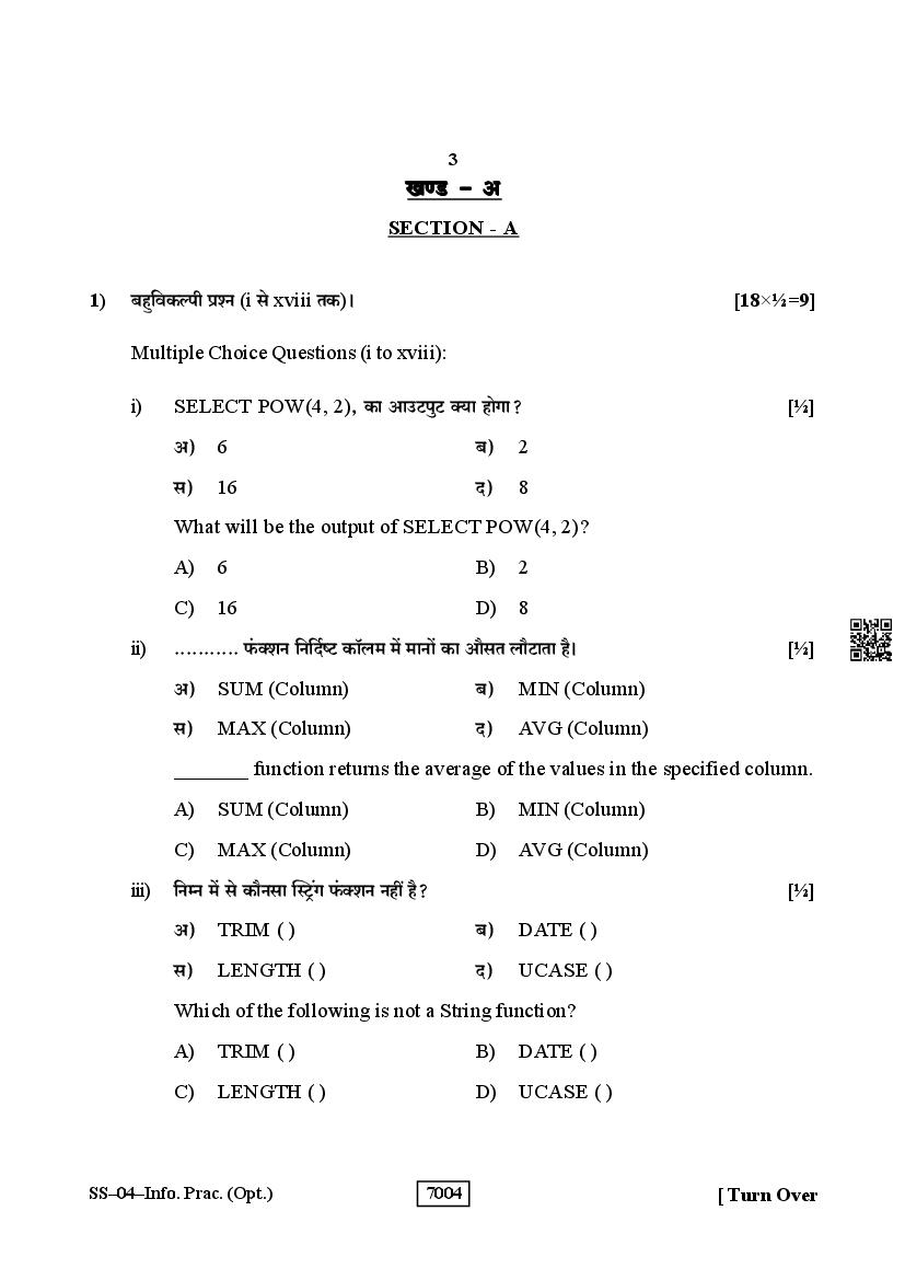 More RBSE Class 12 Informatics Practices Question Papers Download Link – Click Here to Download PDFs