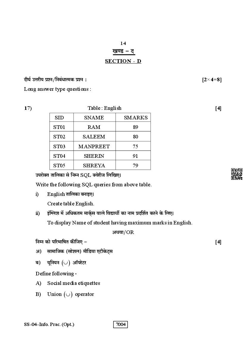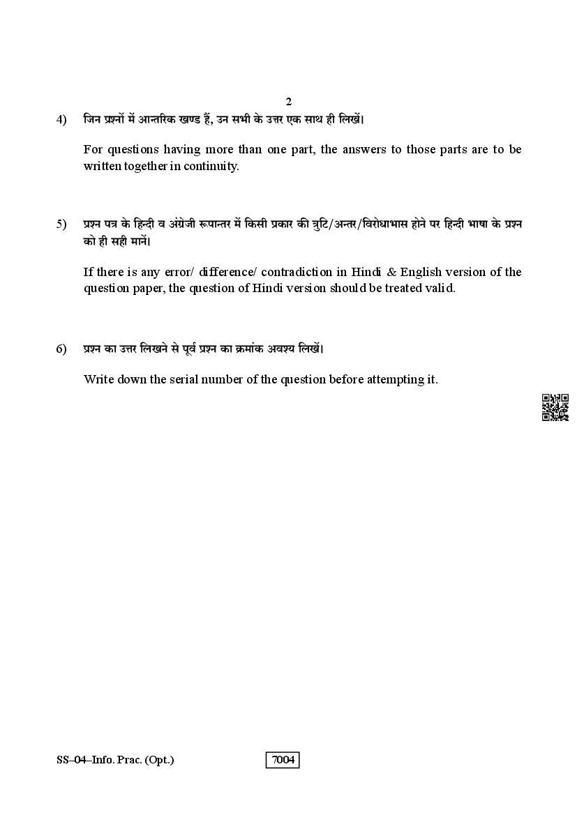 For the sake of the candidates download links of the Rajasthan Board 12 Informatics Practices Previous Year Question Paper are given below.