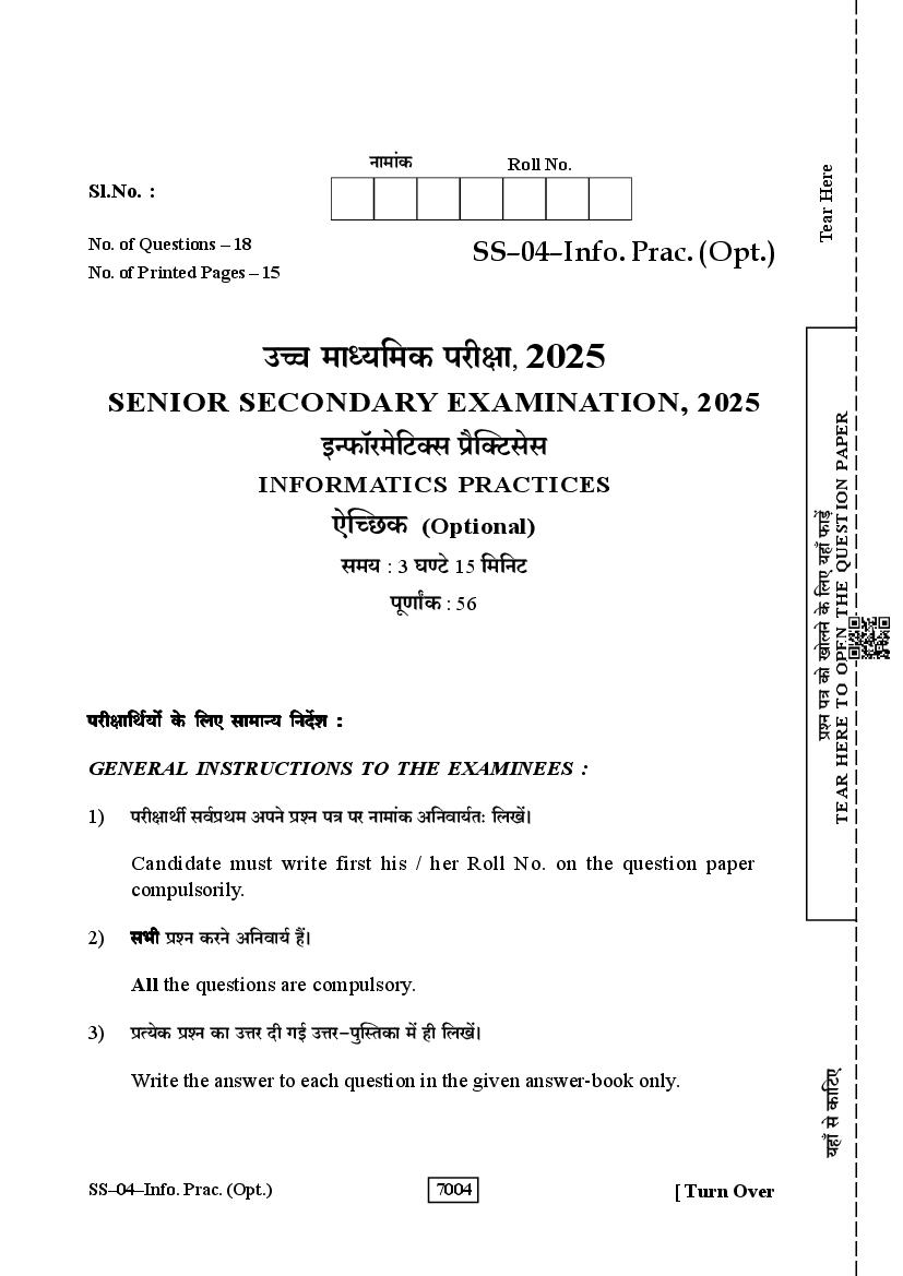 Rajasthan Board Class 12 Question Paper 2025 Informatics Practices View Download