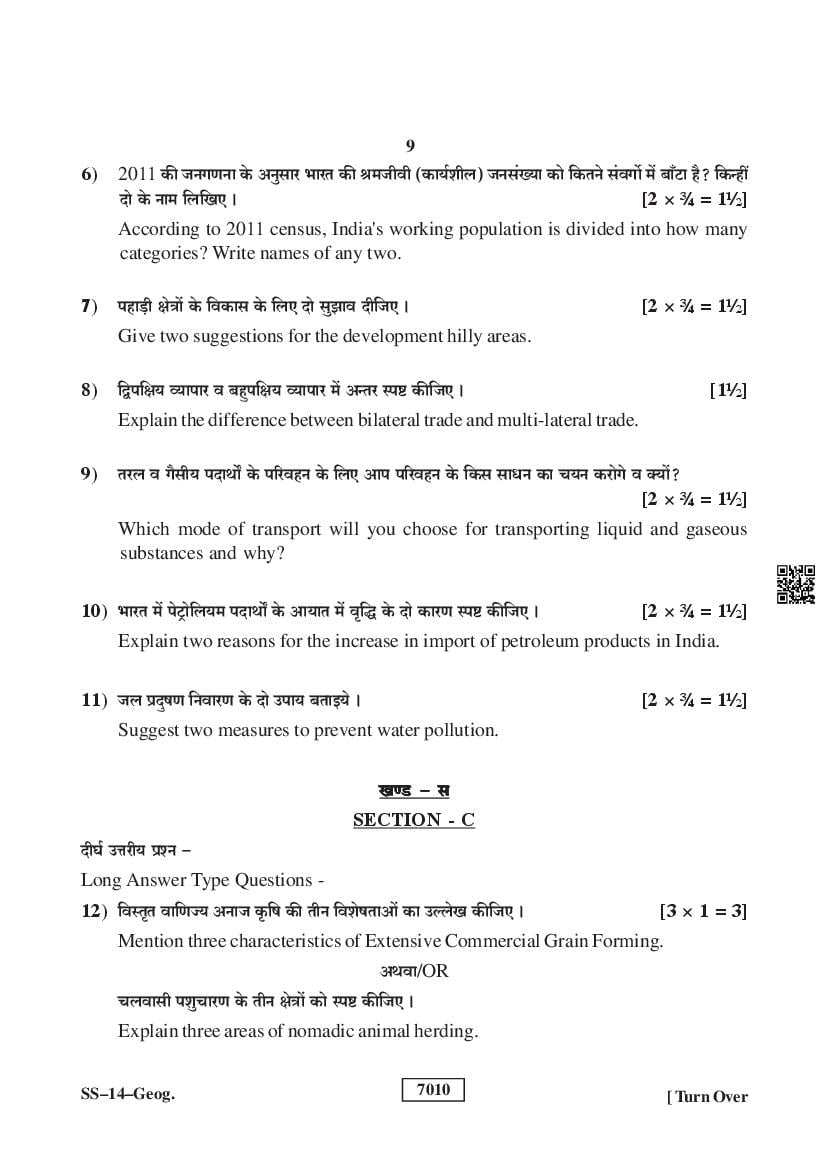 For the sake of the candidates download links of the Rajasthan Board 12 Geography Previous Year Question Paper are given below.