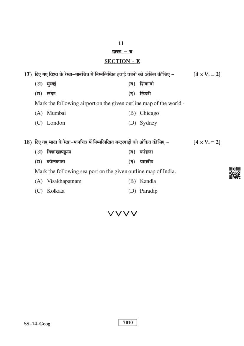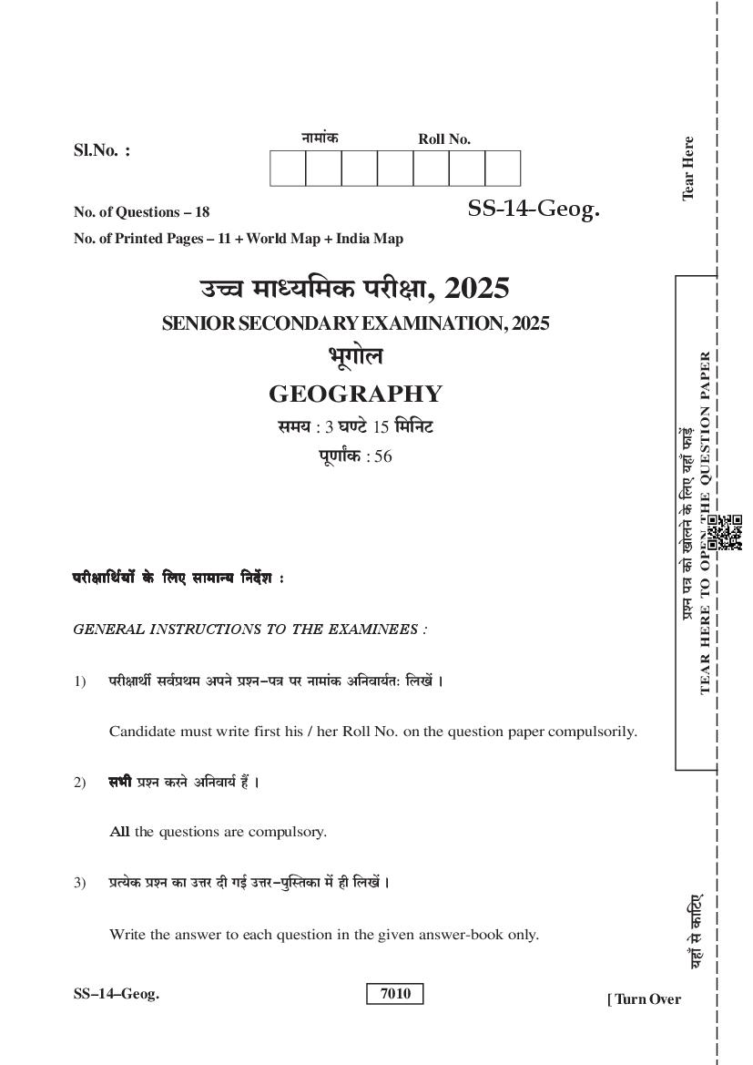 Rajasthan Board Class 12 Question Paper 2025 Geography View Download