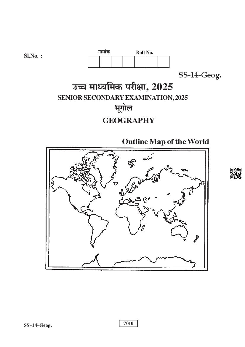 Rajasthan Board Class 12 Geography Question Paper 2025