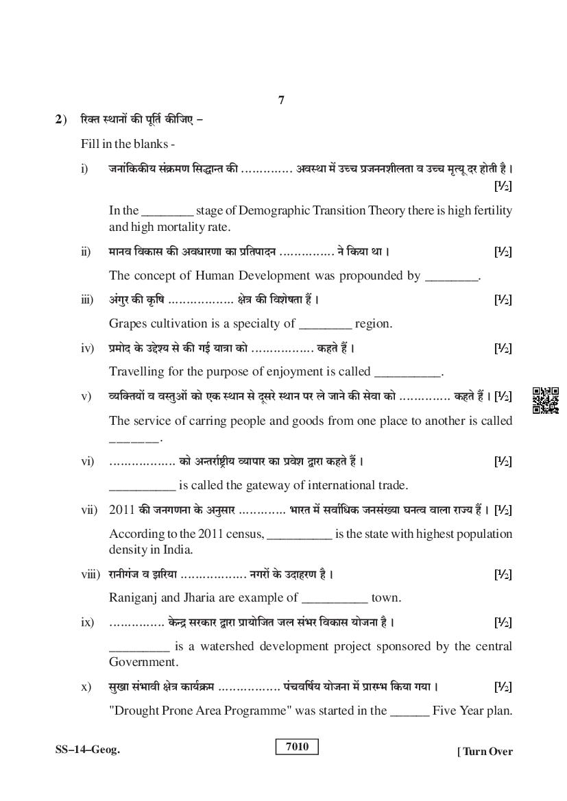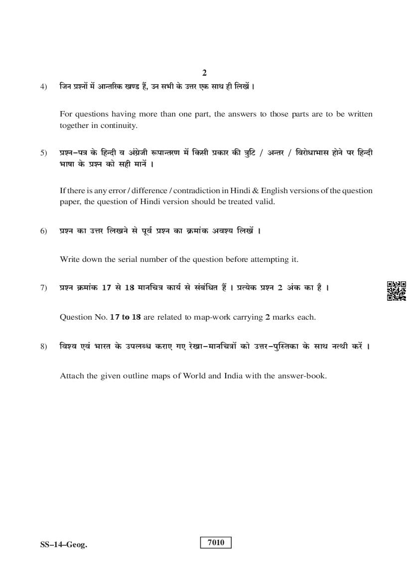 Rajasthan Board Geography Question Paperis given below.