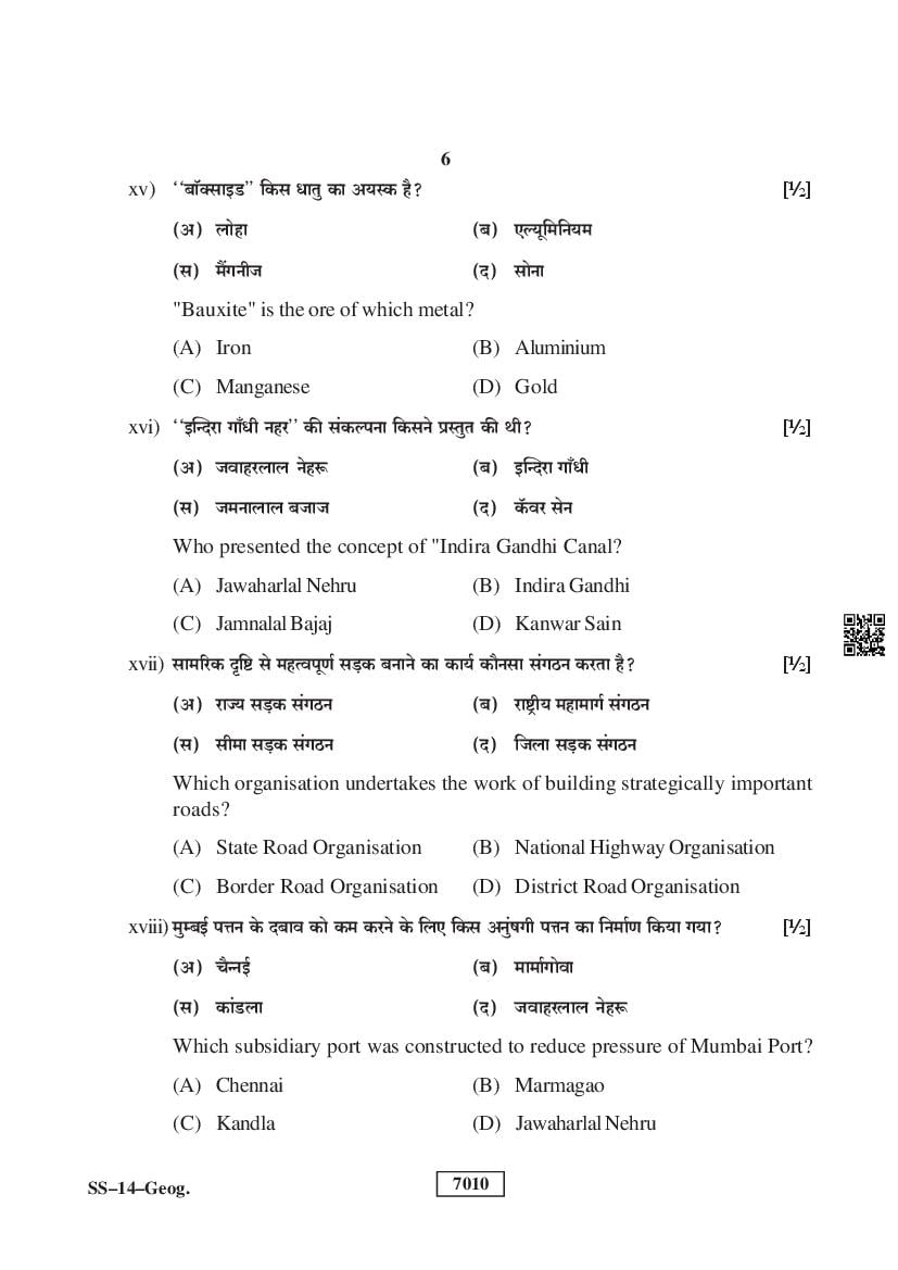 More RBSE Class 12 Geography Question Papers Download Link – Click Here to Download PDFs