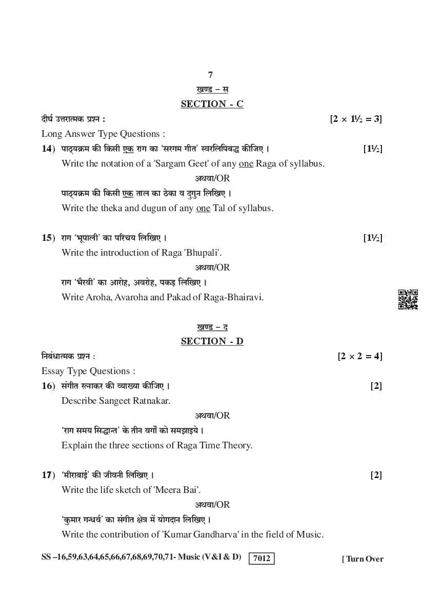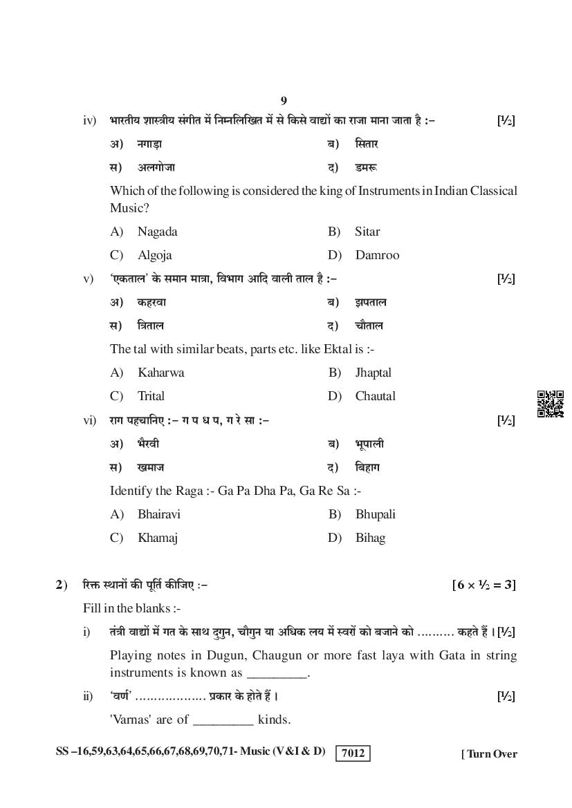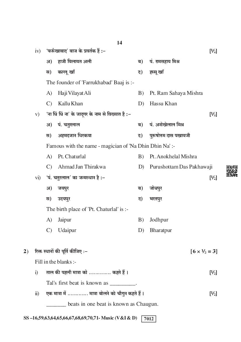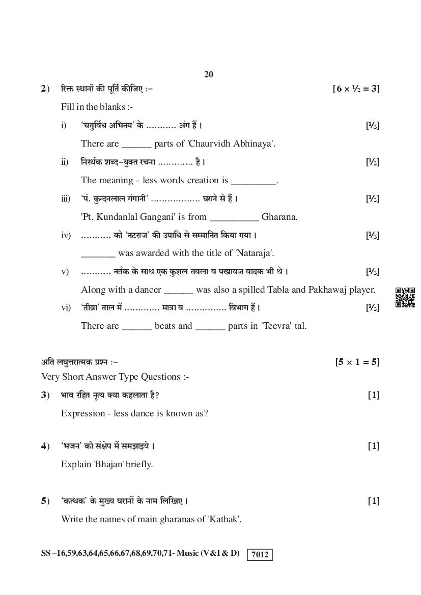 Rajasthan Board Music Question Paperis given below.