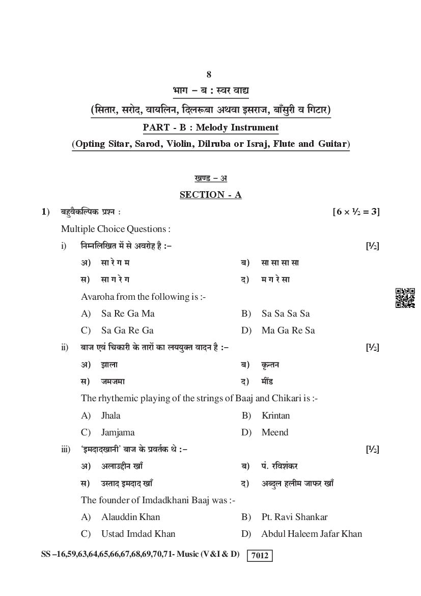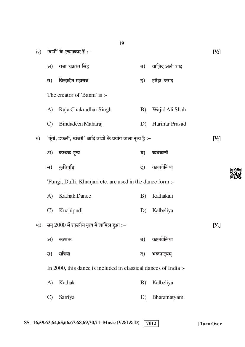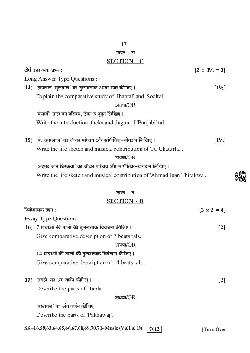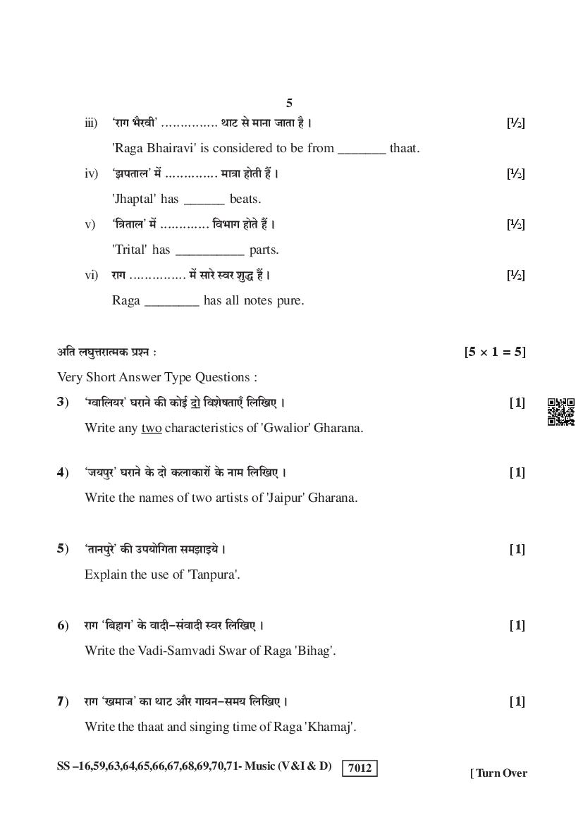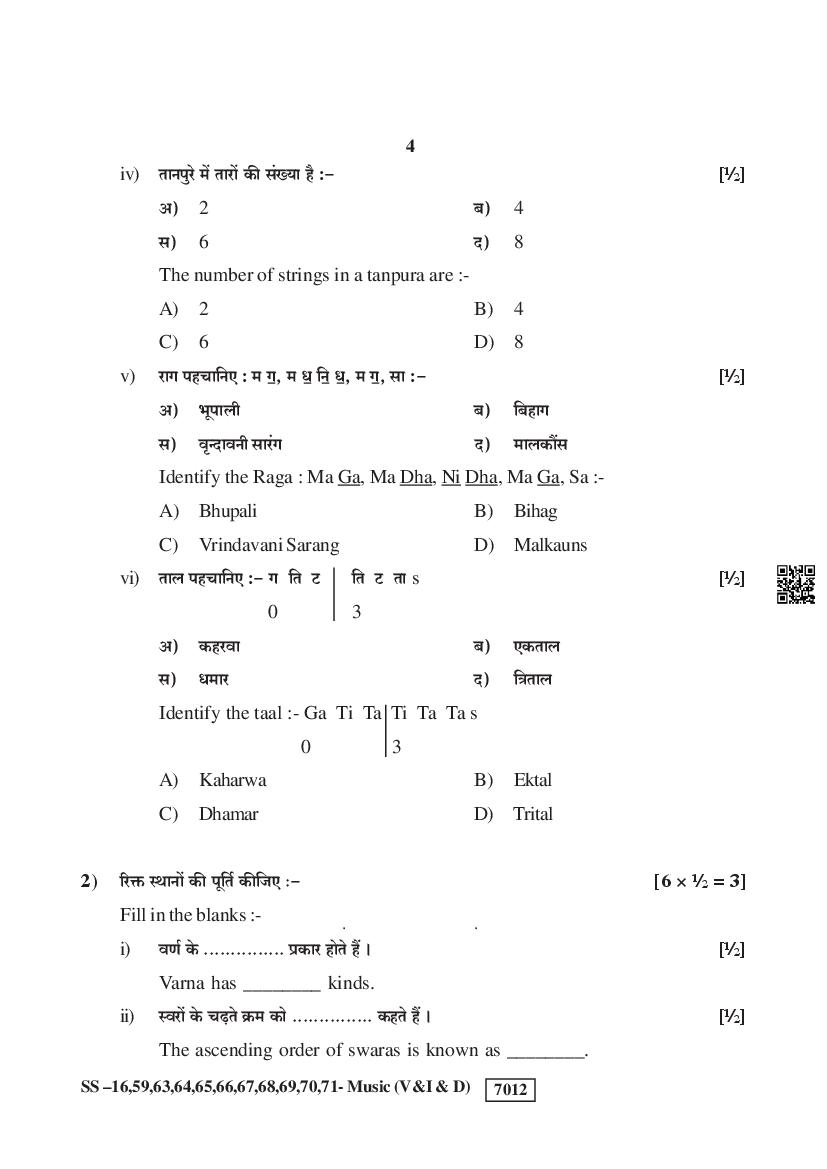 Rajasthan Board Music Question Paperis given below.