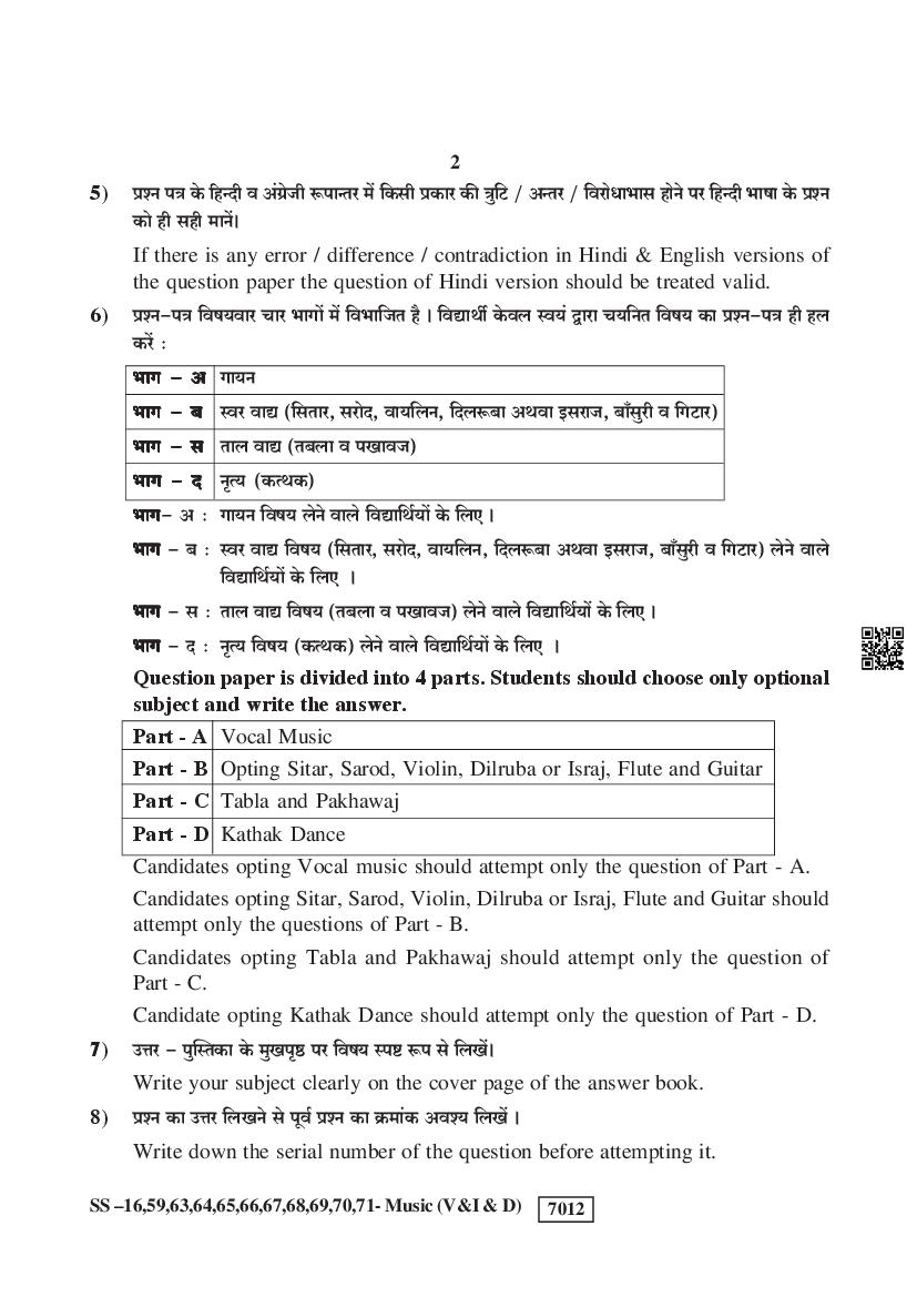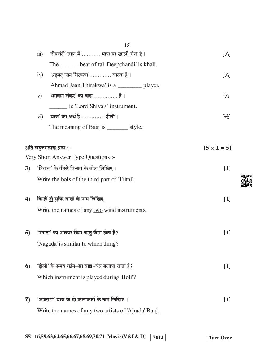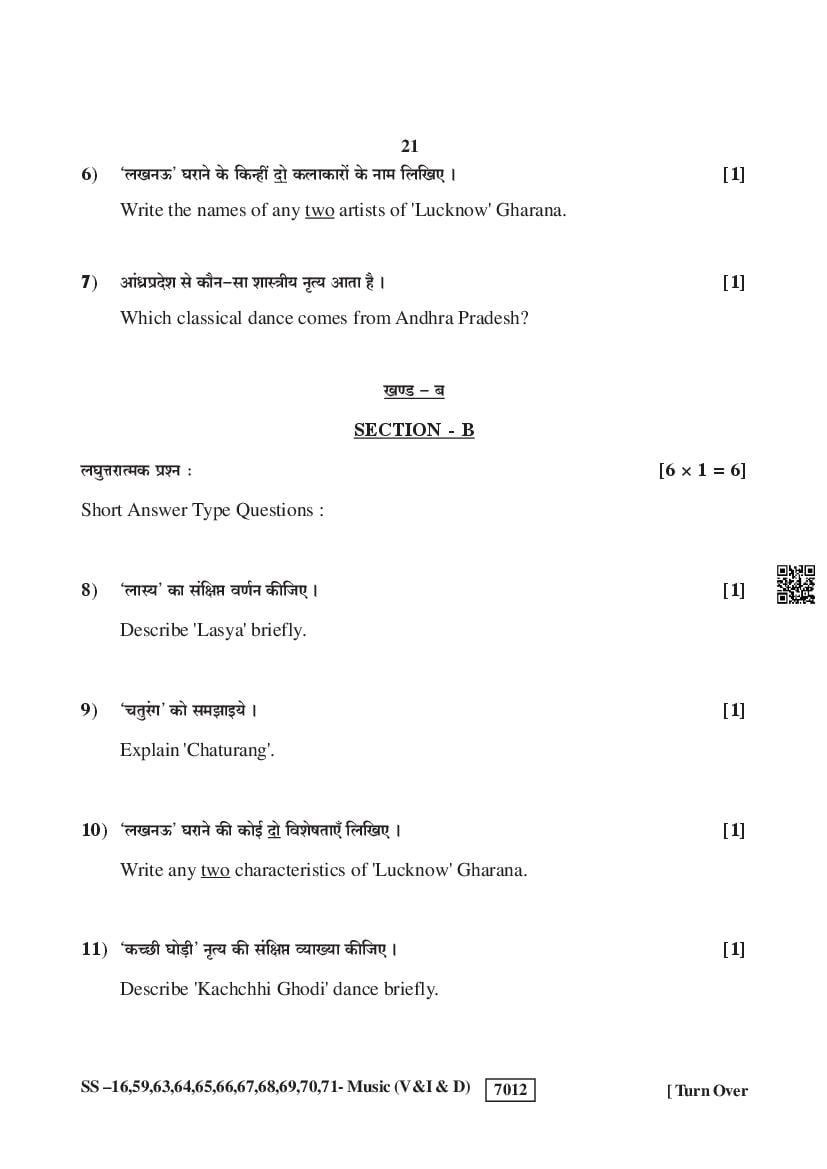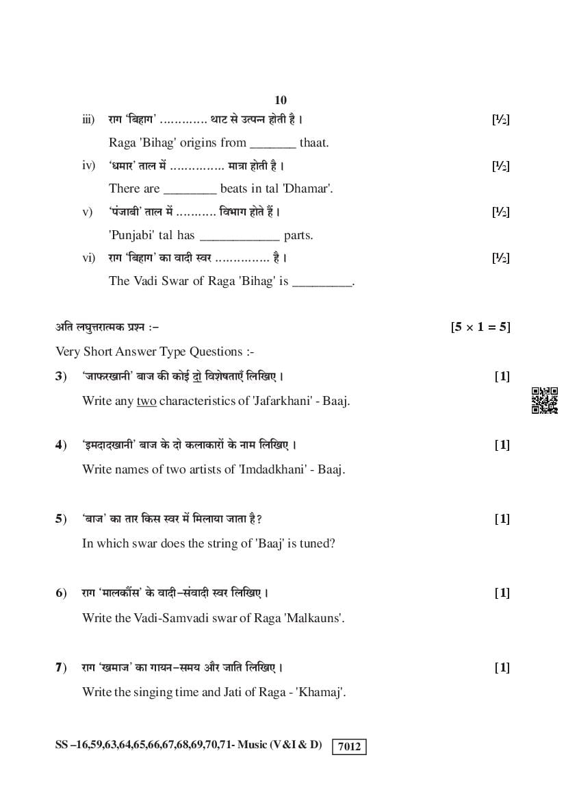 Rajasthan Board Music Question Paperis given below.