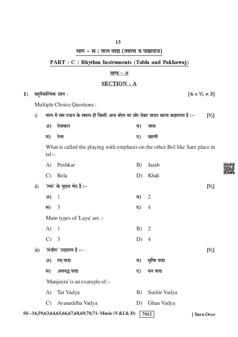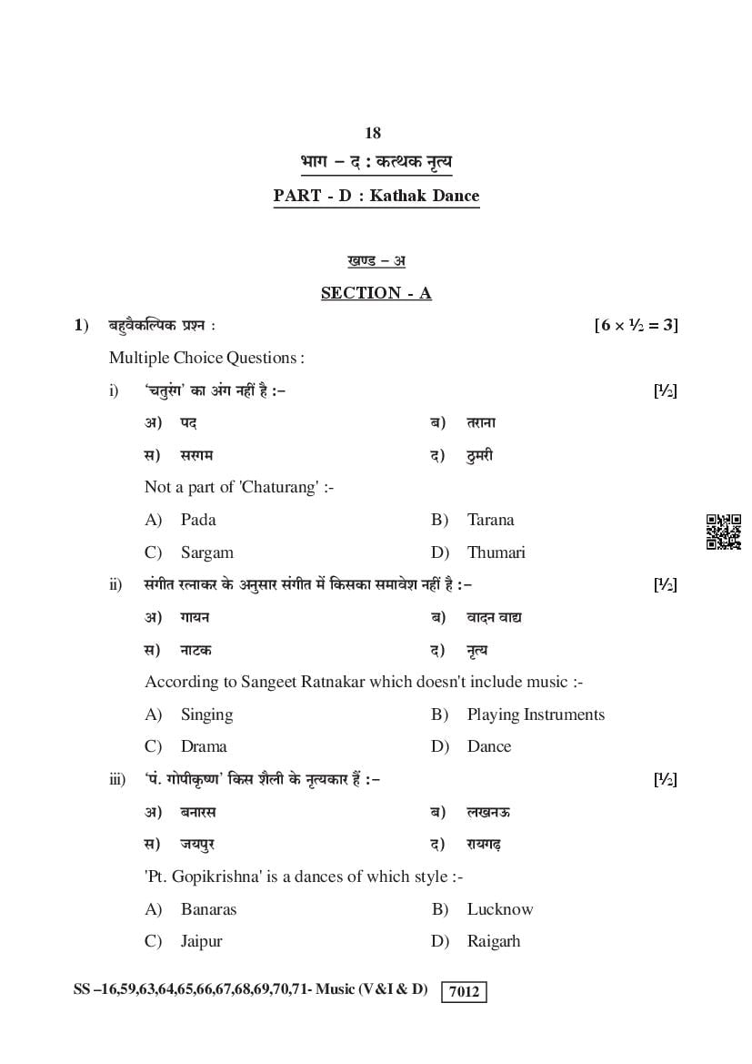 For the sake of the candidates download links of the Rajasthan Board 12 Music Previous Year Question Paper are given below.