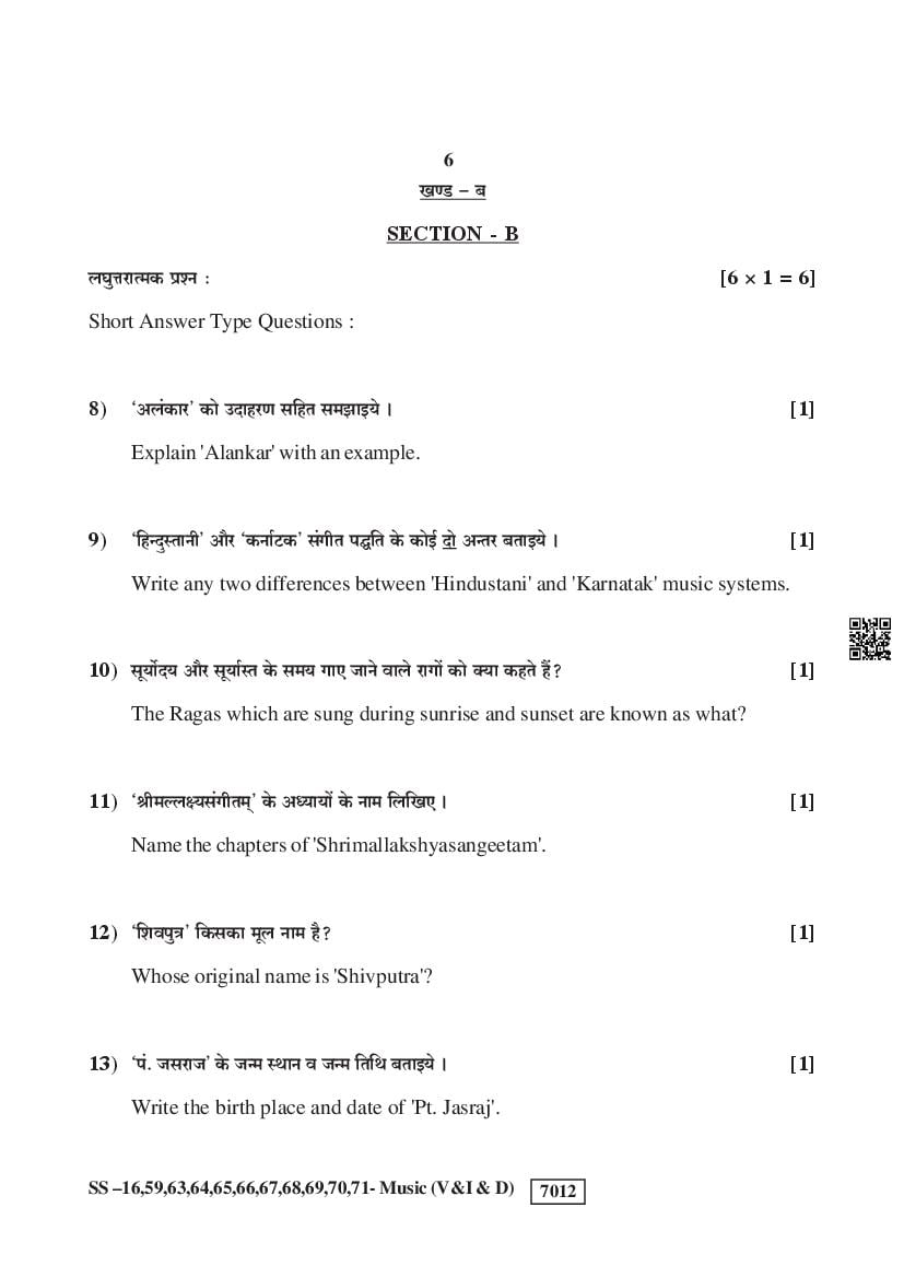 More RBSE Class 12 Music Question Papers Download Link – Click Here to Download PDFs