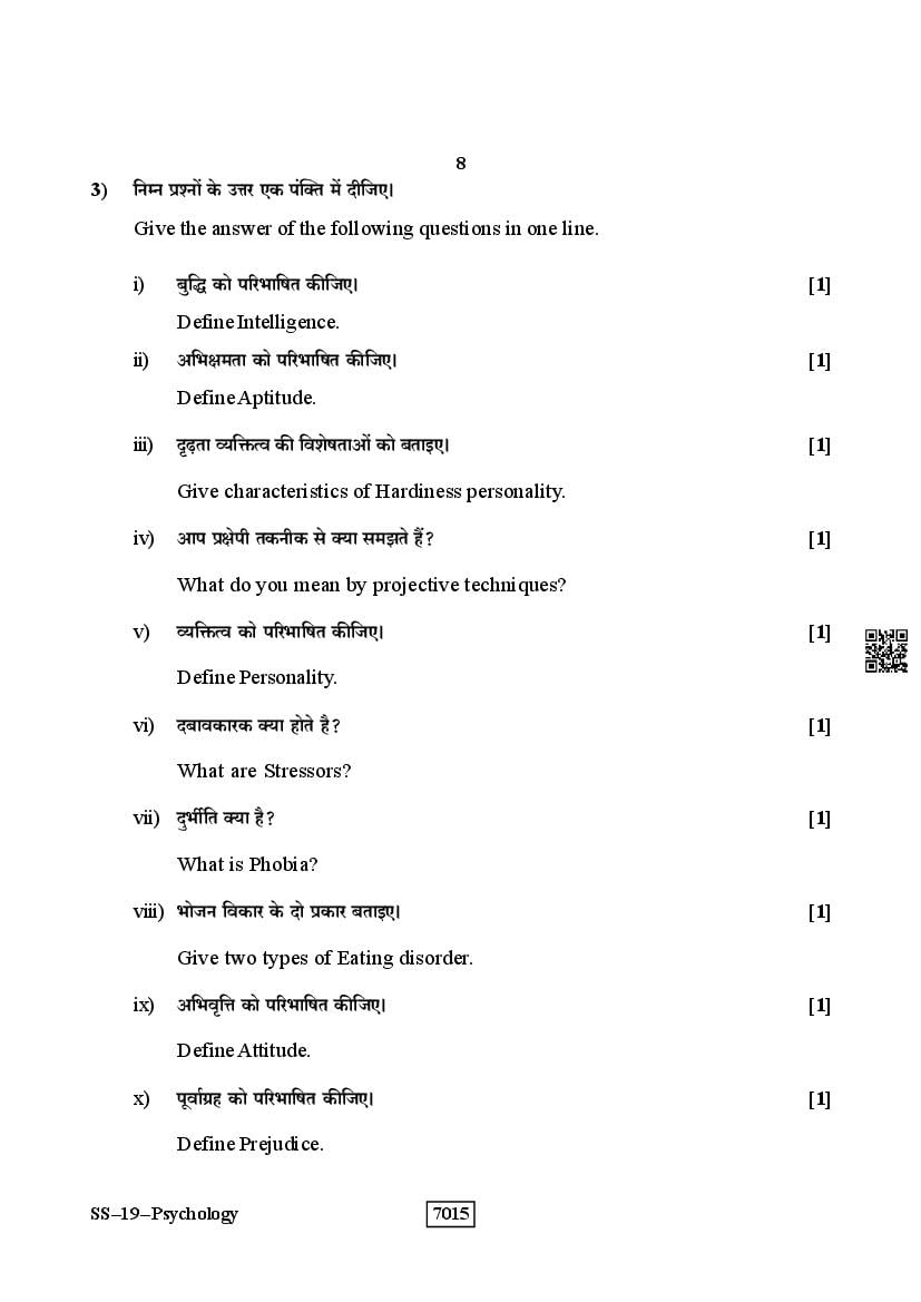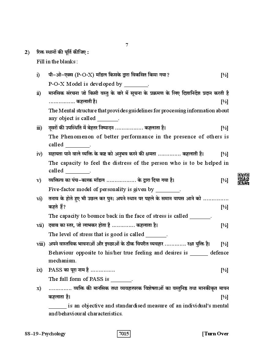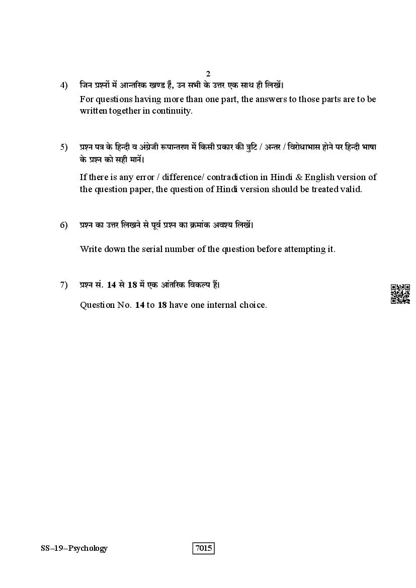 The Rajasthan Board previous year question paper for class 12 Psychology is as follows.