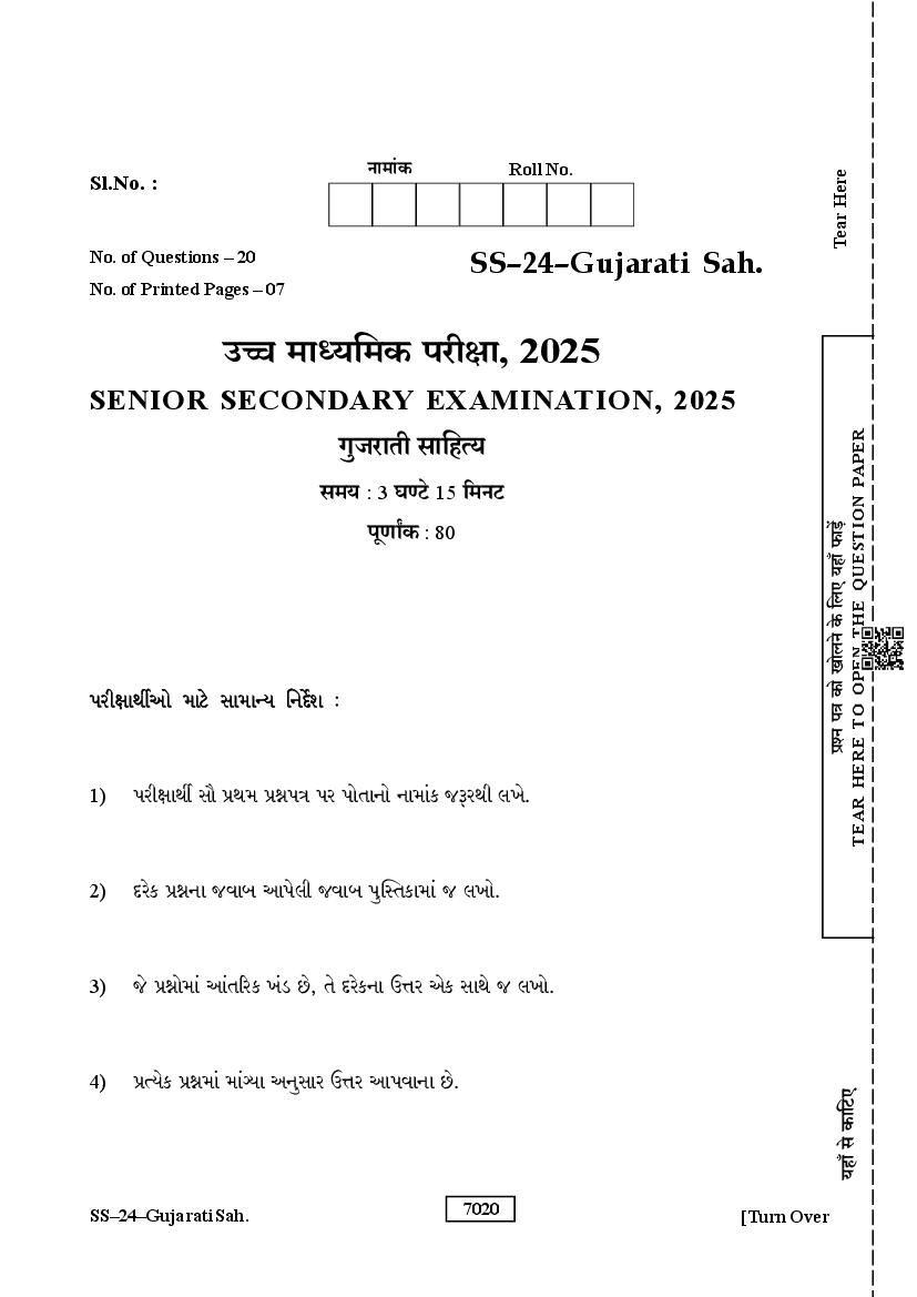 Rajasthan Board Class 12 Question Paper 2025 Gujarati Sahitya View Download