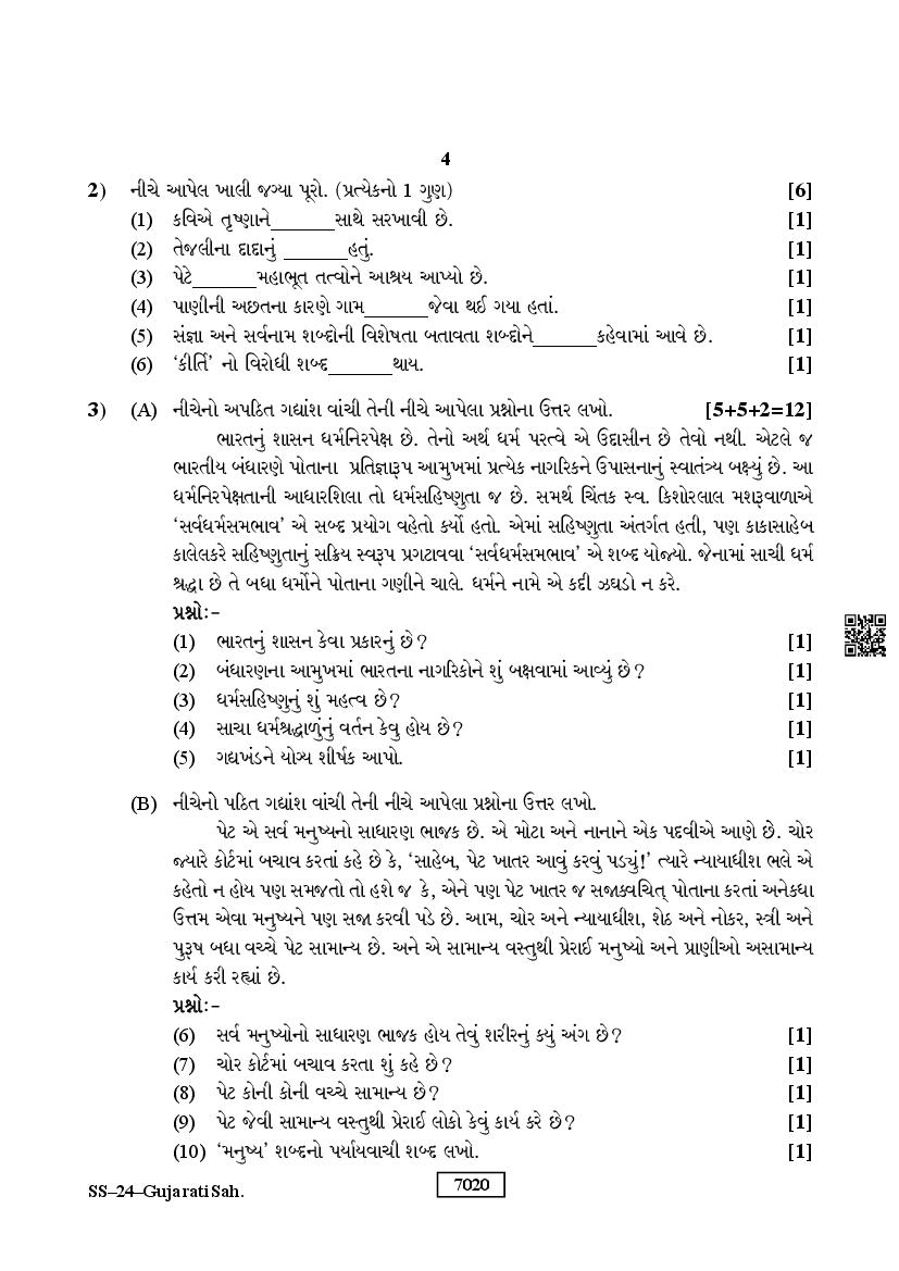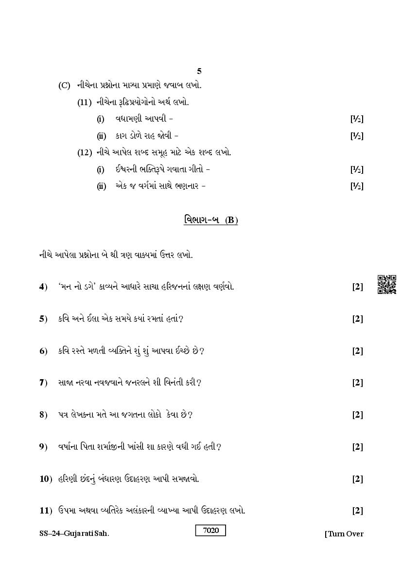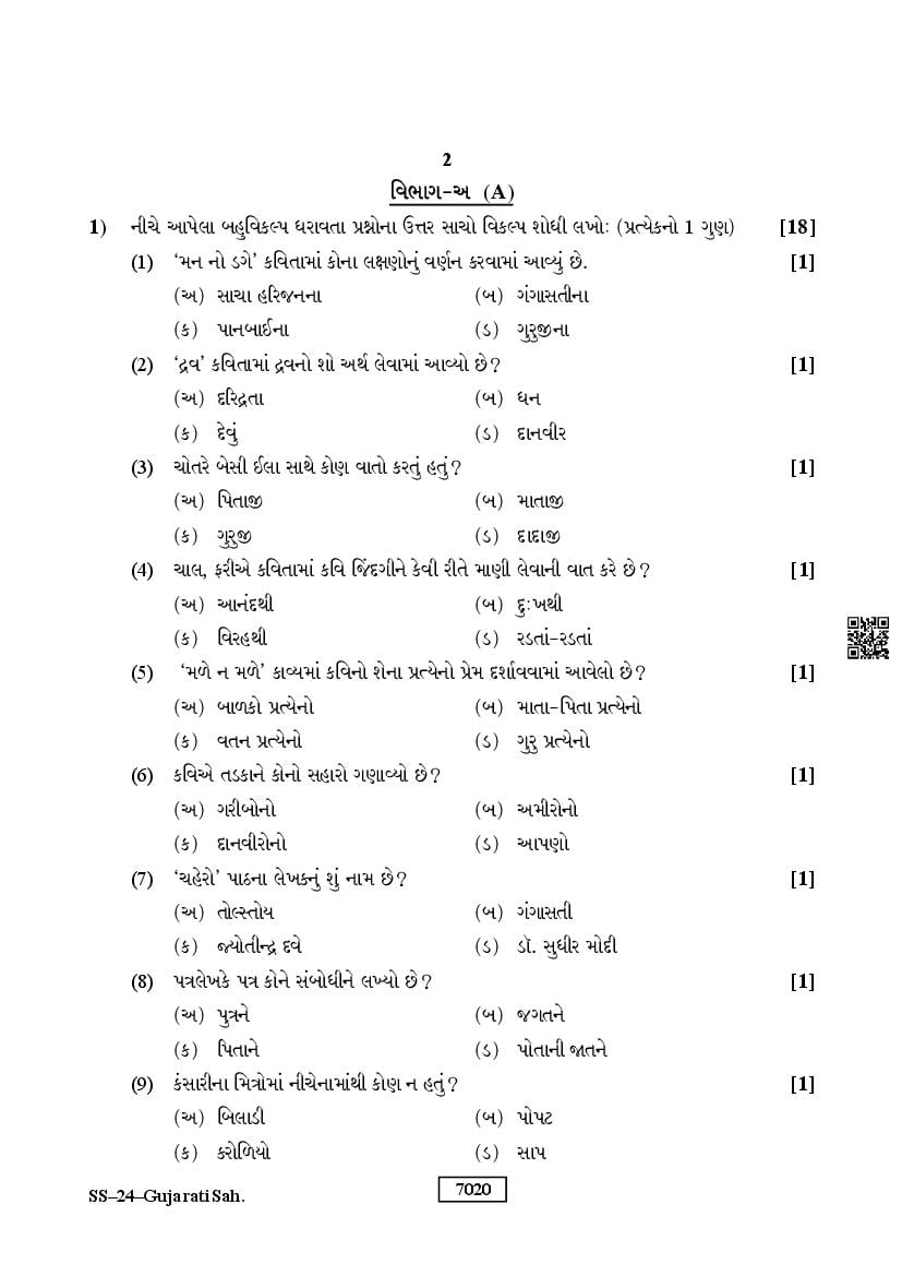 The Rajasthan Board previous year question paper for class 12 Gujarati is as follows.