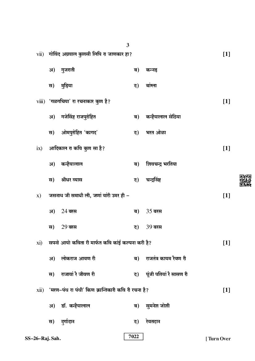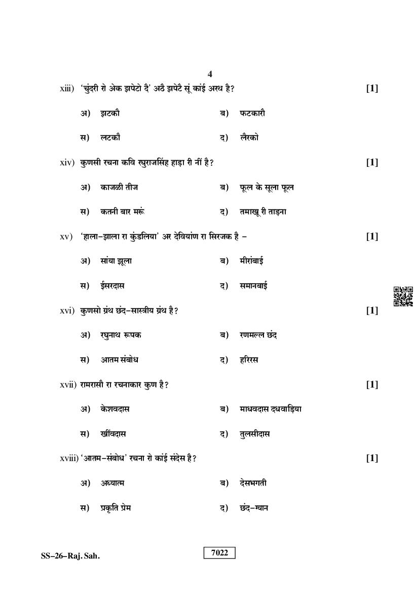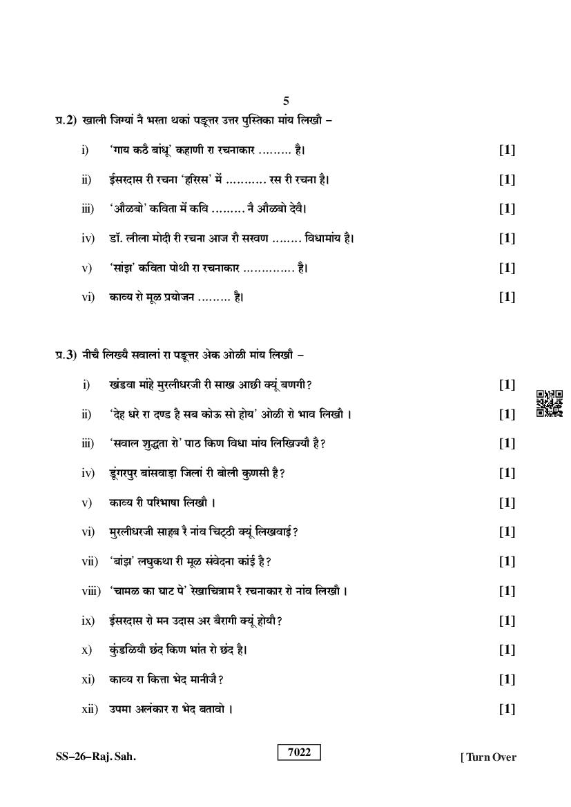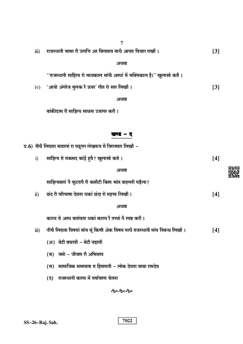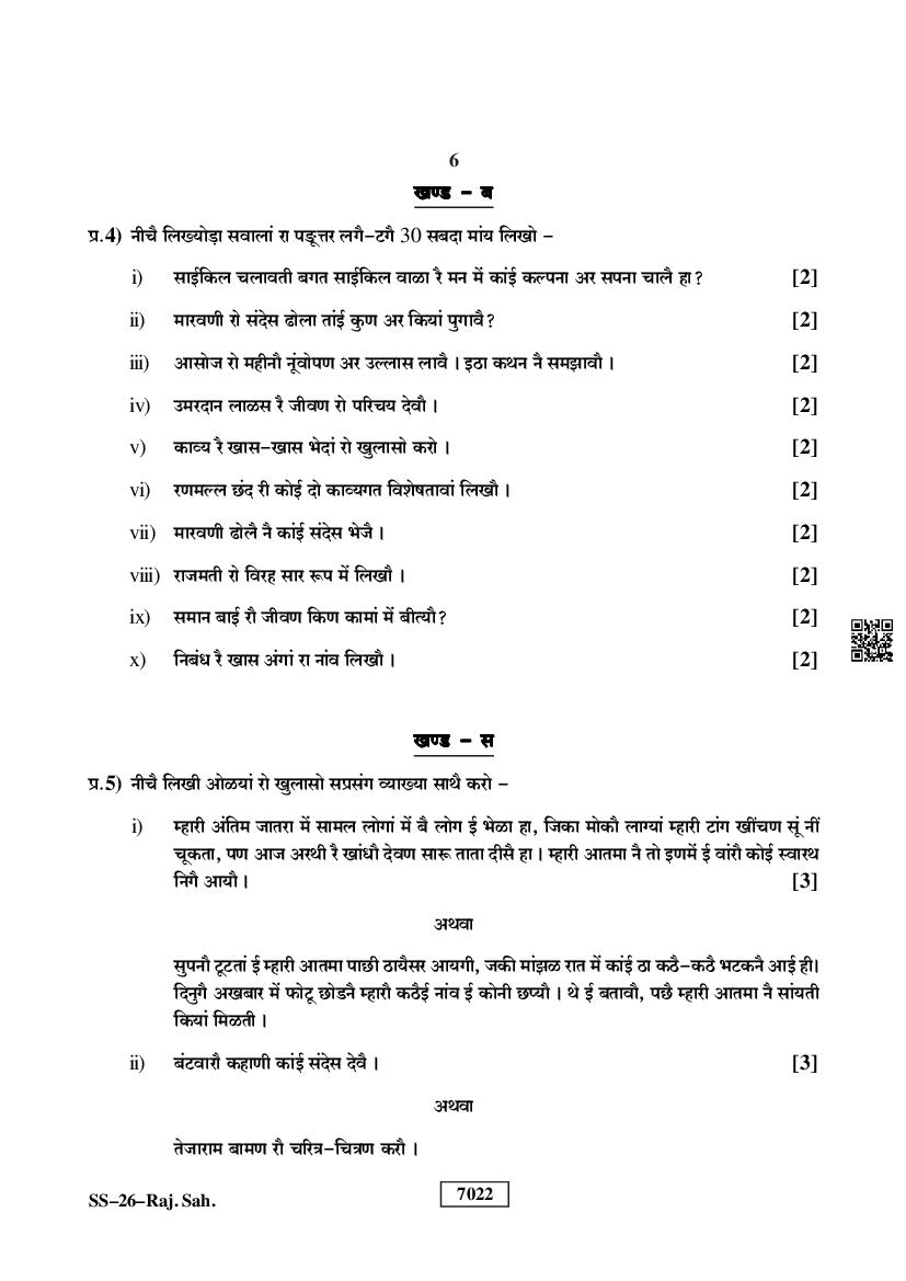 The Rajasthan Board previous year question paper for class 12 Rajasthani is as follows.