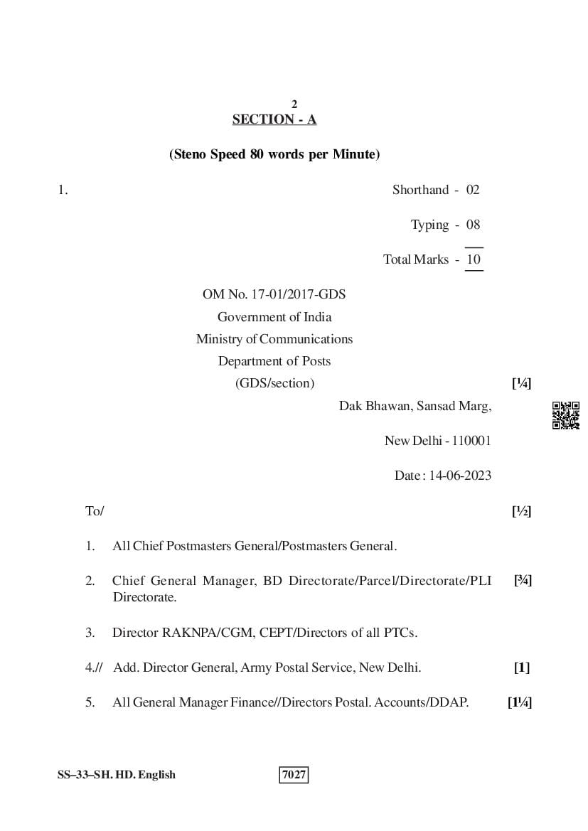 For the sake of the candidates download links of the Rajasthan Board 12 Shorthand in English Previous Year Question Paper are given below.
