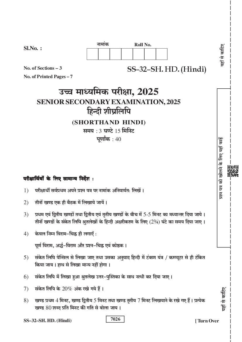 RBSE 12th Shorthand Hindi Question Paper 2025 PDF is given below.
