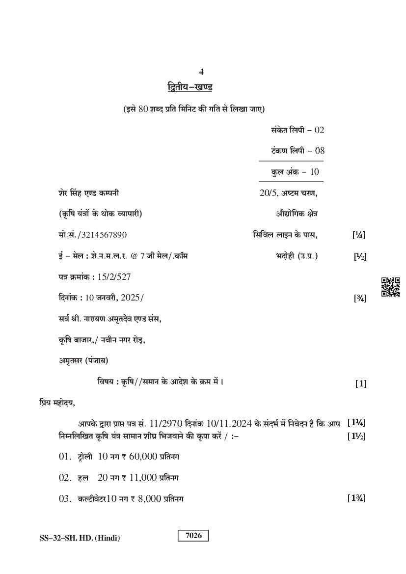 Subject: Shorthand Hindi